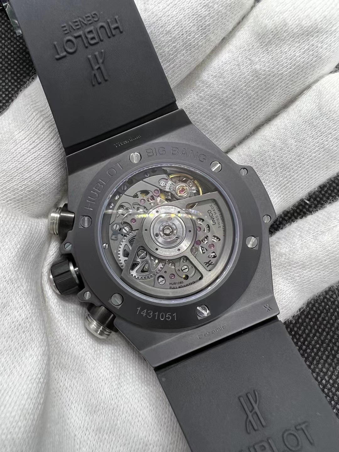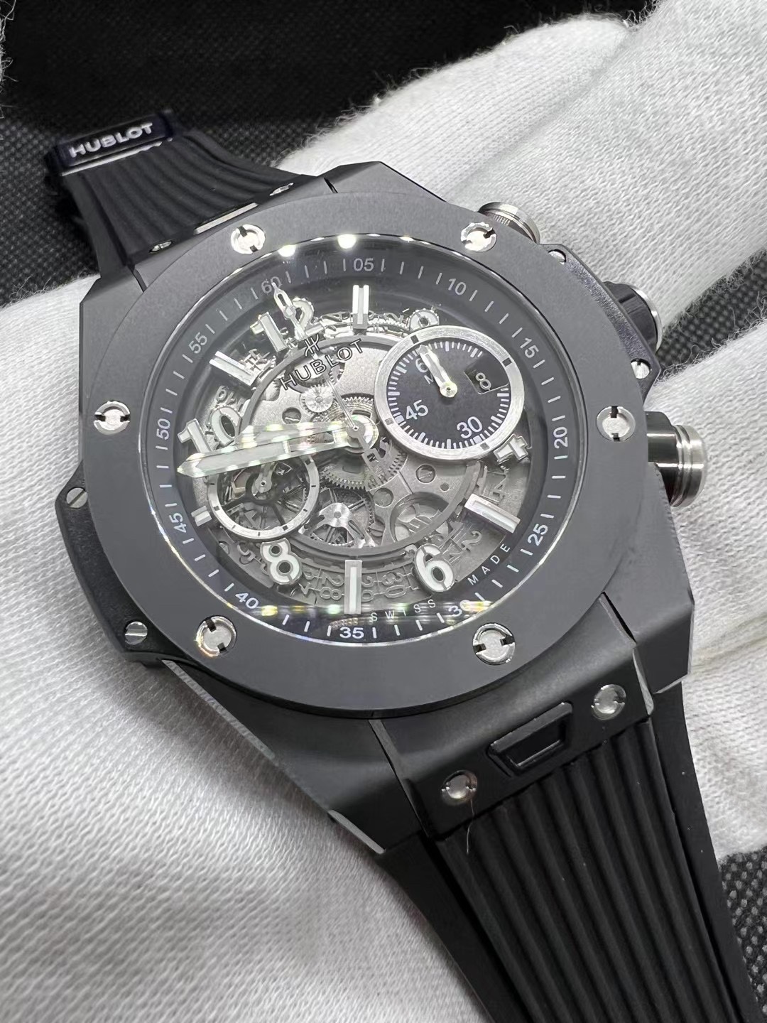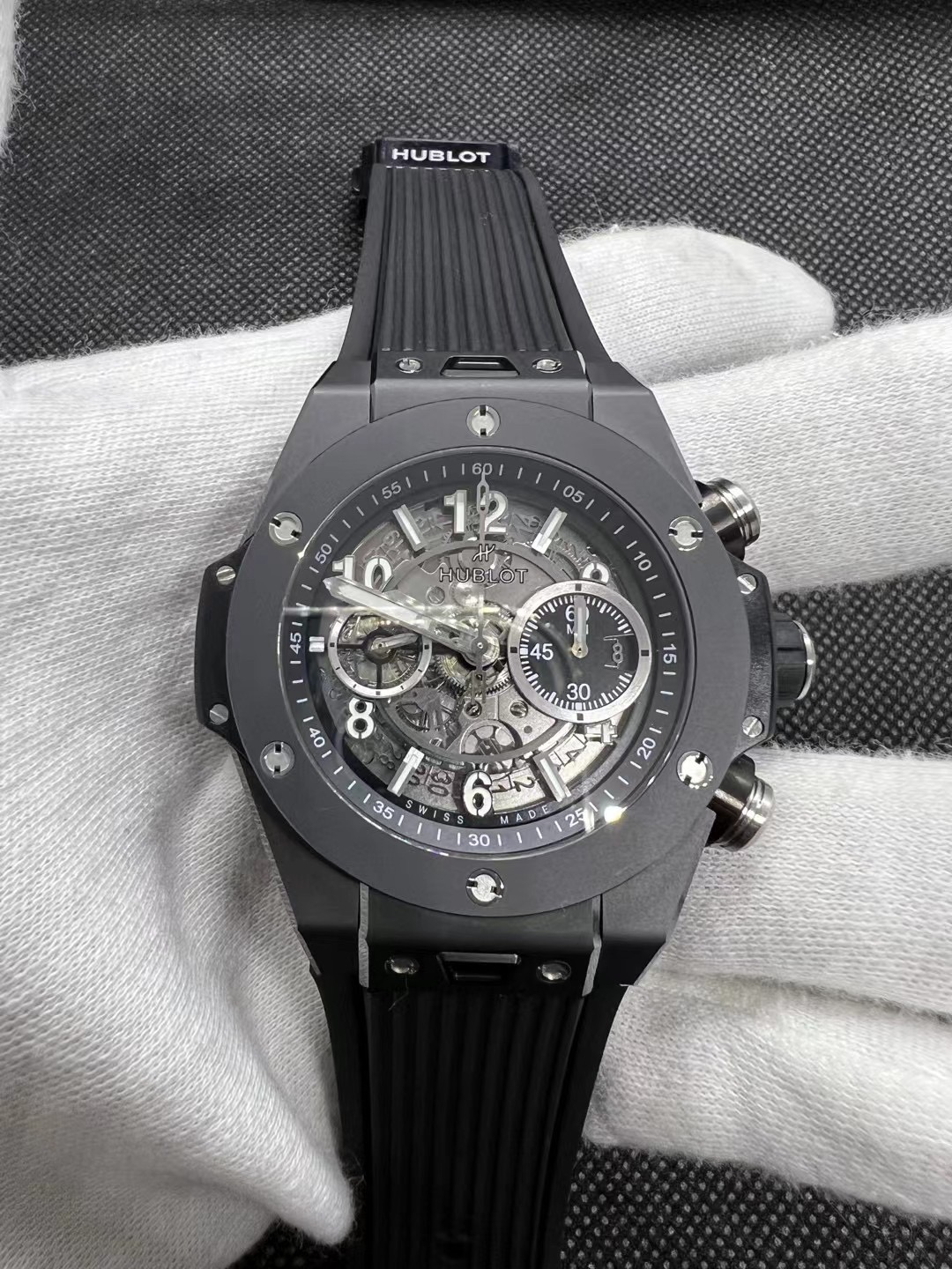 这款手表是AAAAA 1:1 质量 (非常棒). 使用了和原版一模一样的材料. 商标部分也保持了和Hublot一样. 图片拍摄是实物手表拍摄, 您所收到的实物保证和我们图片一模一样.