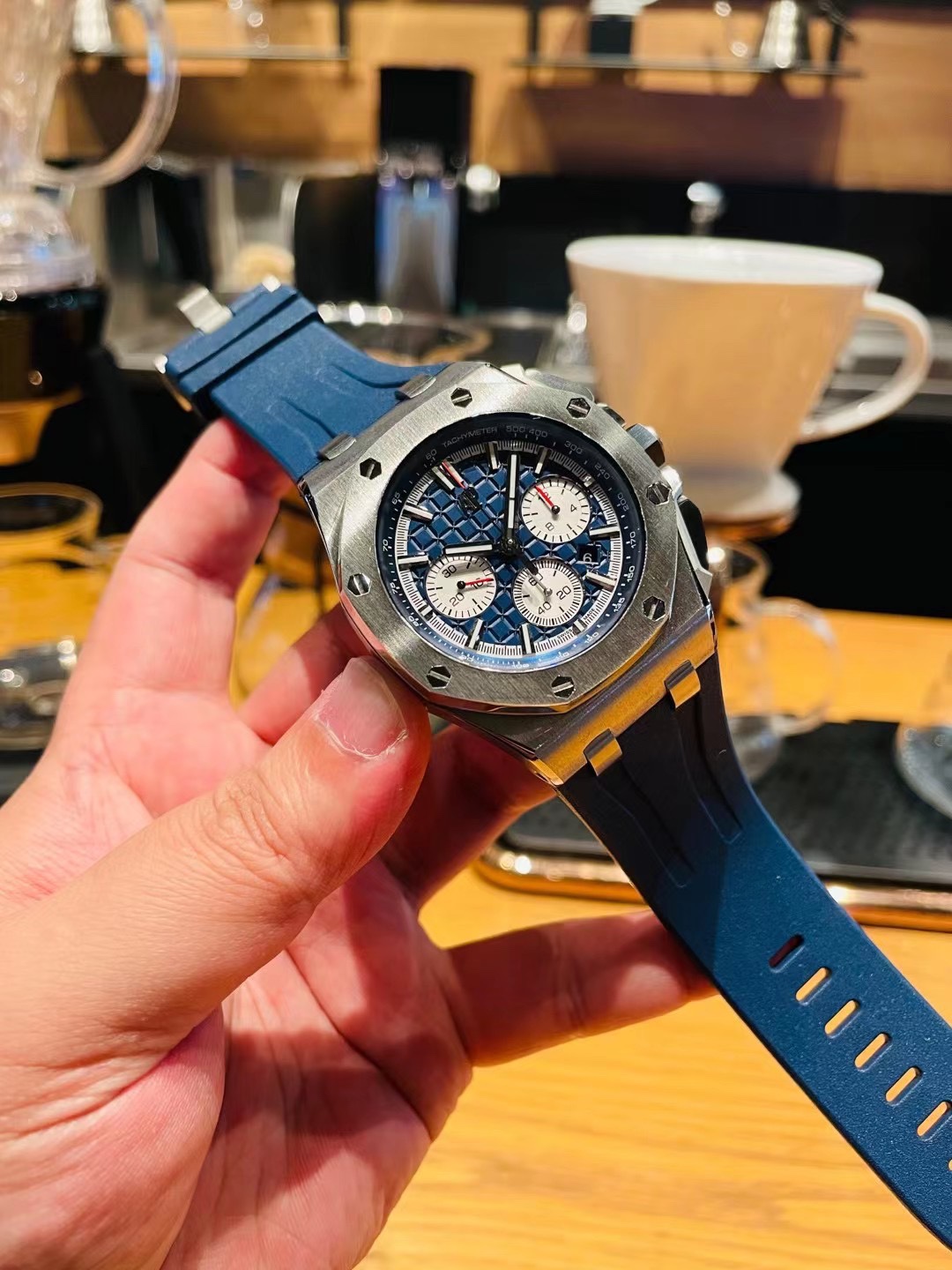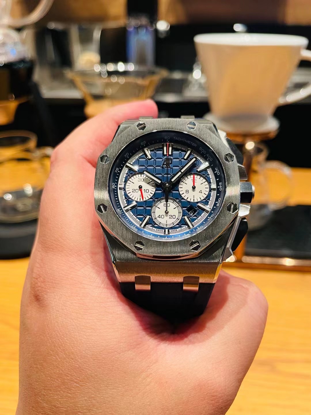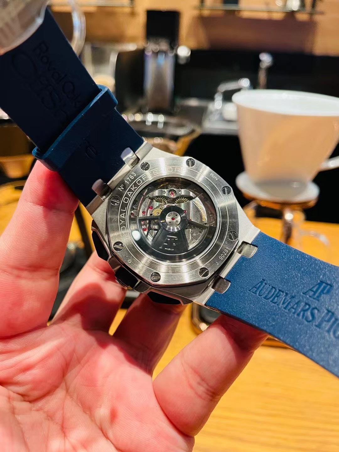 这款手表是AAAAA 1:1 质量 (非常棒). 使用了和原版一模一样的材料. 商标部分也保持了和爱彼/Audemars Piguet一样. 图片拍摄是实物手表拍摄, 您所收到的实物保证和我们图片一模一样.