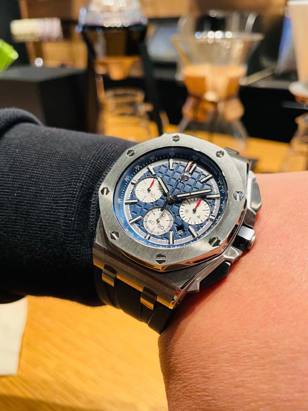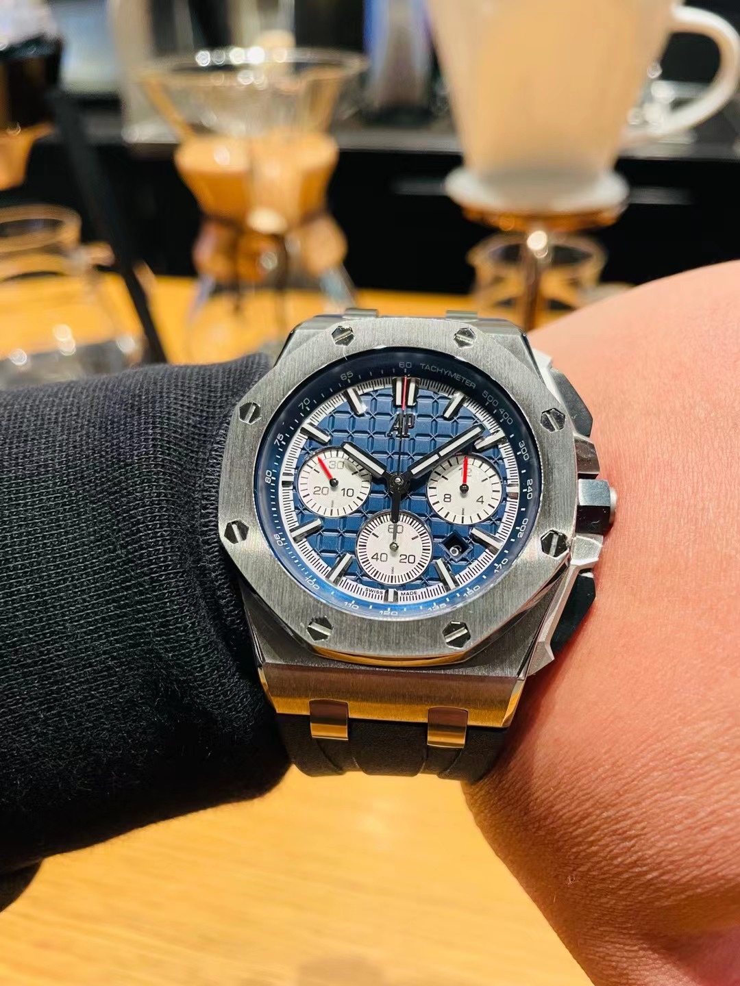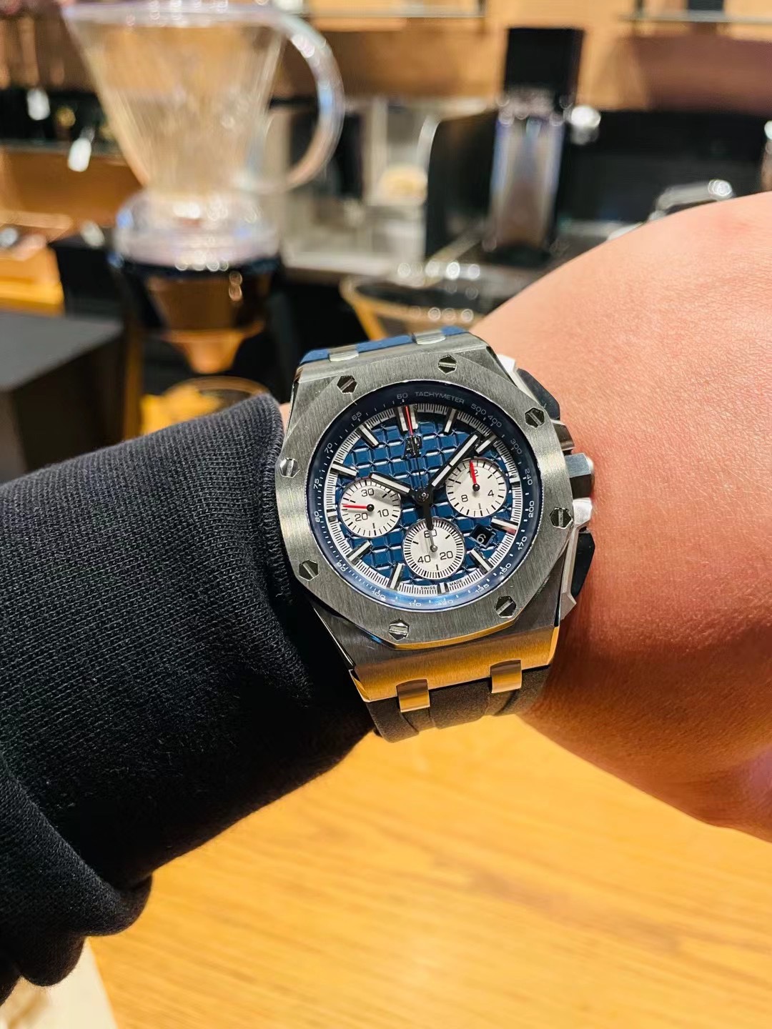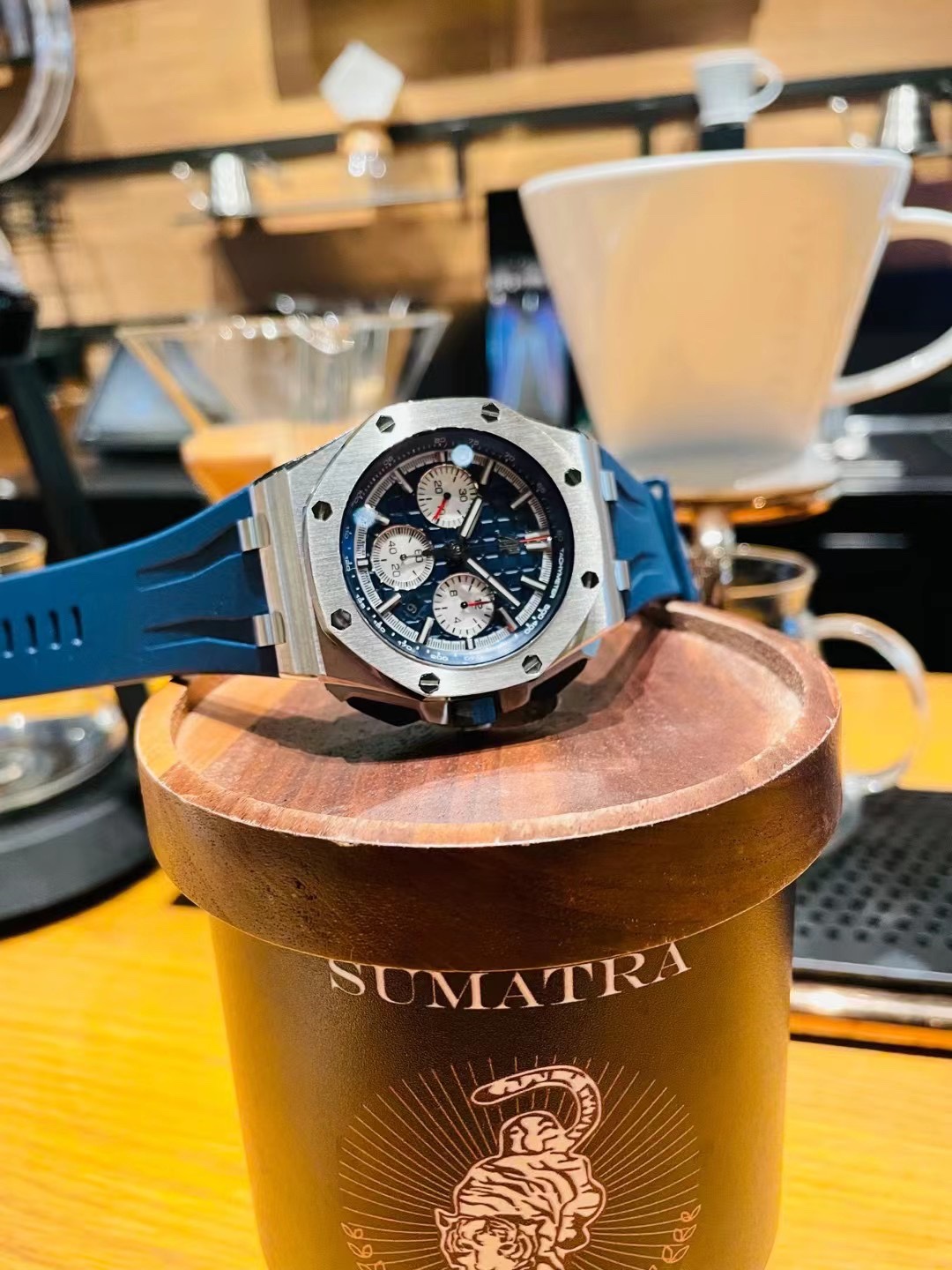 这款手表是AAAAA 1:1 质量 (非常棒). 使用了和原版一模一样的材料. 商标部分也保持了和爱彼/Audemars Piguet一样. 图片拍摄是实物手表拍摄, 您所收到的实物保证和我们图片一模一样.