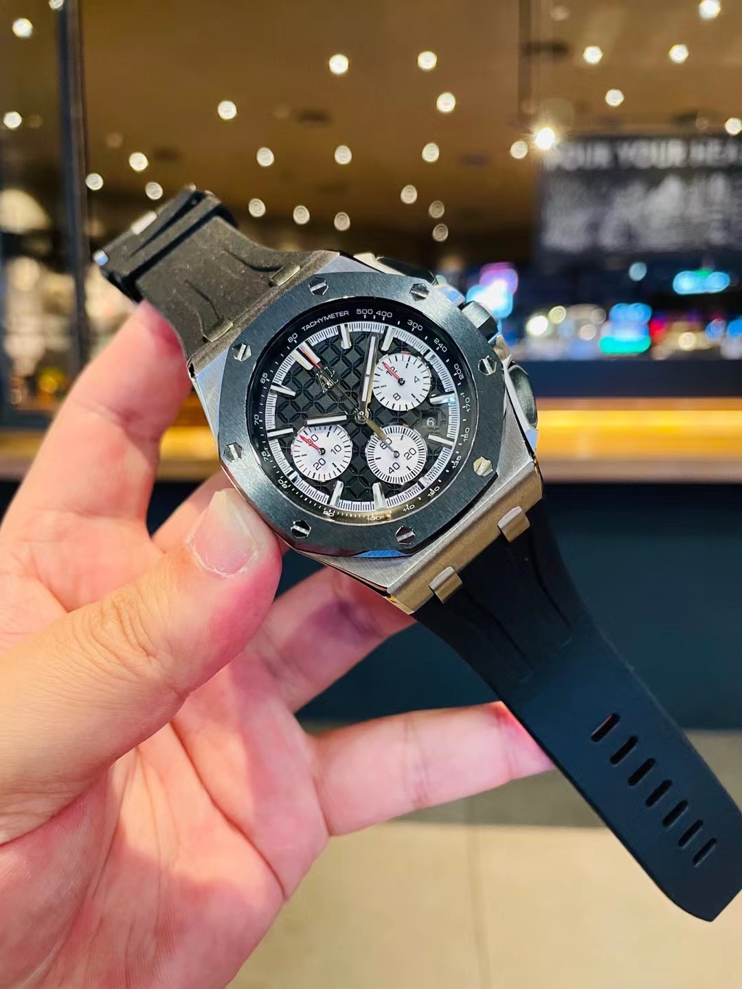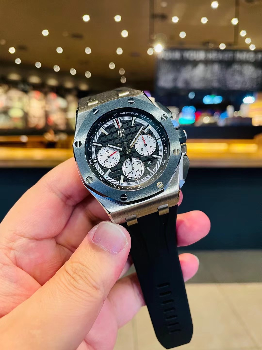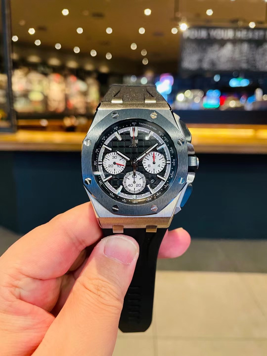 这款手表是AAAAA 1:1 质量 (非常棒). 使用了和原版一模一样的材料. 商标部分也保持了和爱彼/Audemars Piguet一样. 图片拍摄是实物手表拍摄, 您所收到的实物保证和我们图片一模一样.