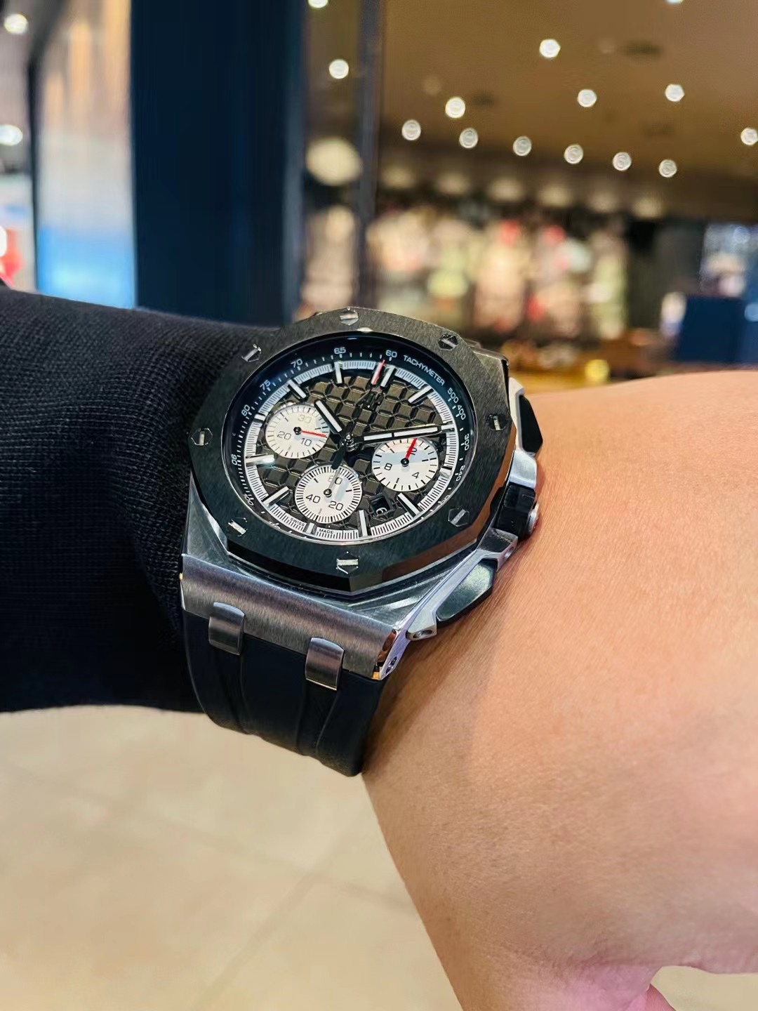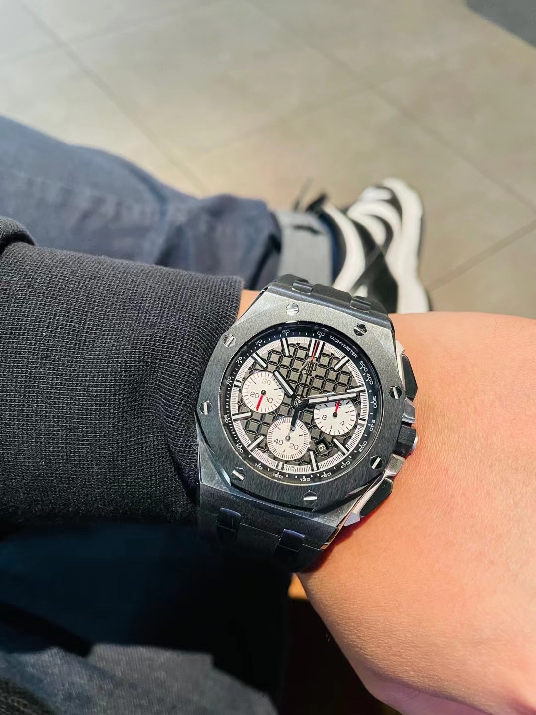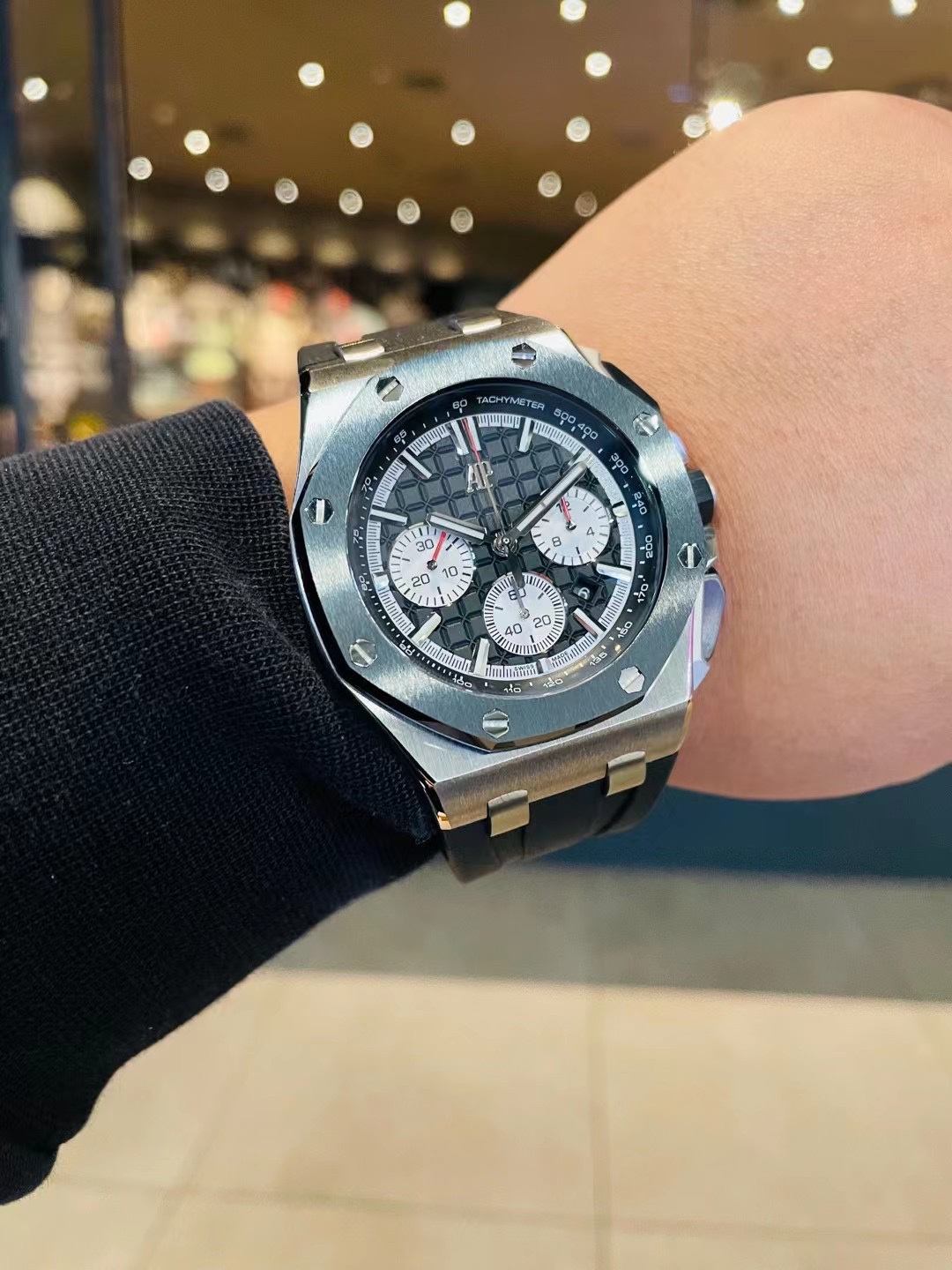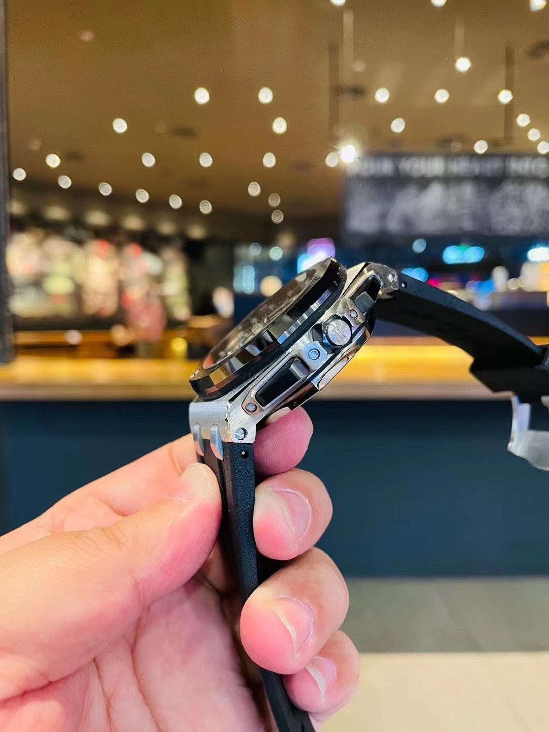 这款手表是AAAAA 1:1 质量 (非常棒). 使用了和原版一模一样的材料. 商标部分也保持了和爱彼/Audemars Piguet一样. 图片拍摄是实物手表拍摄, 您所收到的实物保证和我们图片一模一样.