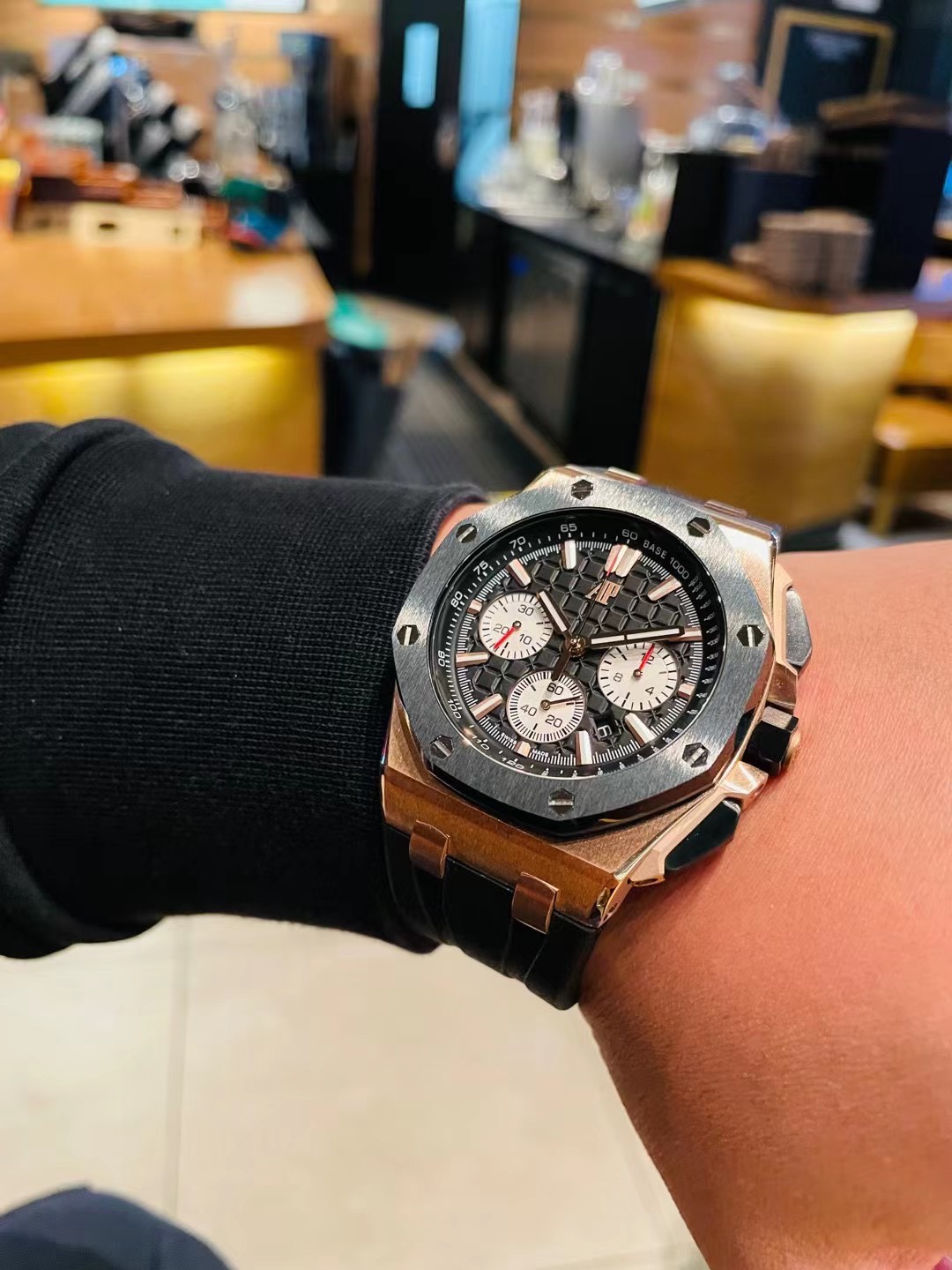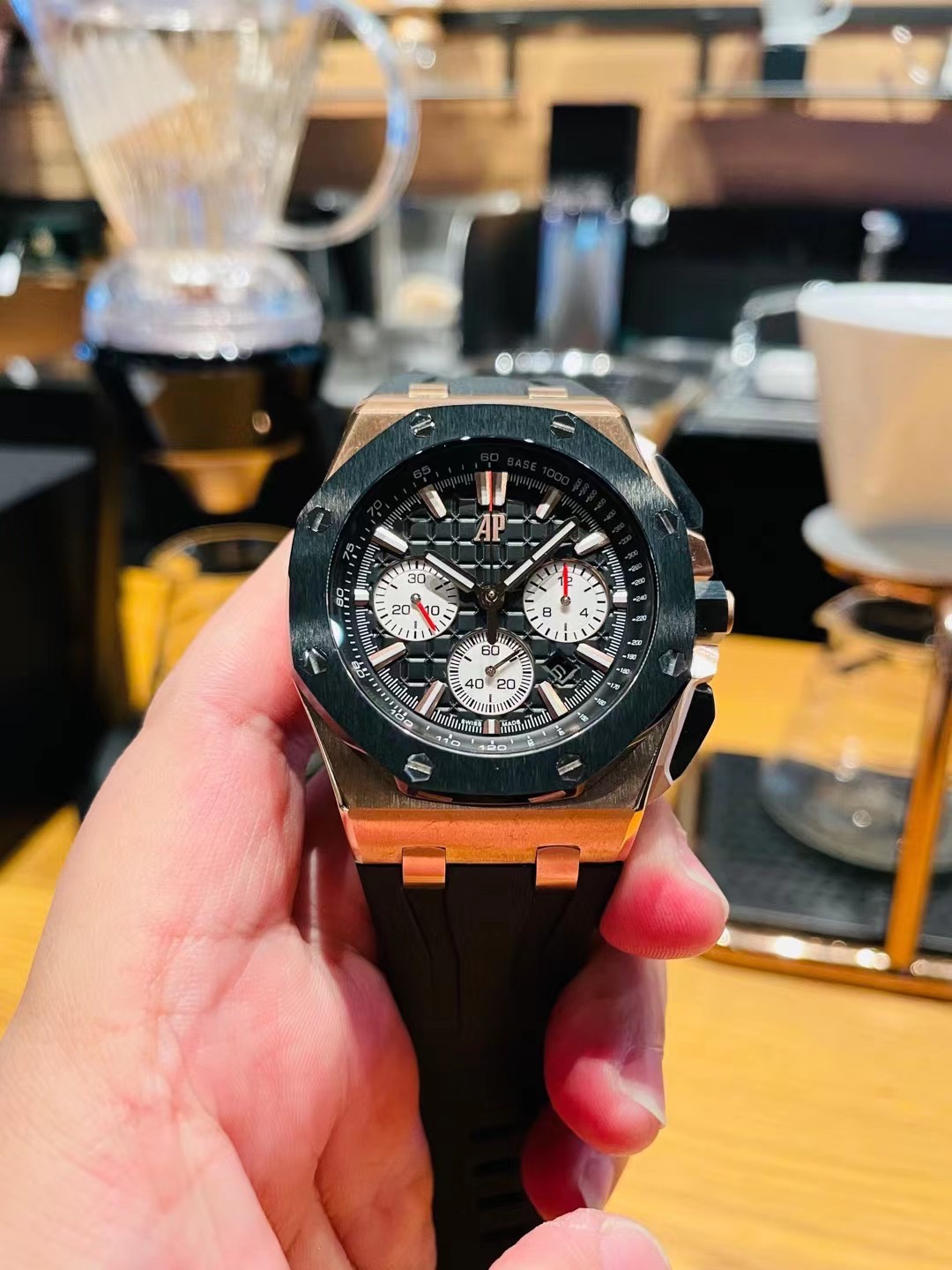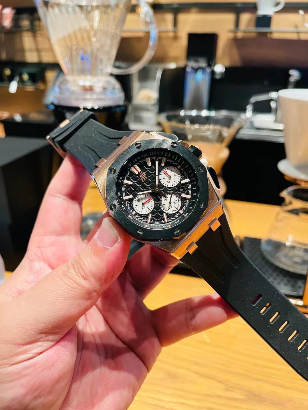 这款手表是AAAAA 1:1 质量 (非常棒). 使用了和原版一模一样的材料. 商标部分也保持了和爱彼/Audemars Piguet一样. 图片拍摄是实物手表拍摄, 您所收到的实物保证和我们图片一模一样.