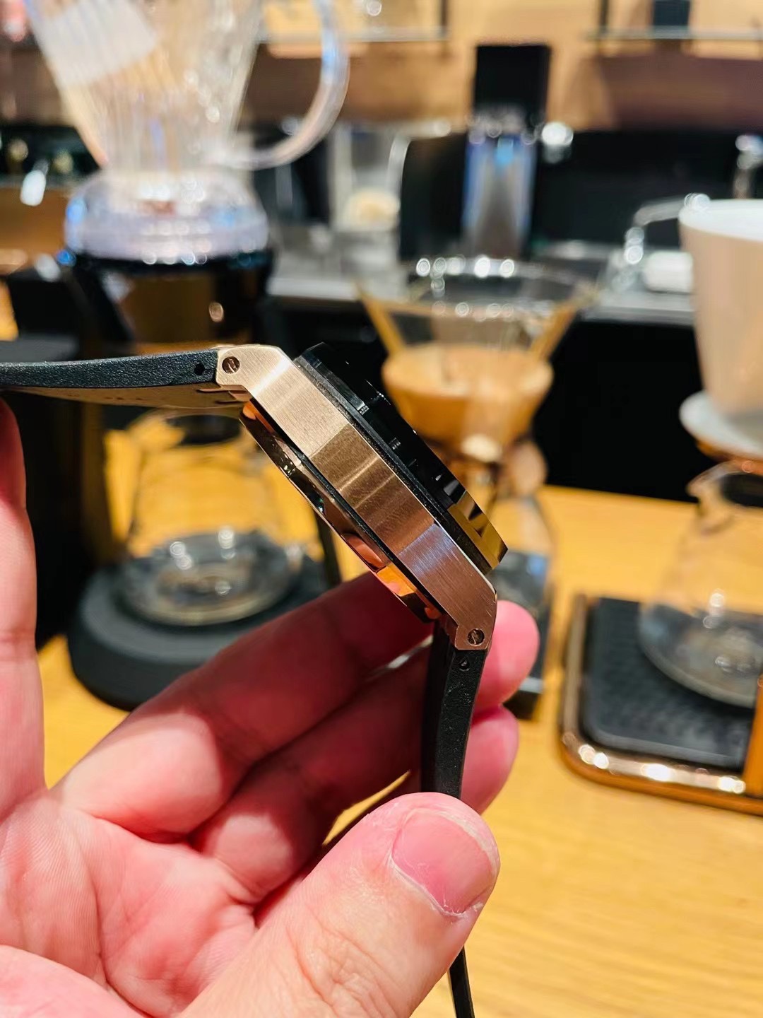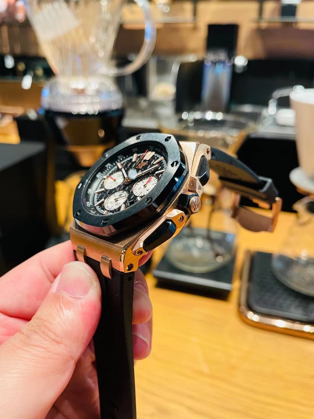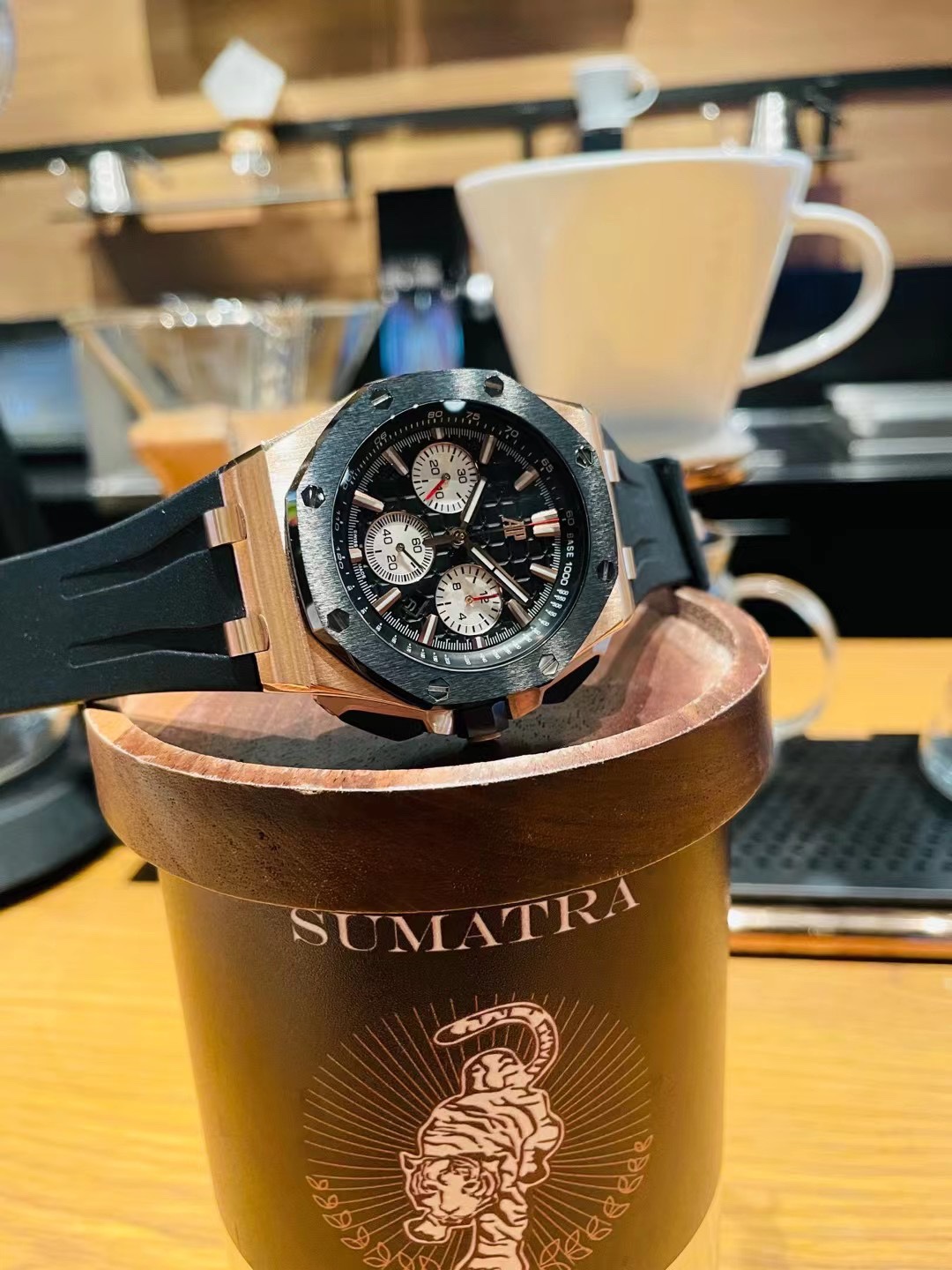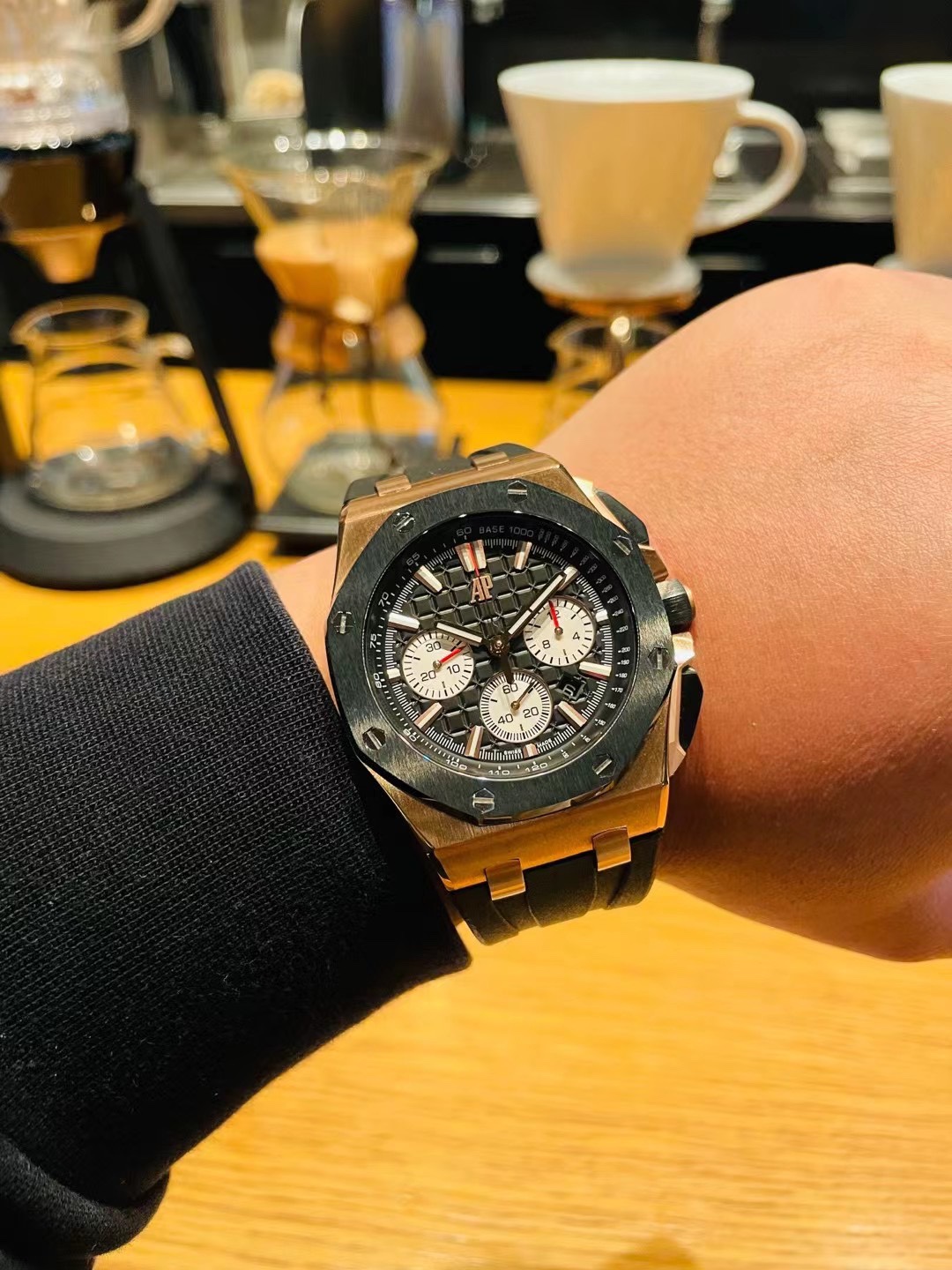 这款手表是AAAAA 1:1 质量 (非常棒). 使用了和原版一模一样的材料. 商标部分也保持了和爱彼/Audemars Piguet一样. 图片拍摄是实物手表拍摄, 您所收到的实物保证和我们图片一模一样.