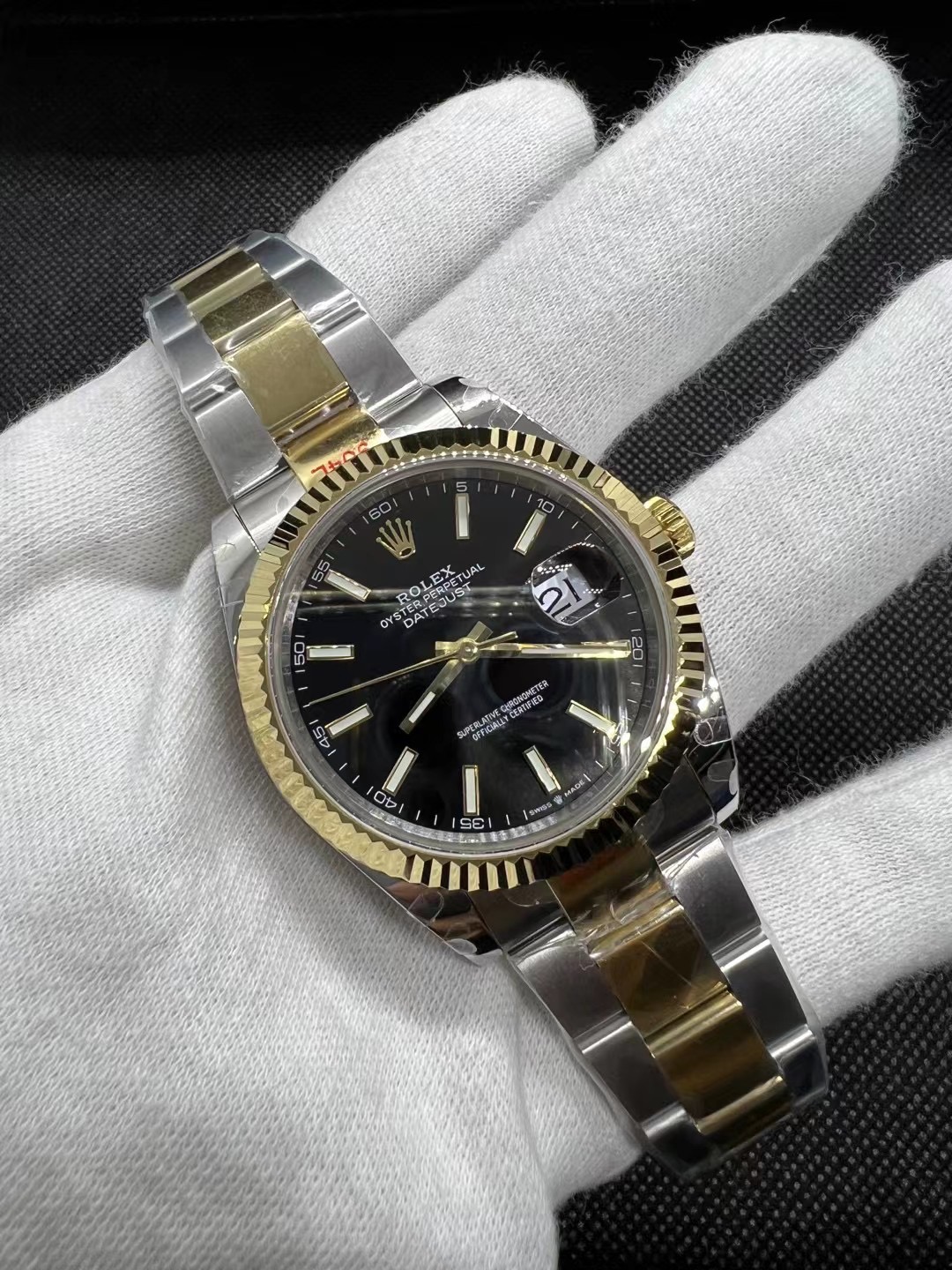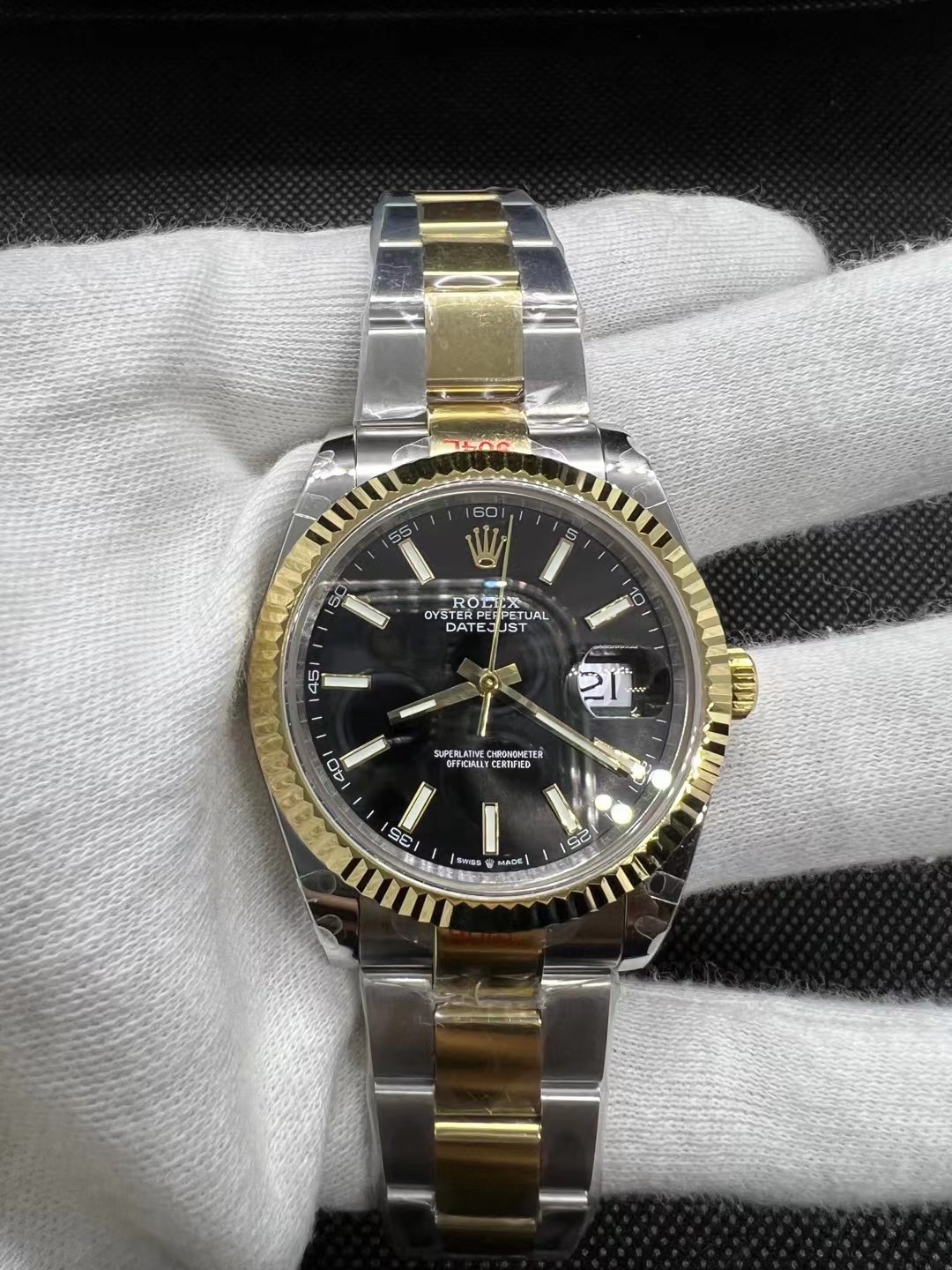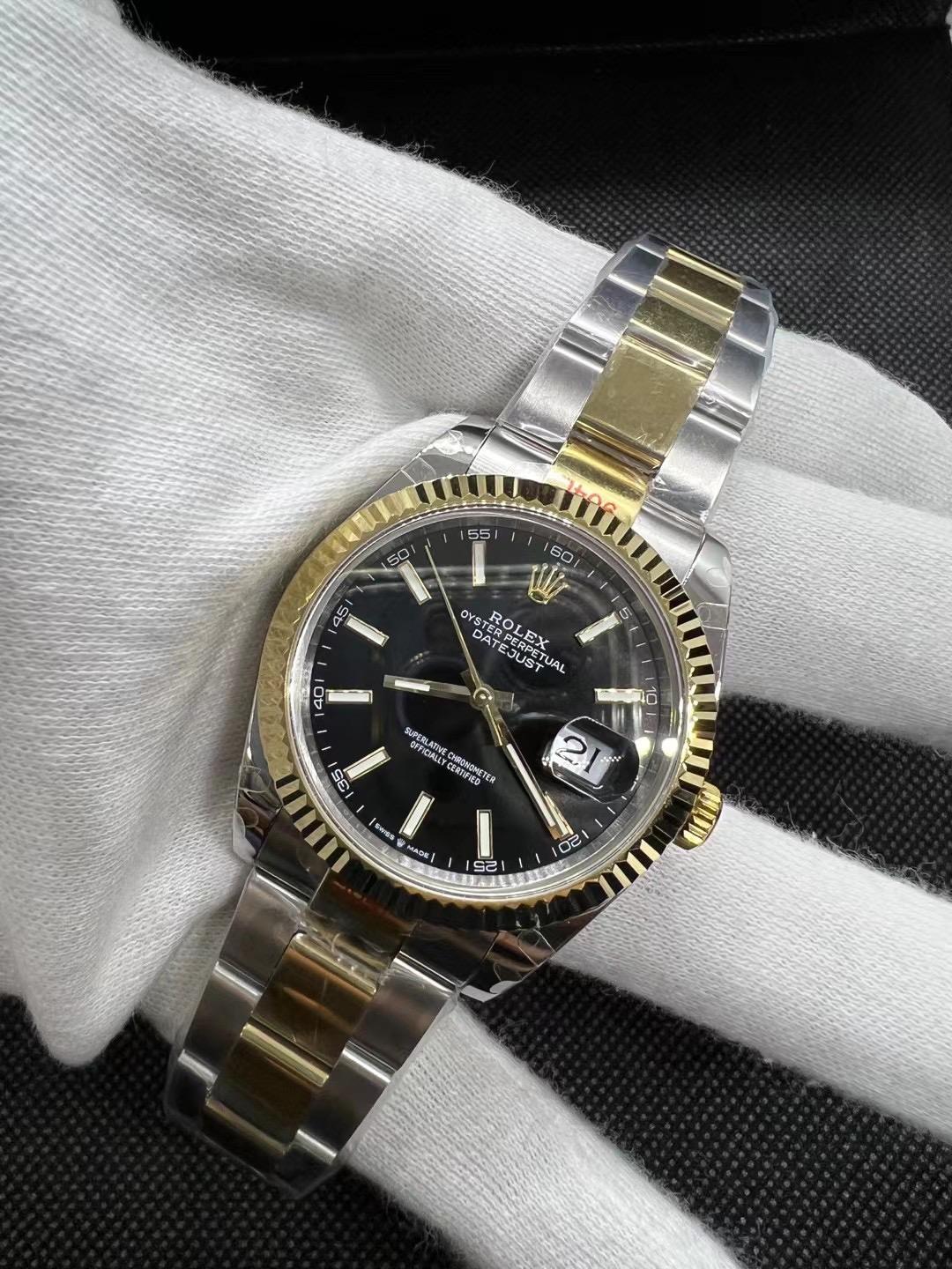 这款手表是AAAAA 1:1 质量 (非常棒). 使用了和原版一模一样的材料. 商标部分也保持了和劳力士/Rolex一样. 图片拍摄是实物手表拍摄, 您所收到的实物保证和我们图片一模一样.