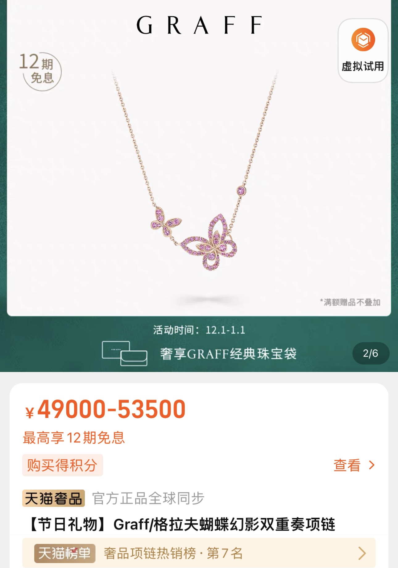 这款首饰是AAAAA 1:1 质量 (非常棒). 使用了和原版一模一样的材料. 商标部分也保持了和GRAFF一样. 图片拍摄是实物首饰拍摄, 您所收到的实物保证和我们图片一模一样.