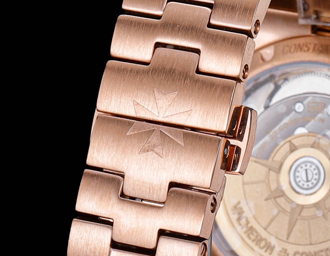 这款手表是AAAAA 1:1 质量 (非常棒). 使用了和原版一模一样的材料. 商标部分也保持了和江诗丹顿/Vacheron Constantin一样. 图片拍摄是实物手表拍摄, 您所收到的实物保证和我们图片一模一样.