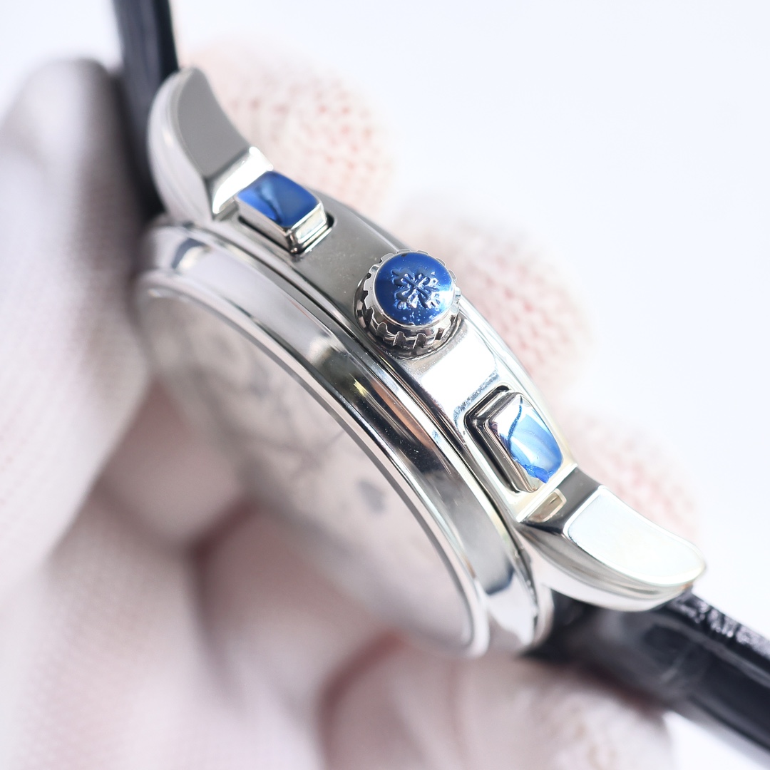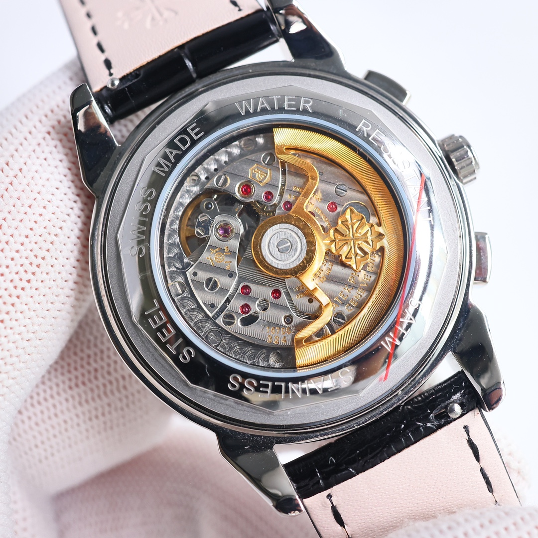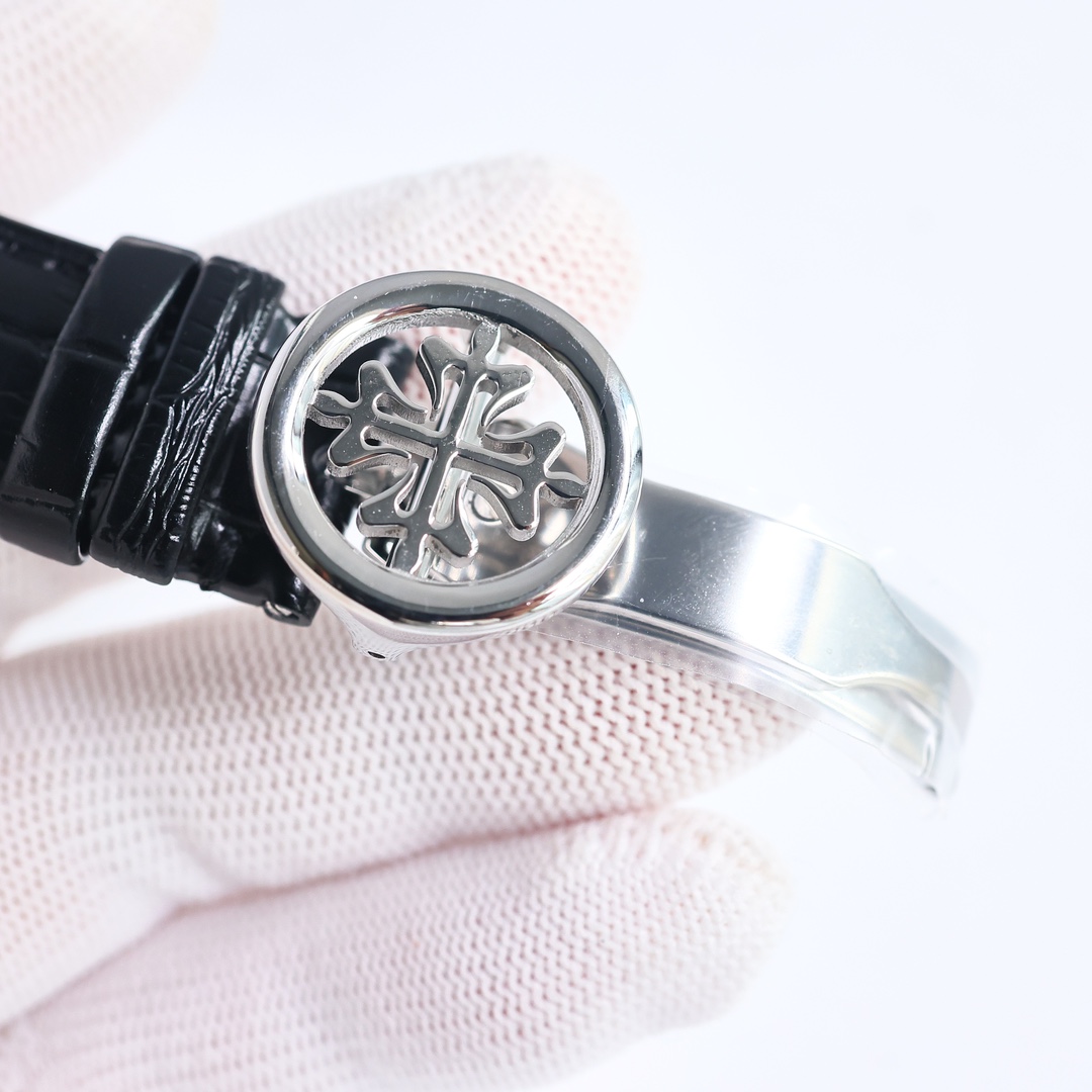 这款手表是AAAAA 1:1 质量 (非常棒). 使用了和原版一模一样的材料. 商标部分也保持了和百达翡丽/Patek Philippe一样. 图片拍摄是实物手表拍摄, 您所收到的实物保证和我们图片一模一样.