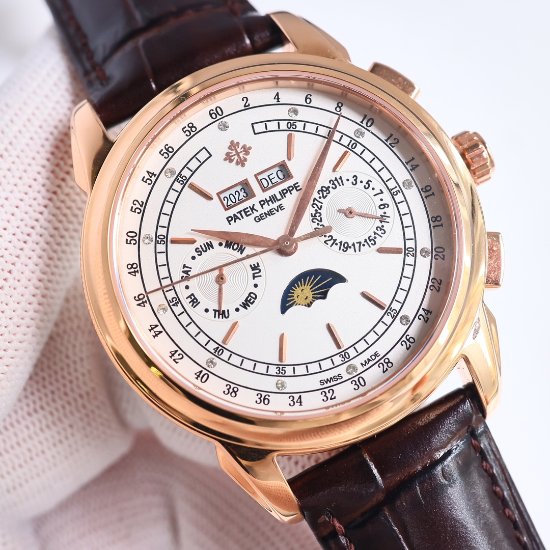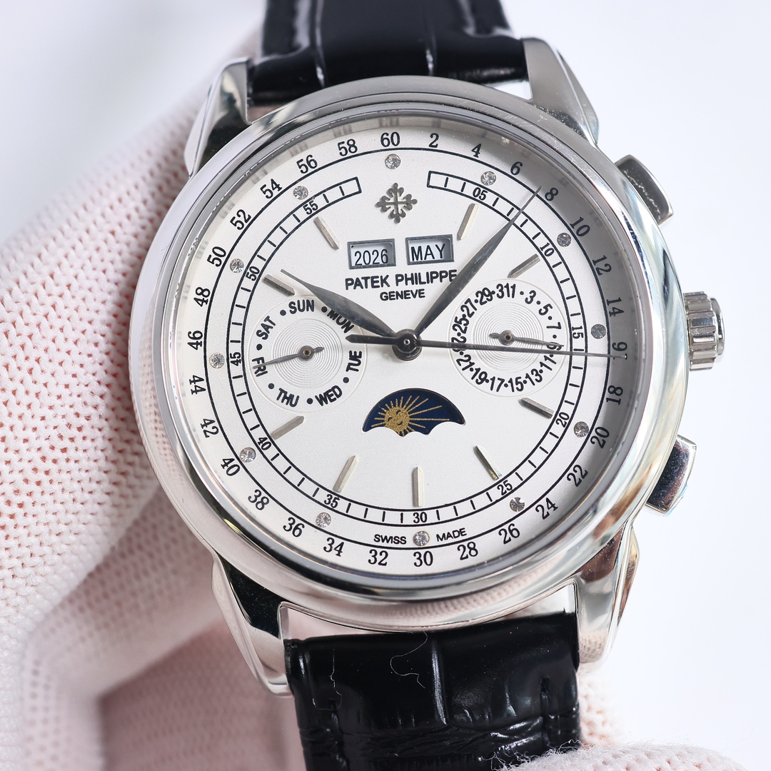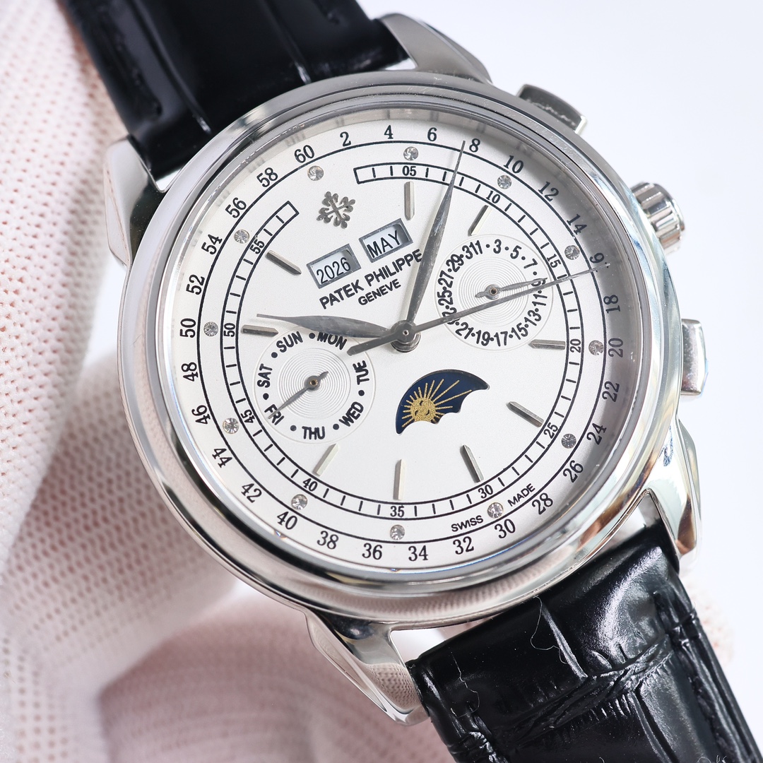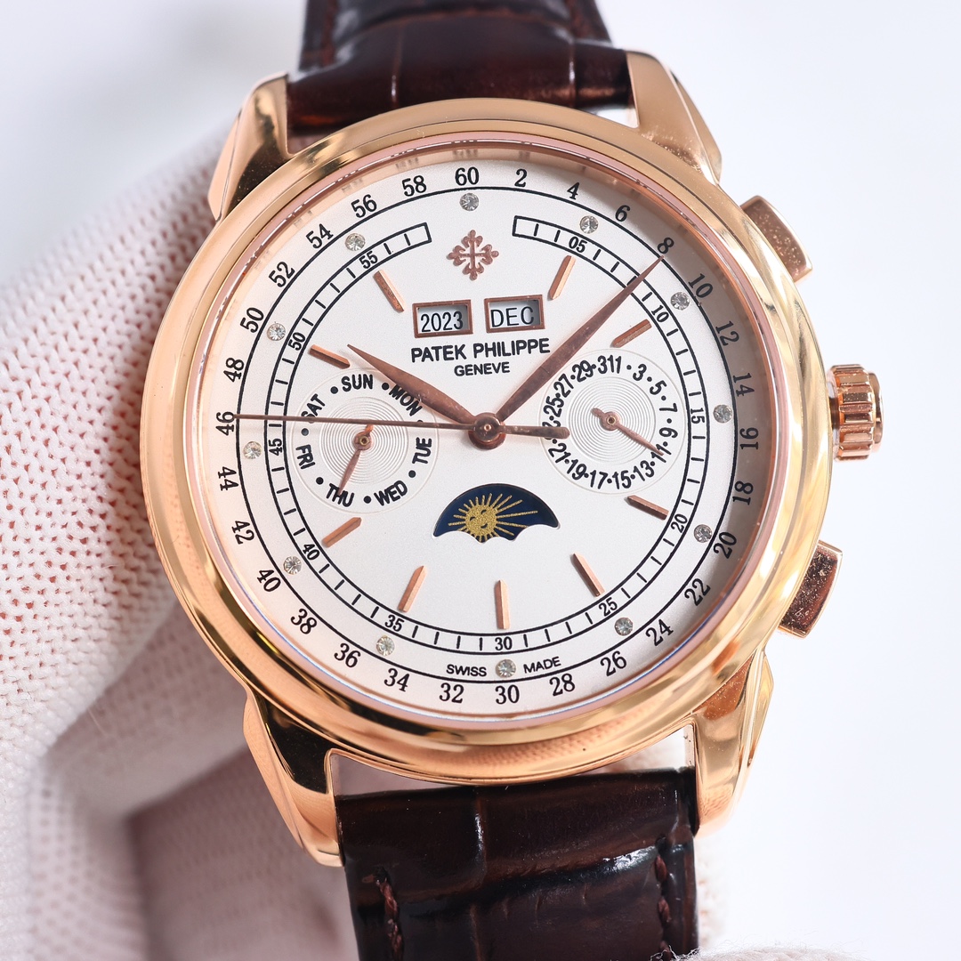 这款手表是AAAAA 1:1 质量 (非常棒). 使用了和原版一模一样的材料. 商标部分也保持了和百达翡丽/Patek Philippe一样. 图片拍摄是实物手表拍摄, 您所收到的实物保证和我们图片一模一样.