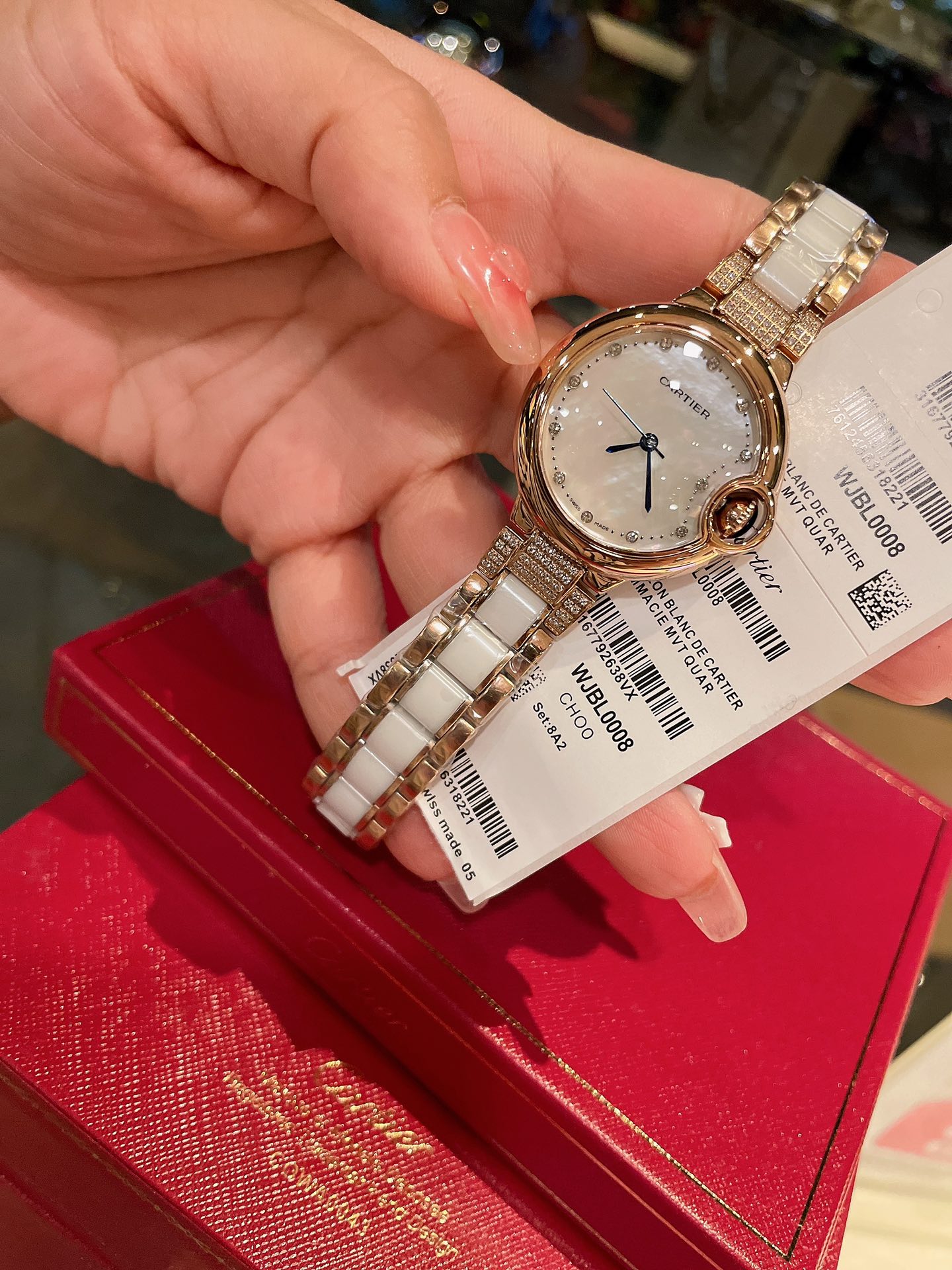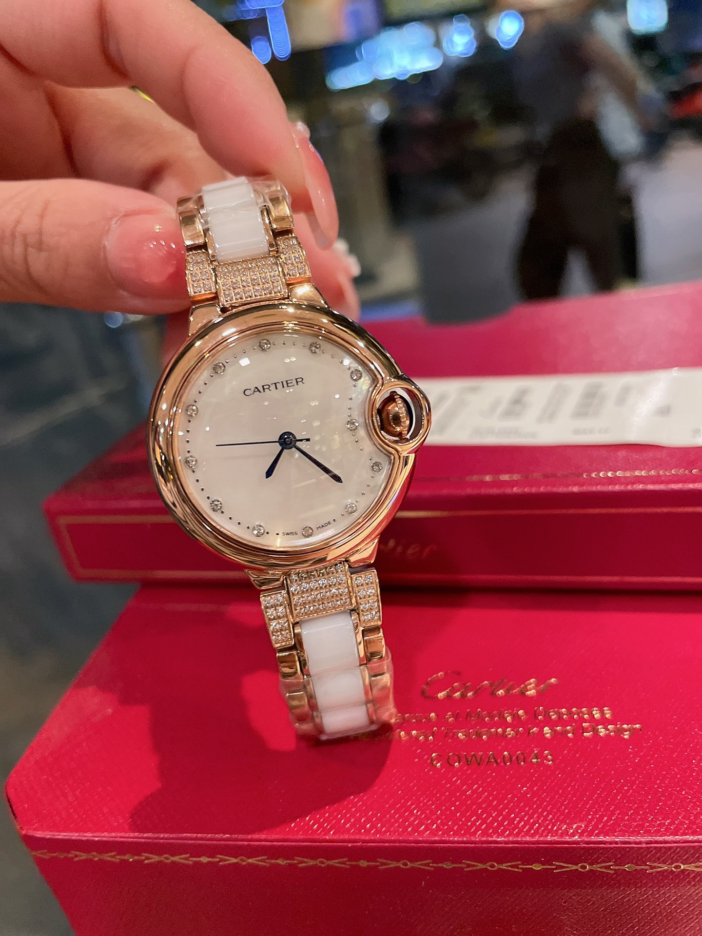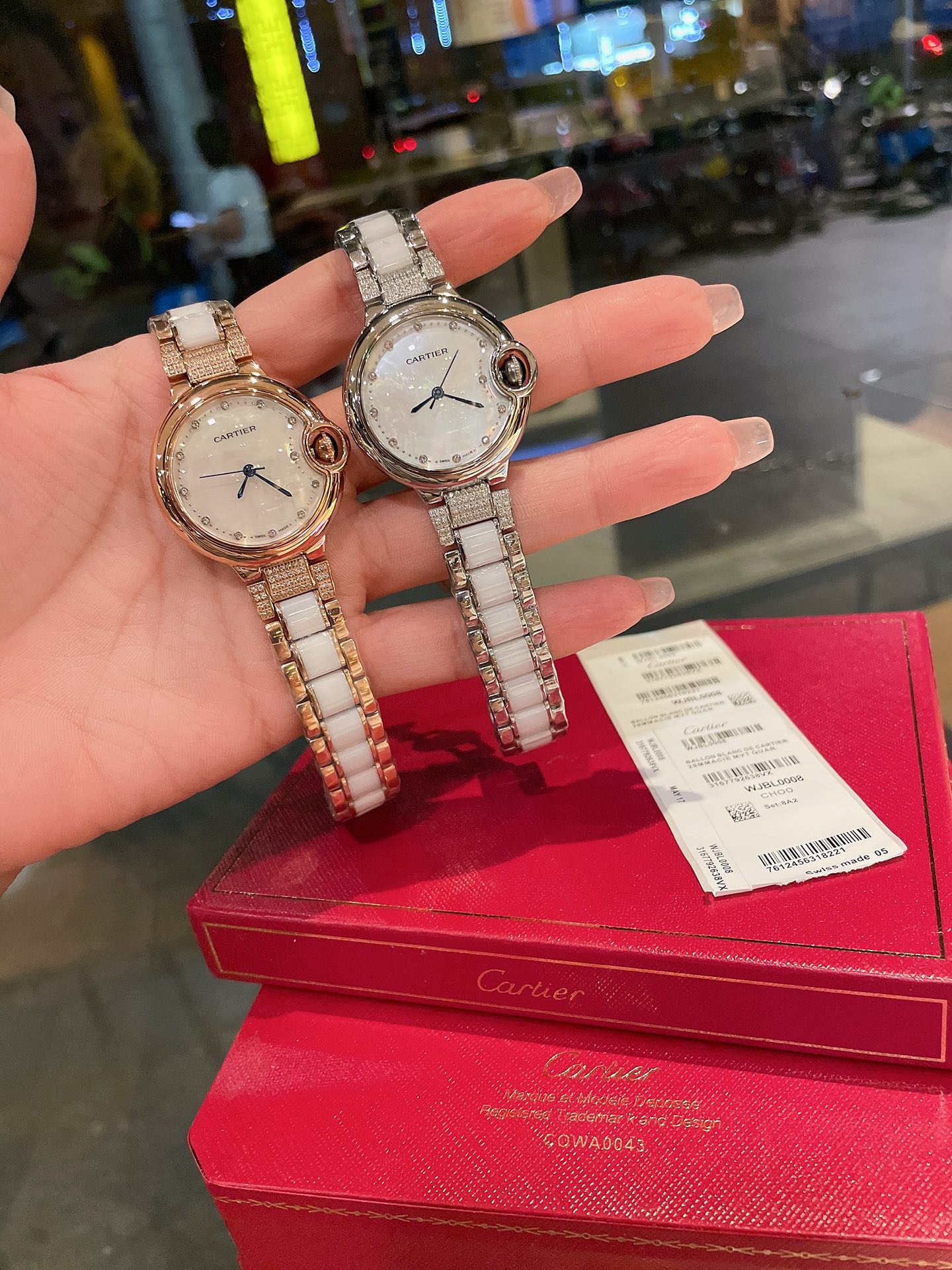 这款手表是AAAAA 1:1 质量 (非常棒). 使用了和原版一模一样的材料. 商标部分也保持了和卡地亚/Cartier一样. 图片拍摄是实物手表拍摄, 您所收到的实物保证和我们图片一模一样.