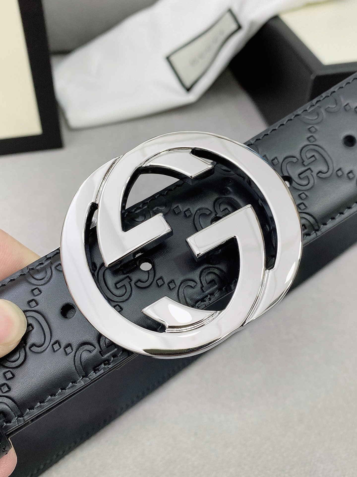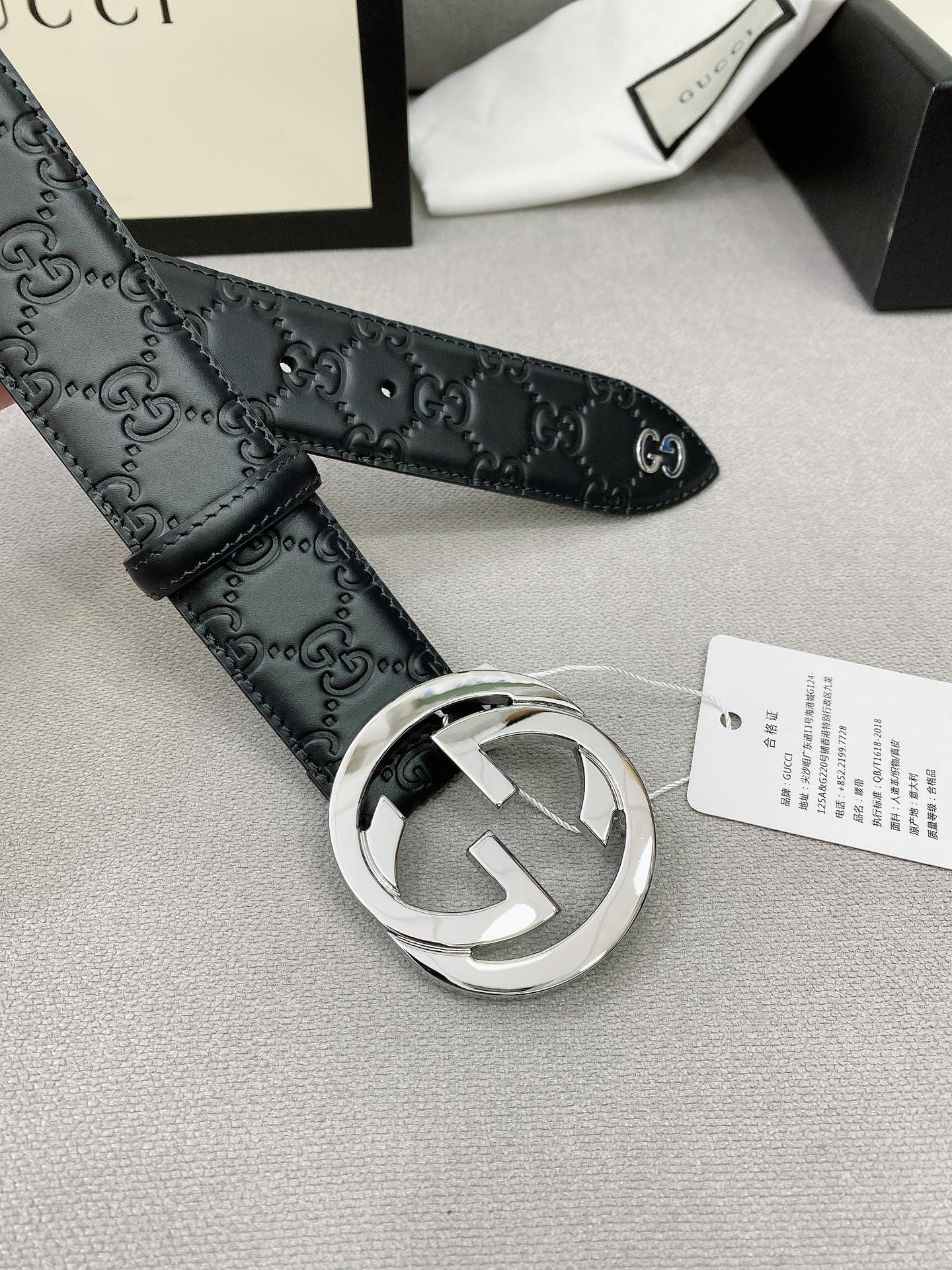 这款皮带是AAAAA 1:1 质量 (非常棒). 使用了和原版一模一样的材料. 商标部分也保持了和古奇/Gucci一样. 图片拍摄是实物皮带拍摄, 您所收到的实物保证和我们图片一模一样.