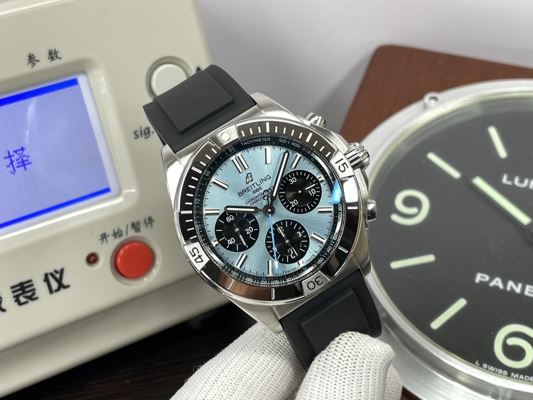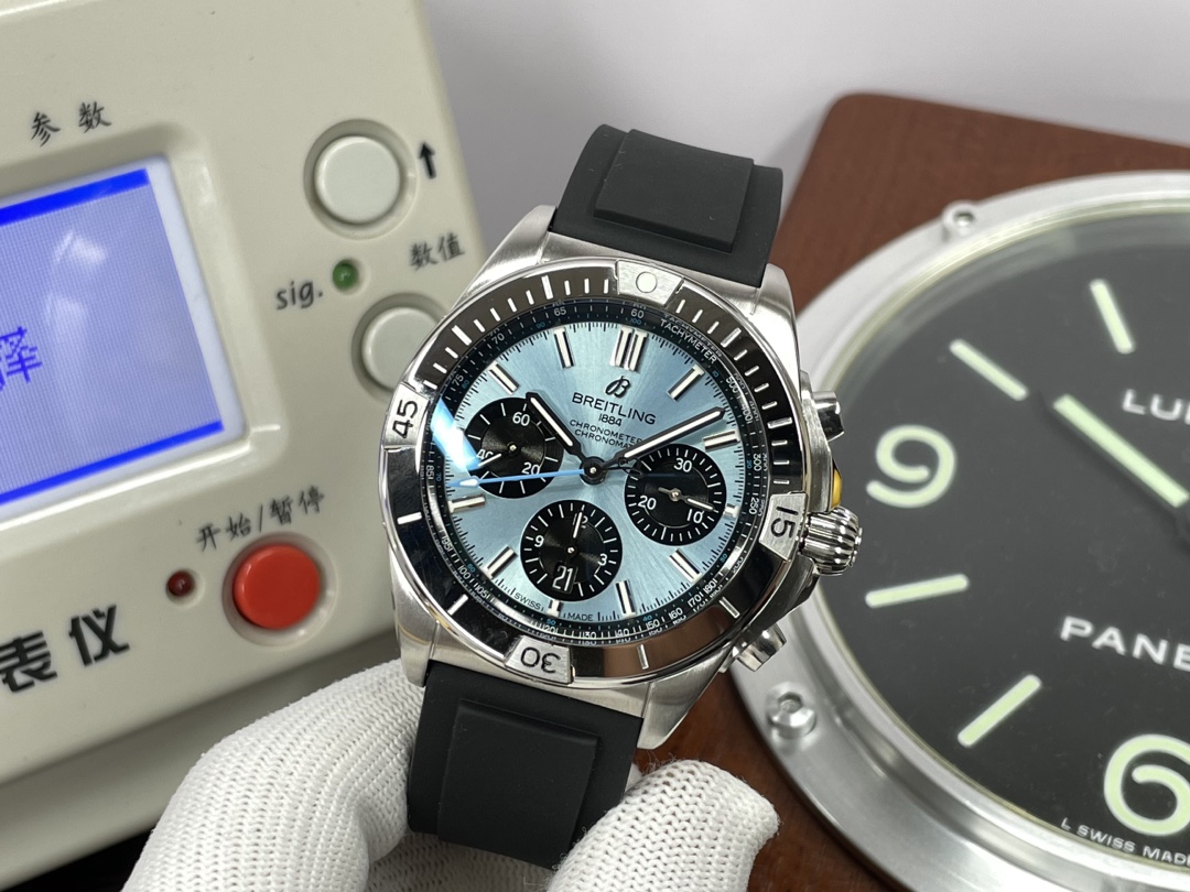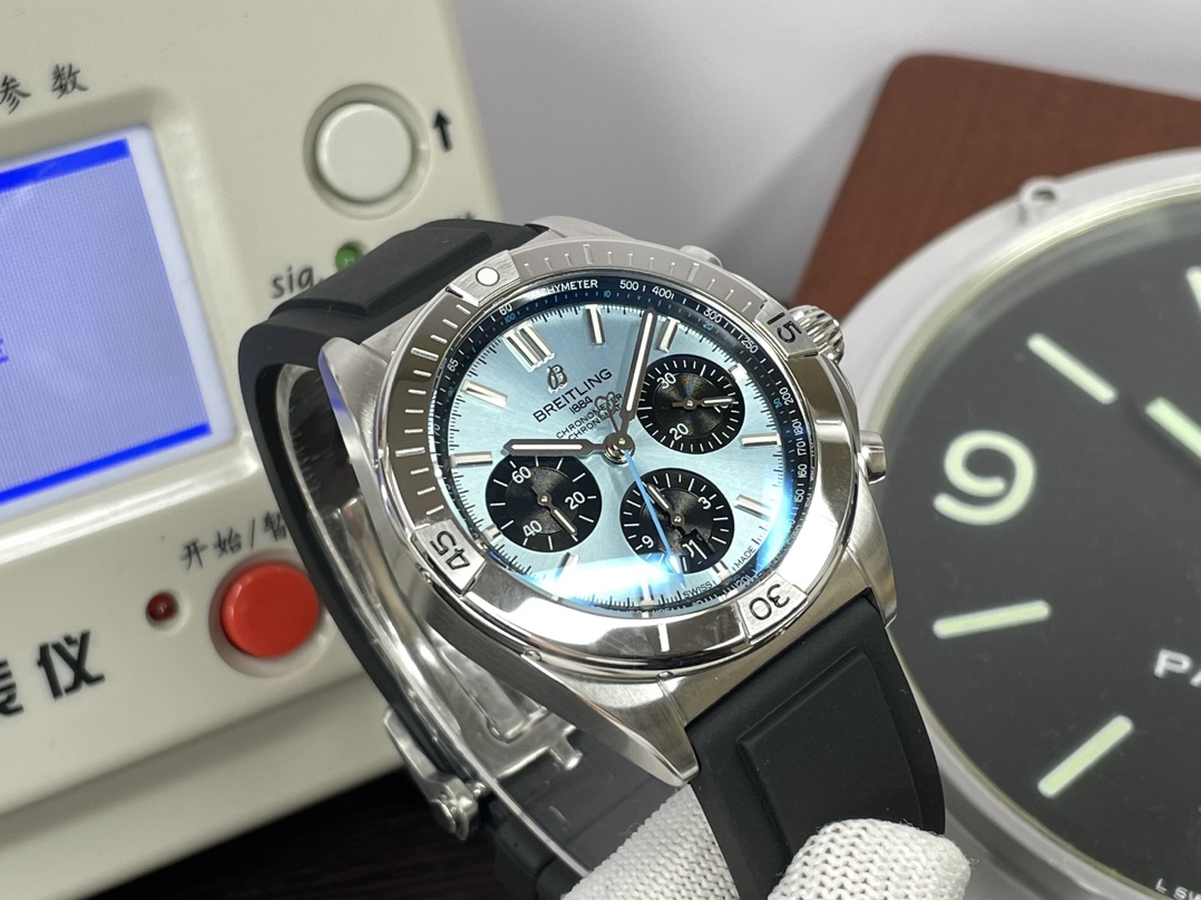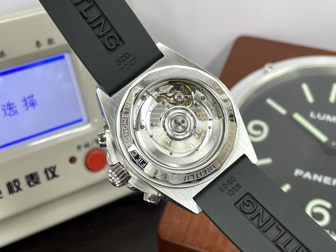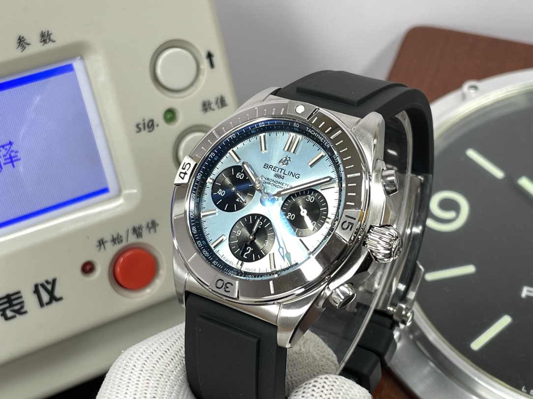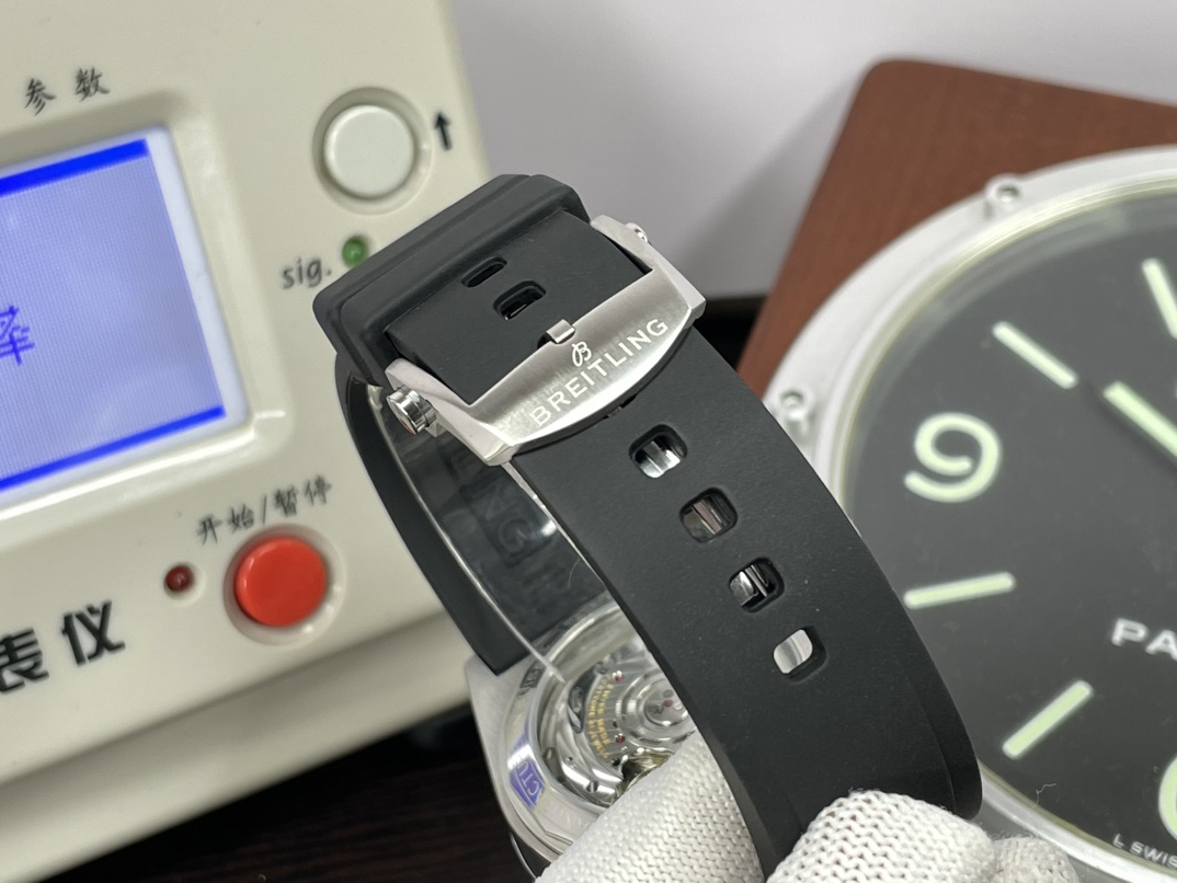 这款手表是AAAAA 1:1 质量 (非常棒). 使用了和原版一模一样的材料. 商标部分也保持了和Breitling一样. 图片拍摄是实物手表拍摄, 您所收到的实物保证和我们图片一模一样.