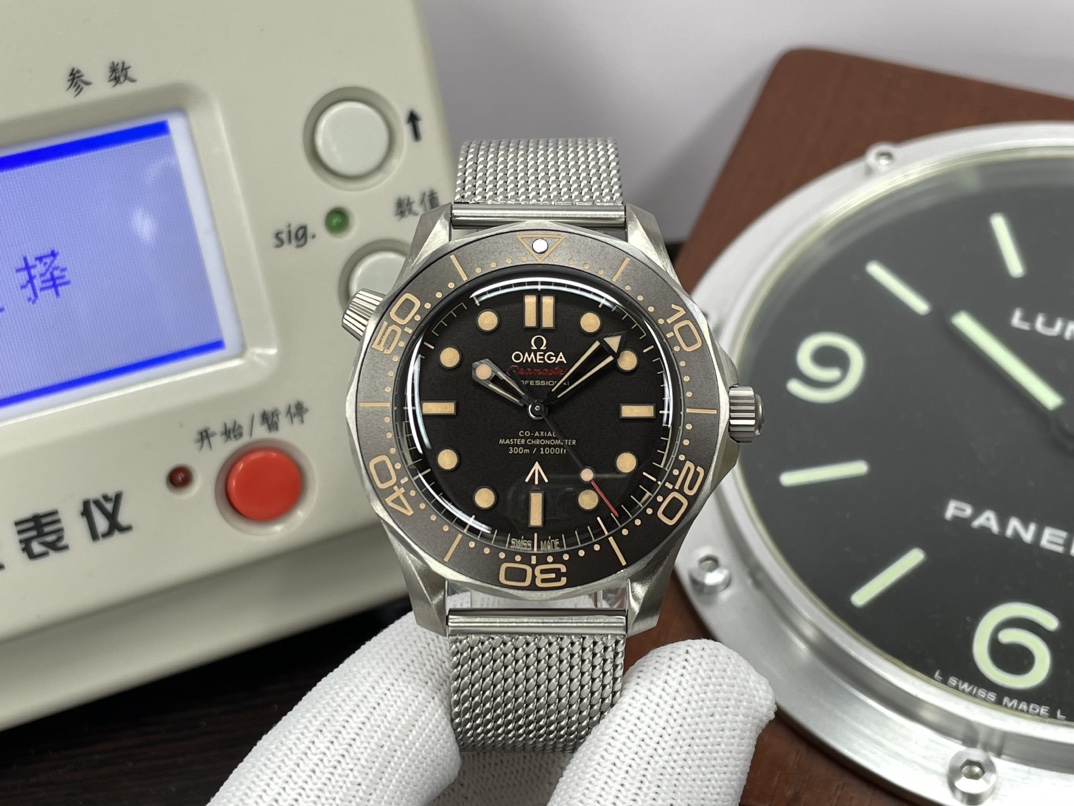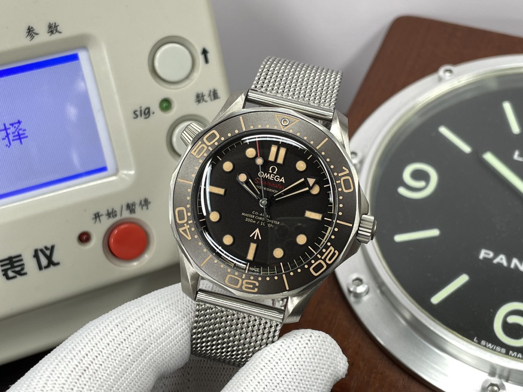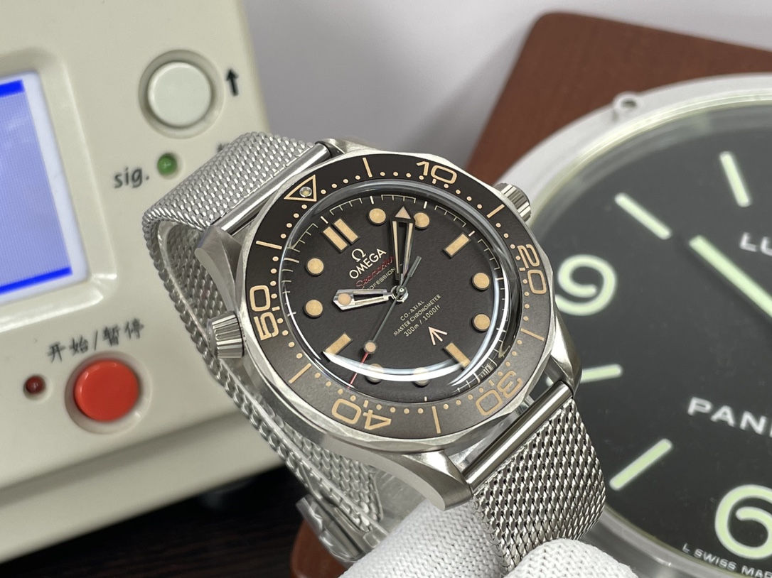 这款手表是AAAAA 1:1 质量 (非常棒). 使用了和原版一模一样的材料. 商标部分也保持了和欧米茄/Omega一样. 图片拍摄是实物手表拍摄, 您所收到的实物保证和我们图片一模一样.