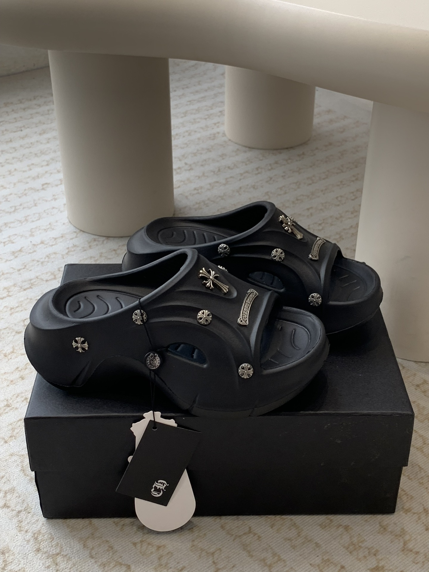 这款鞋子是AAAAA 1:1 质量 (非常棒). 使用了和原版一模一样的材料. 商标部分也保持了和克罗心/Chrome Hearts一样. 图片拍摄是实物鞋子拍摄, 您所收到的实物保证和我们图片一模一样.