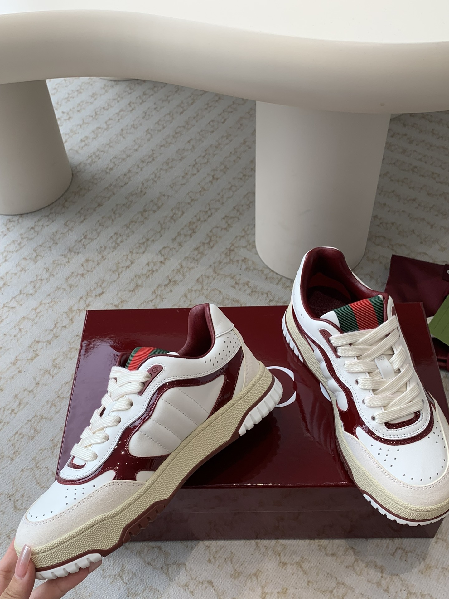 这款鞋子是AAAAA 1:1 质量 (非常棒). 使用了和原版一模一样的材料. 商标部分也保持了和古奇/Gucci一样. 图片拍摄是实物鞋子拍摄, 您所收到的实物保证和我们图片一模一样.