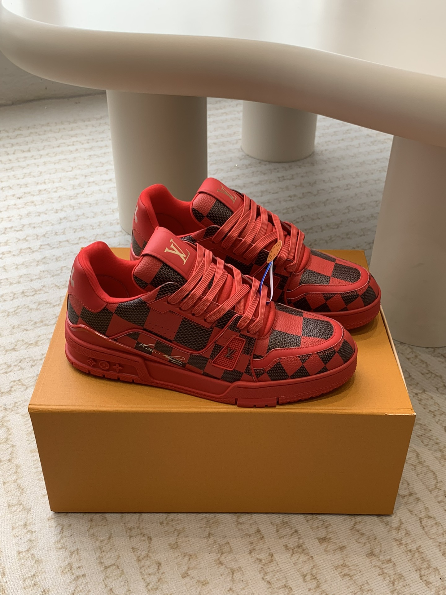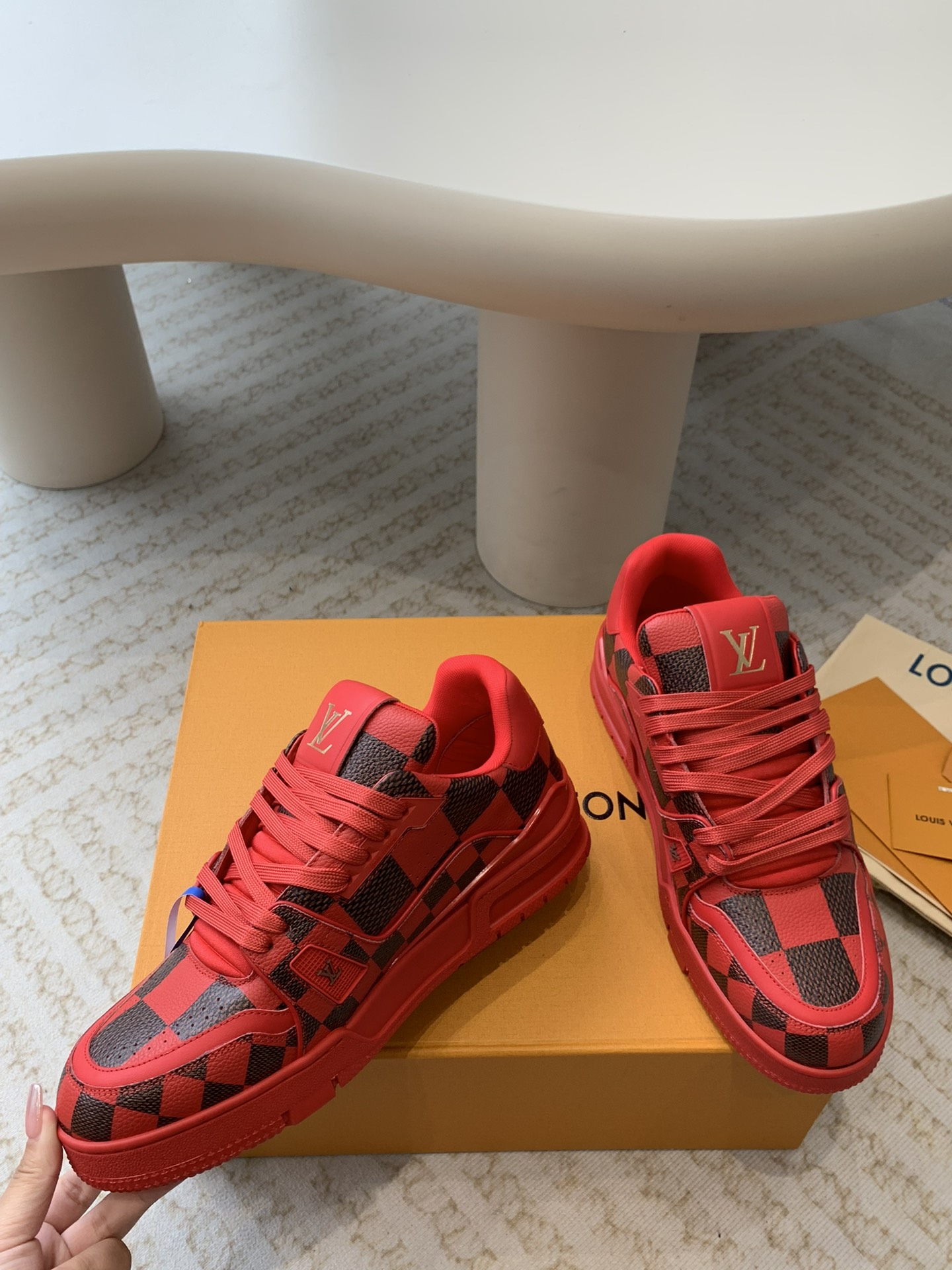 这款鞋子是AAAAA 1:1 质量 (非常棒). 使用了和原版一模一样的材料. 商标部分也保持了和路易威登/Louis Vuitton一样. 图片拍摄是实物鞋子拍摄, 您所收到的实物保证和我们图片一模一样.