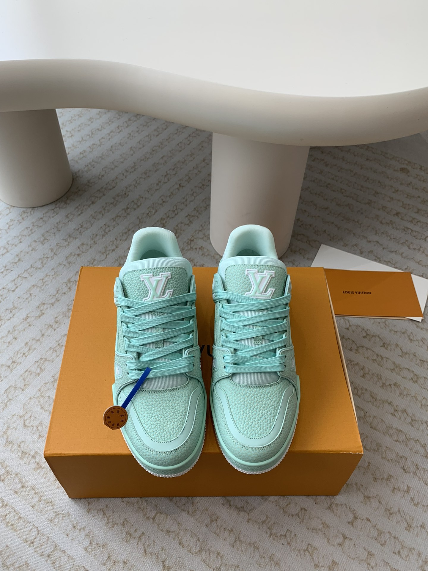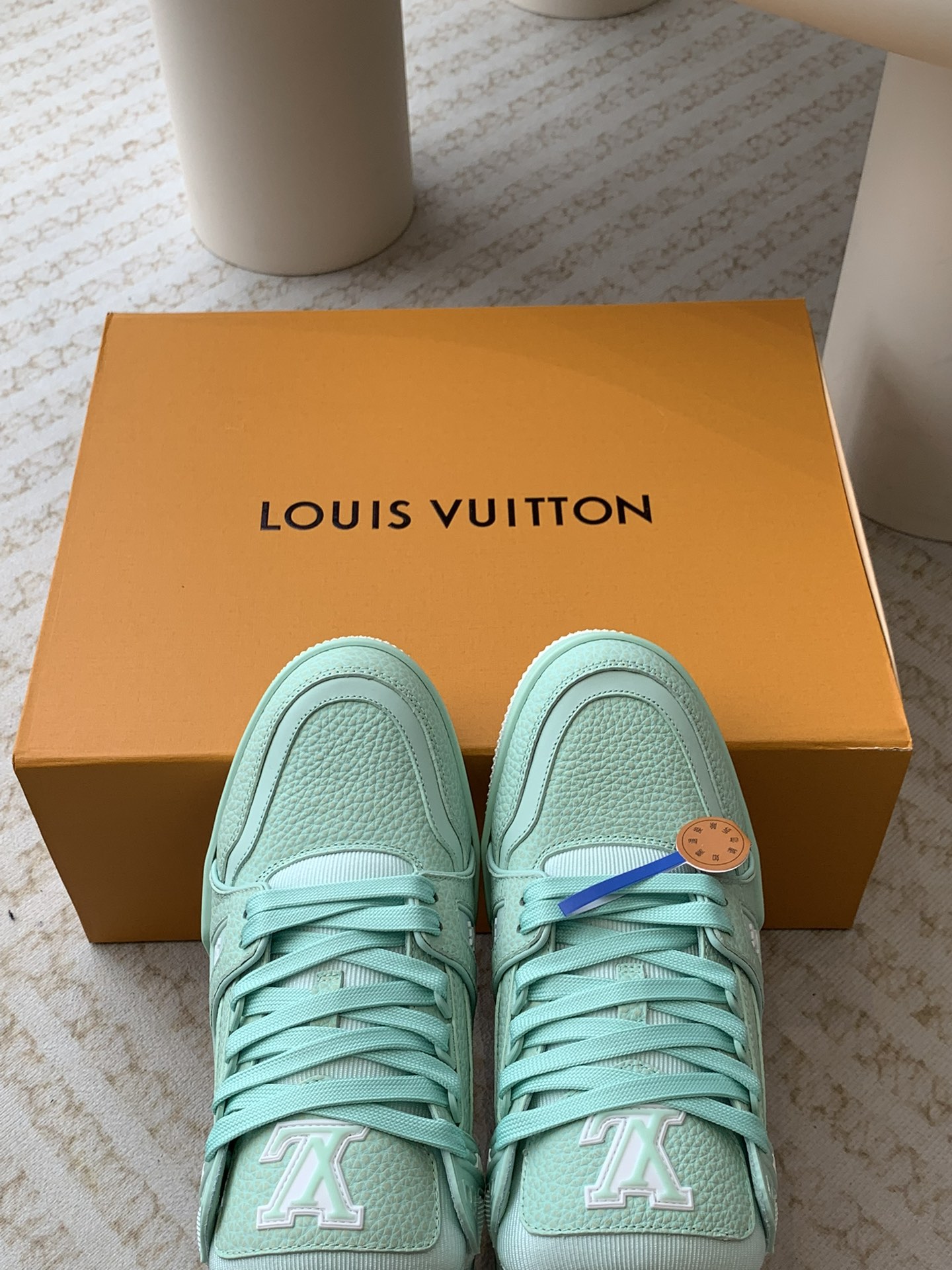 这款鞋子是AAAAA 1:1 质量 (非常棒). 使用了和原版一模一样的材料. 商标部分也保持了和路易威登/Louis Vuitton一样. 图片拍摄是实物鞋子拍摄, 您所收到的实物保证和我们图片一模一样.