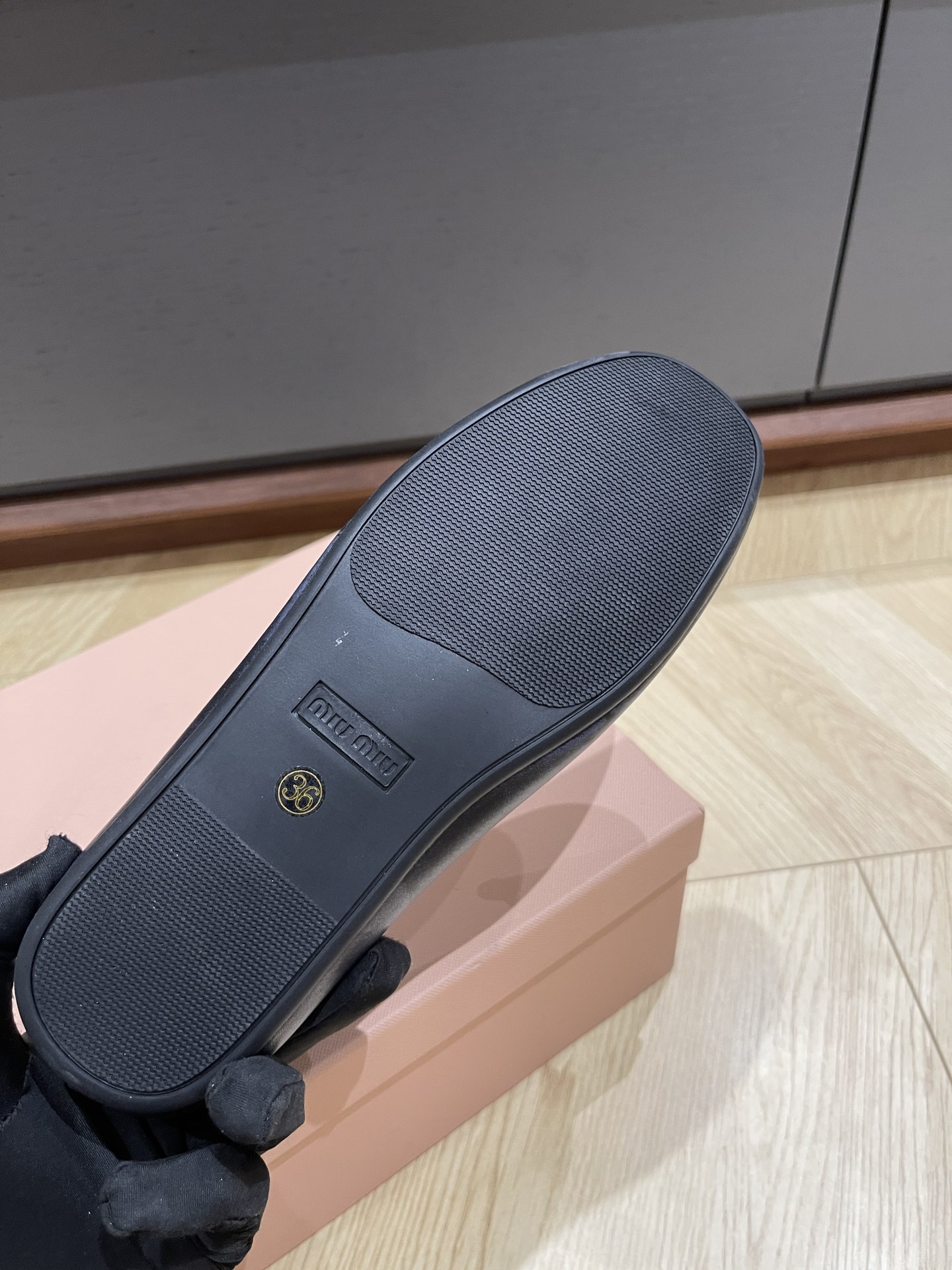 这款鞋子是AAAAA 1:1 质量 (非常棒). 使用了和原版一模一样的材料. 商标部分也保持了和缪缪/Miu Miu一样. 图片拍摄是实物鞋子拍摄, 您所收到的实物保证和我们图片一模一样.