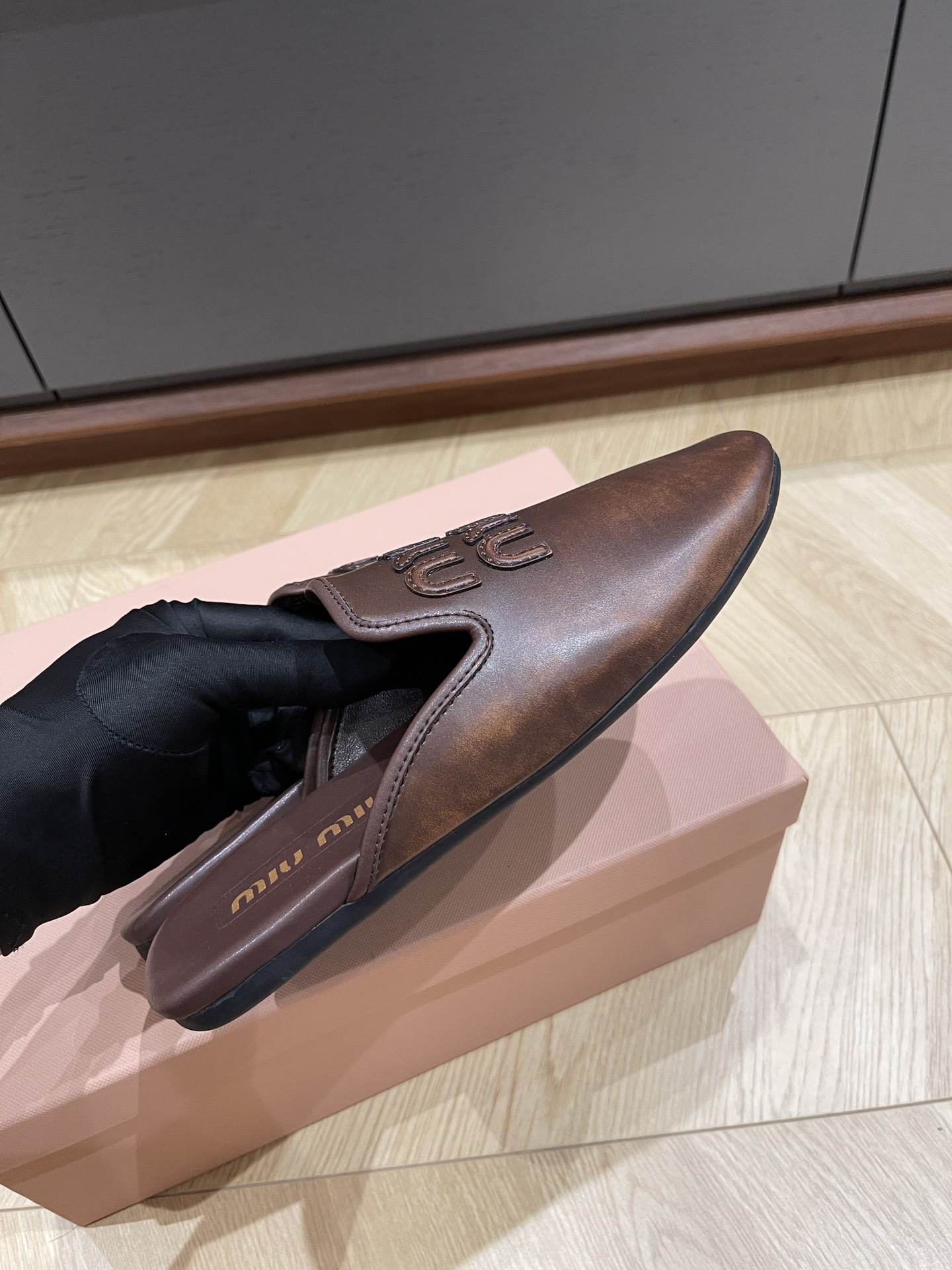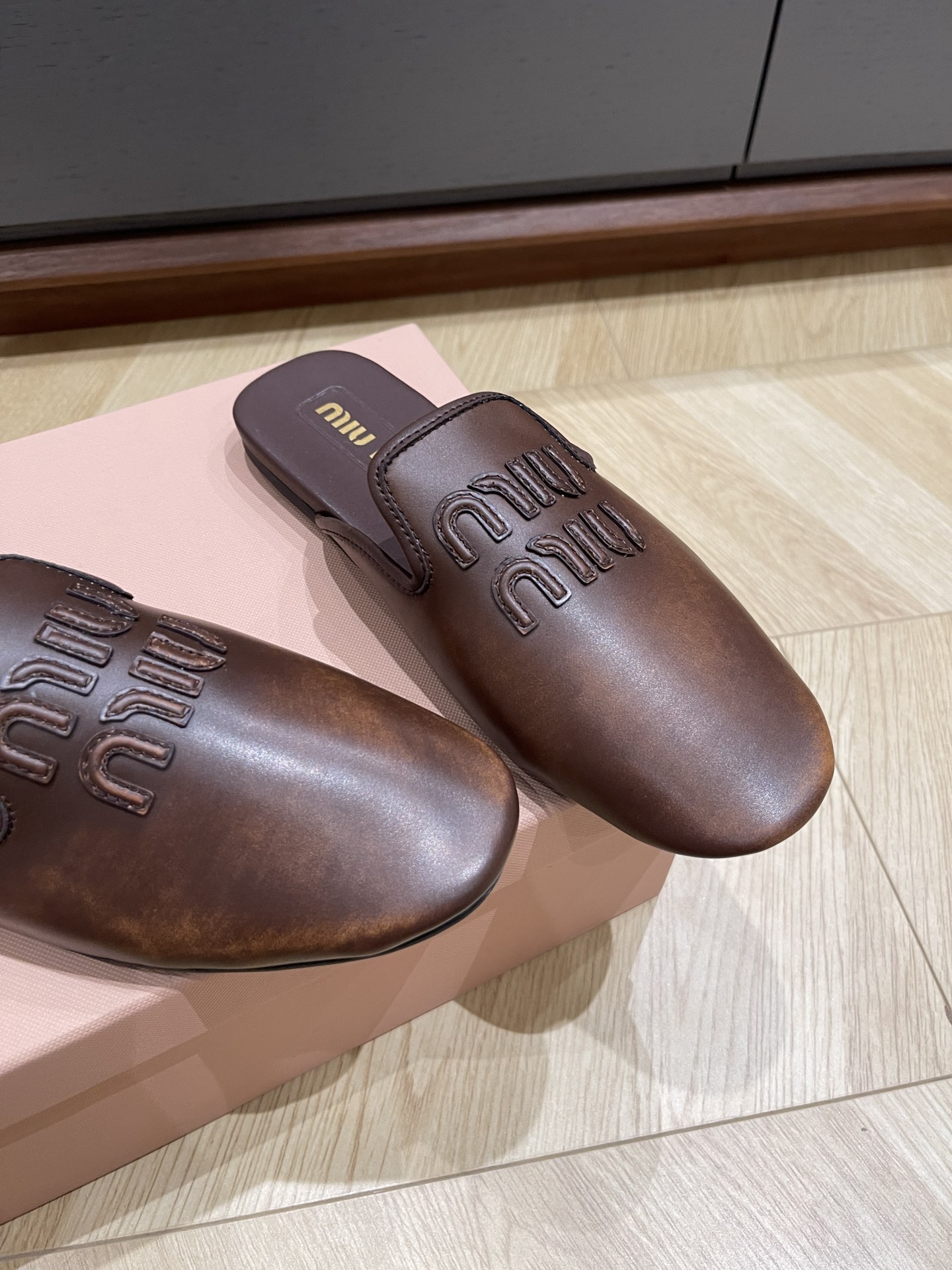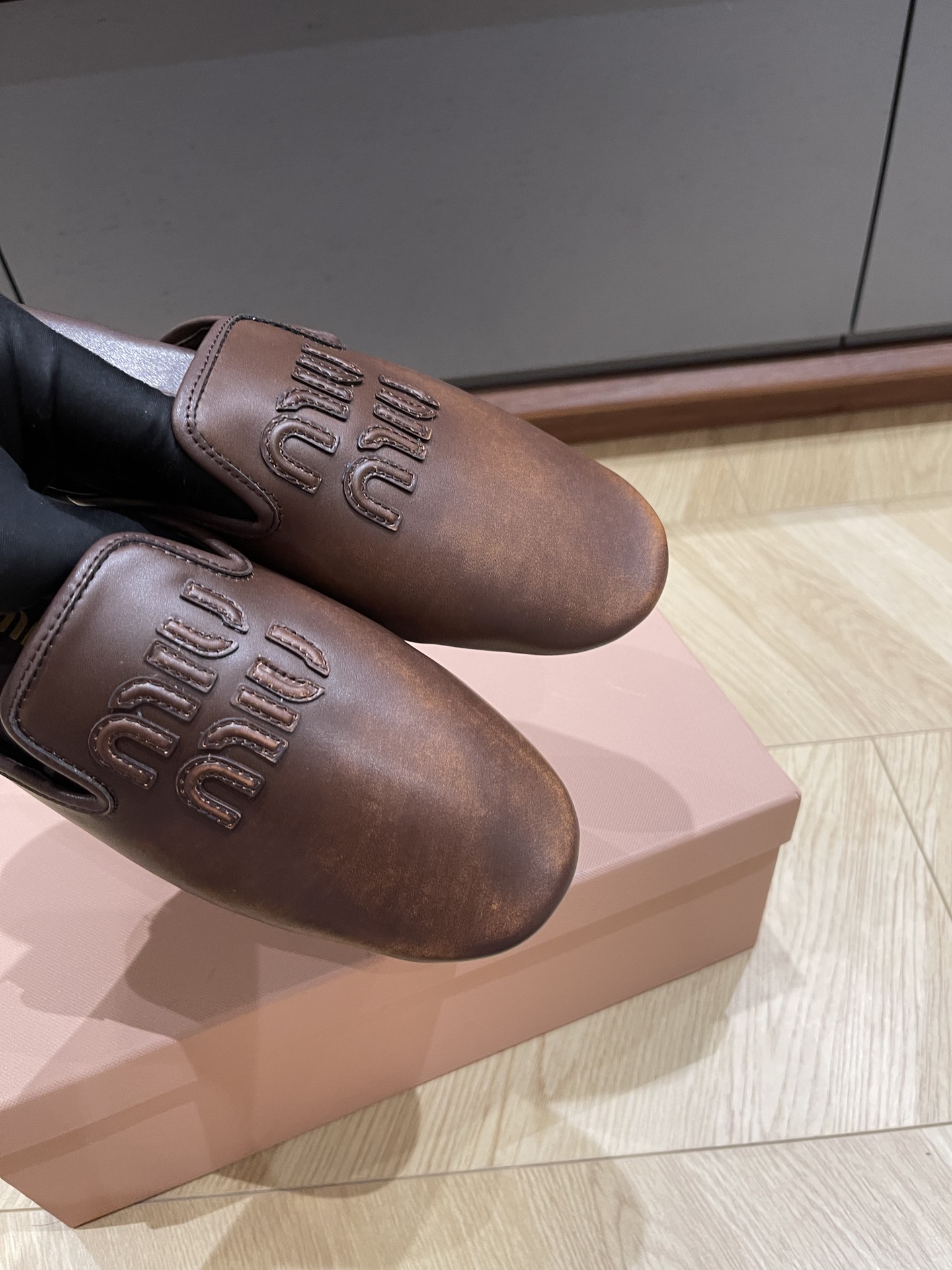 这款鞋子是AAAAA 1:1 质量 (非常棒). 使用了和原版一模一样的材料. 商标部分也保持了和缪缪/Miu Miu一样. 图片拍摄是实物鞋子拍摄, 您所收到的实物保证和我们图片一模一样.