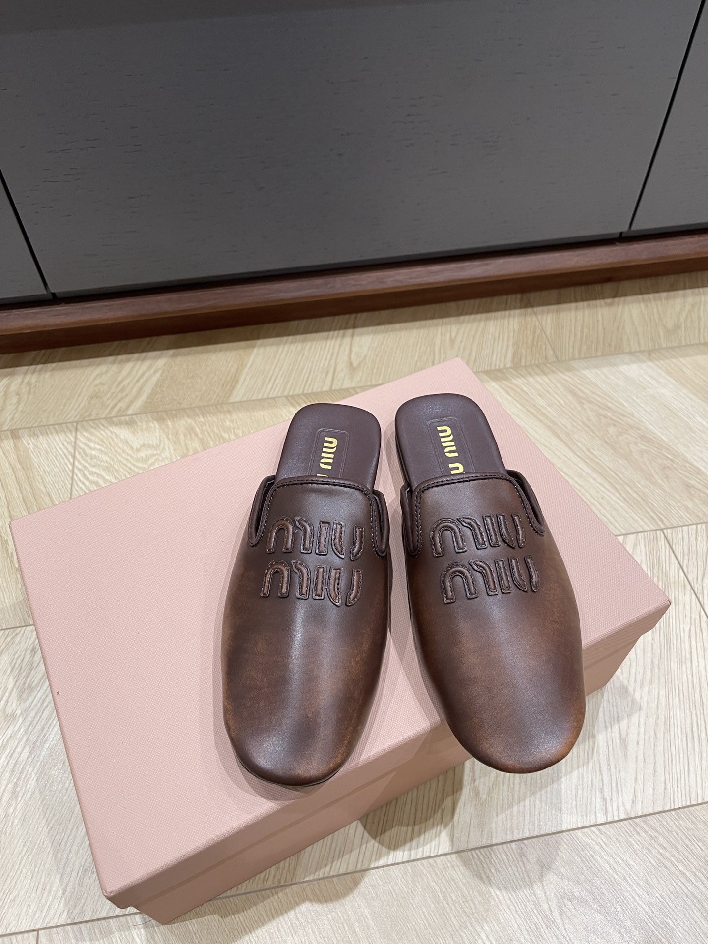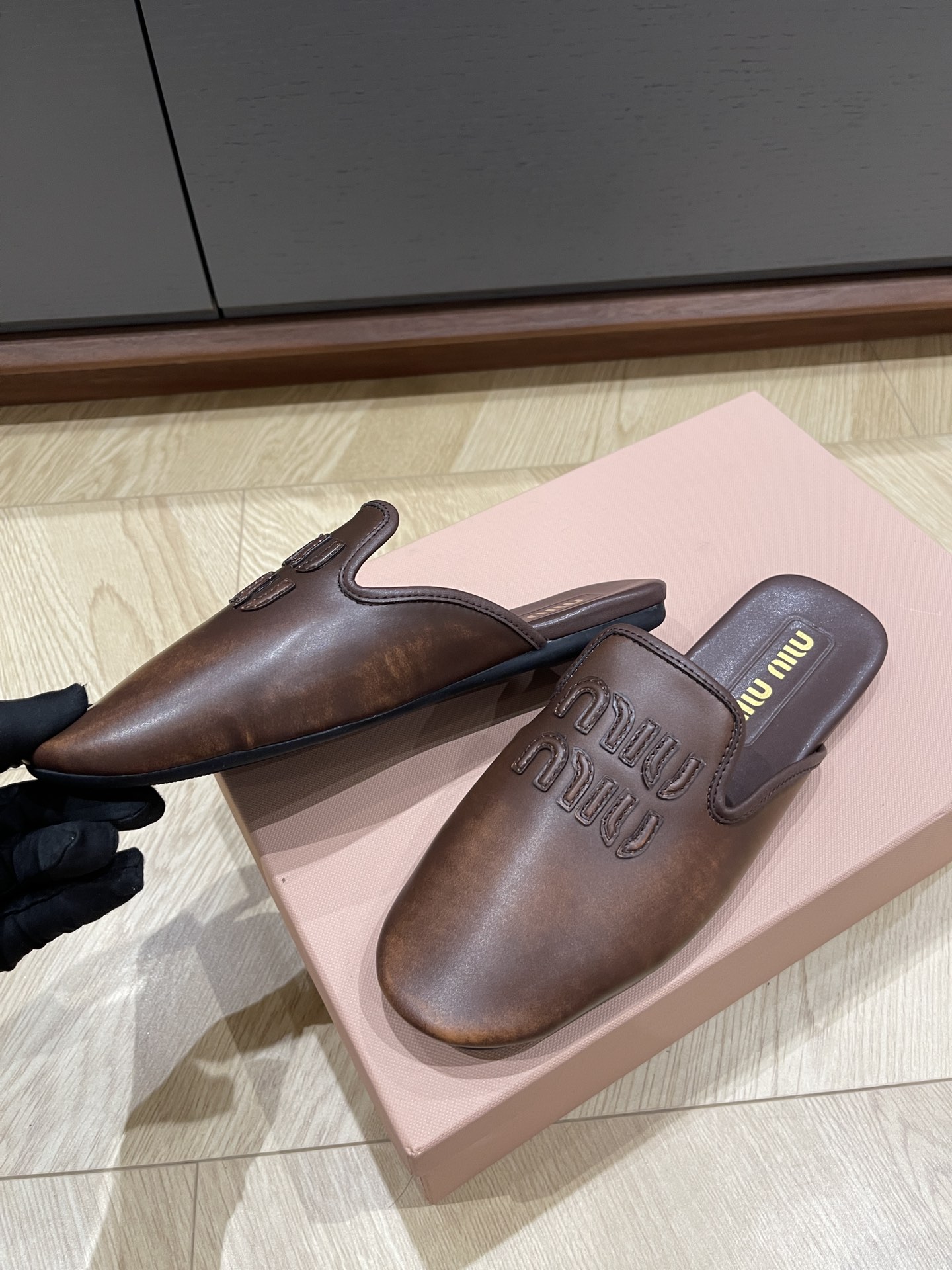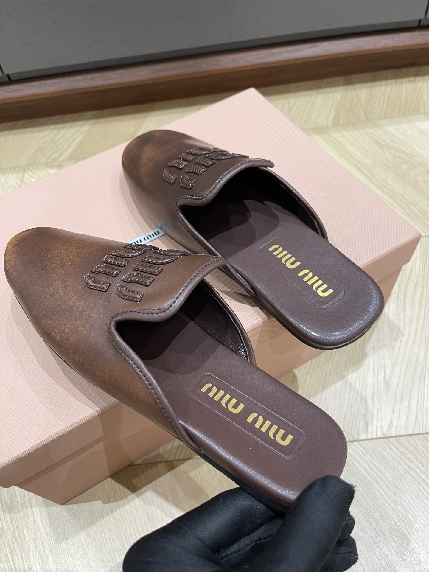 这款鞋子是AAAAA 1:1 质量 (非常棒). 使用了和原版一模一样的材料. 商标部分也保持了和缪缪/Miu Miu一样. 图片拍摄是实物鞋子拍摄, 您所收到的实物保证和我们图片一模一样.