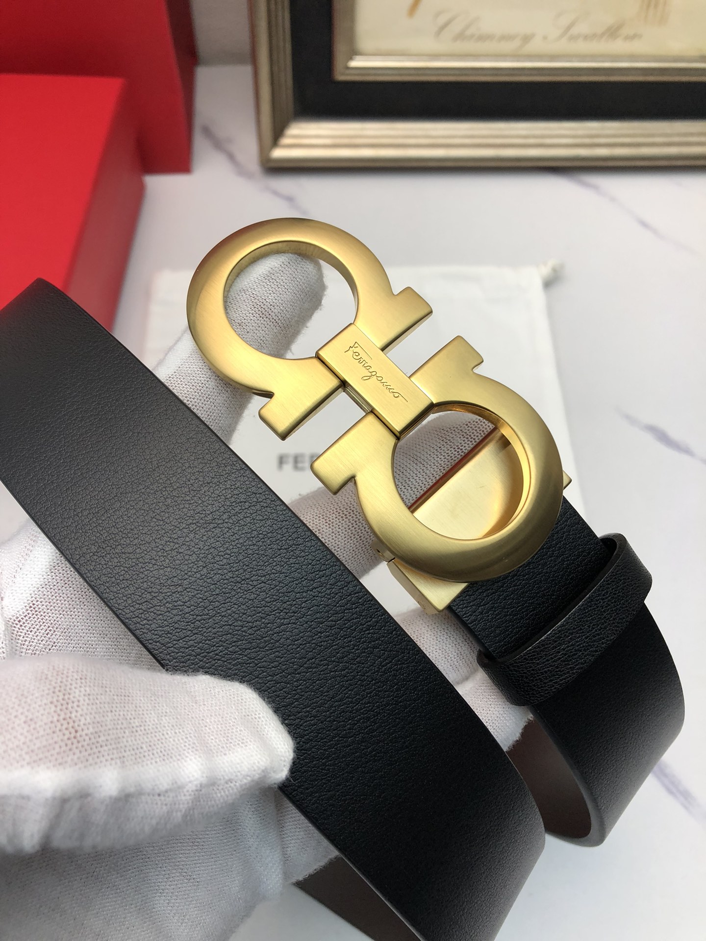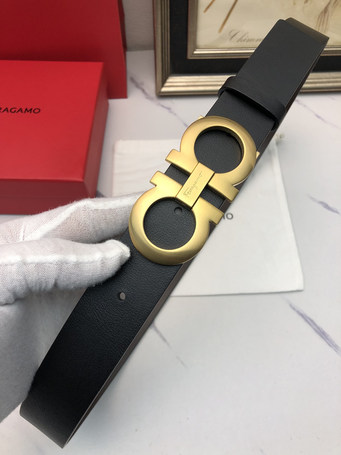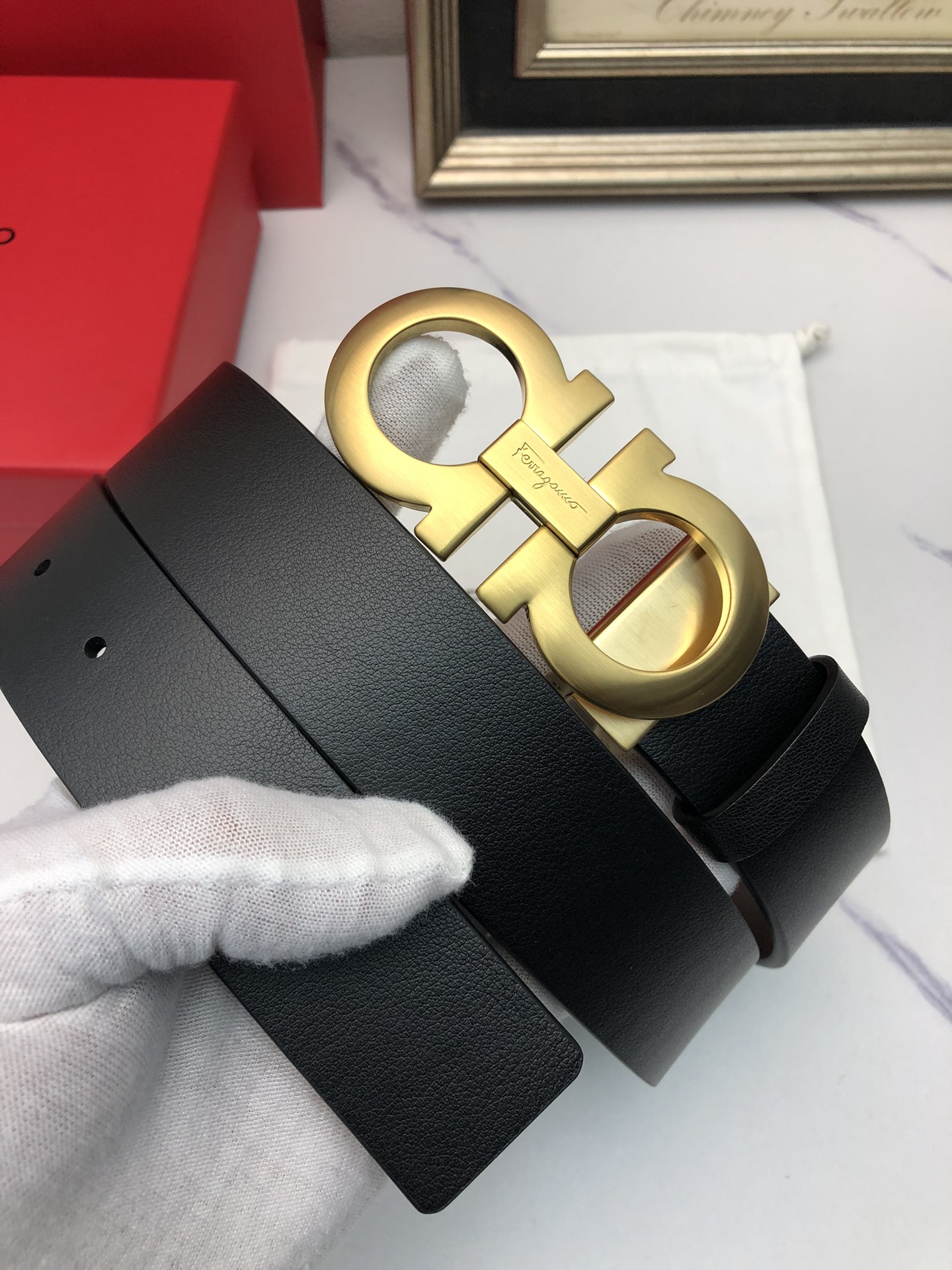 这款皮带是AAAAA 1:1 质量 (非常棒). 使用了和原版一模一样的材料. 商标部分也保持了和菲拉格慕/Salvatore Ferragamo一样. 图片拍摄是实物皮带拍摄, 您所收到的实物保证和我们图片一模一样.