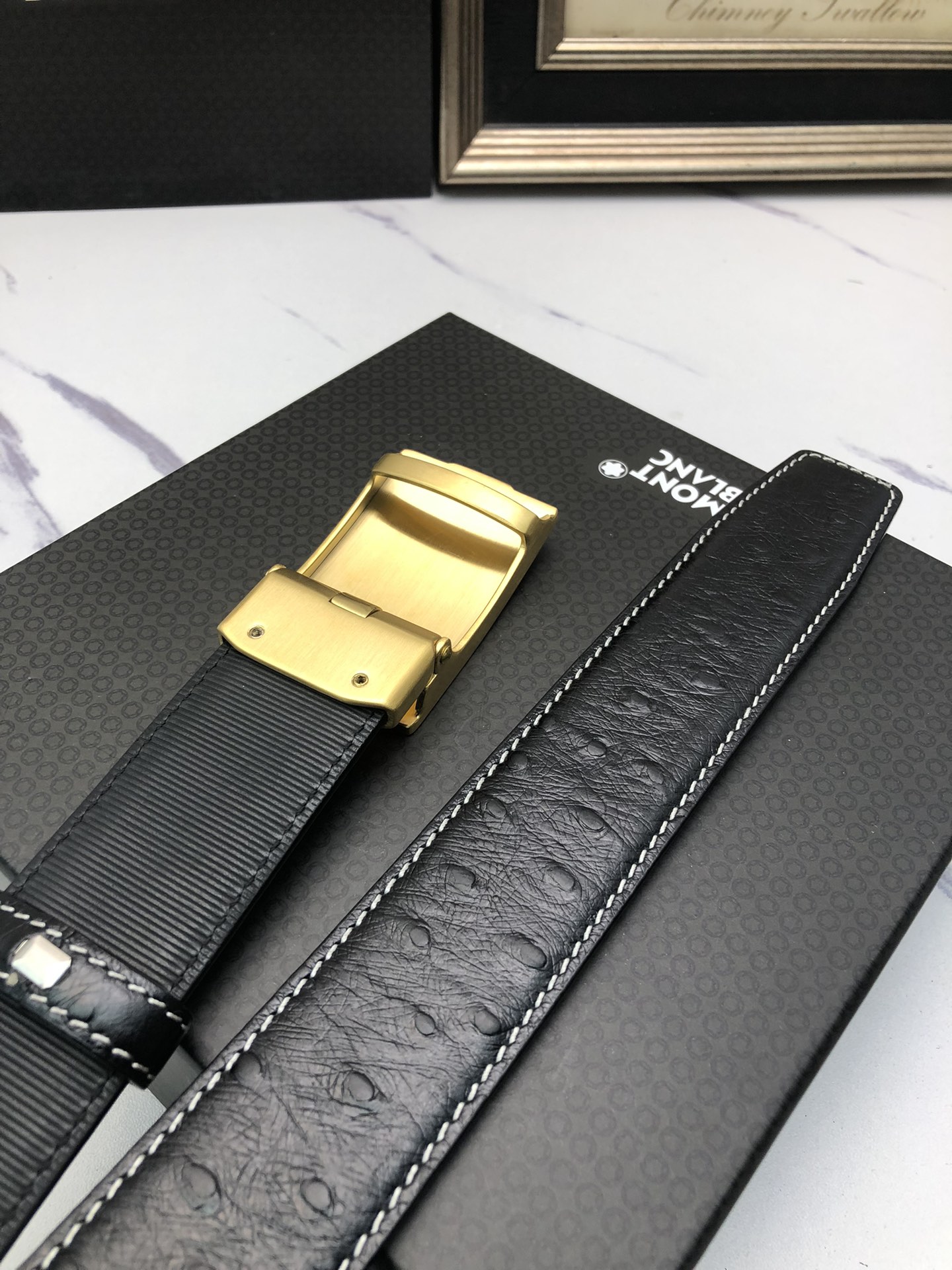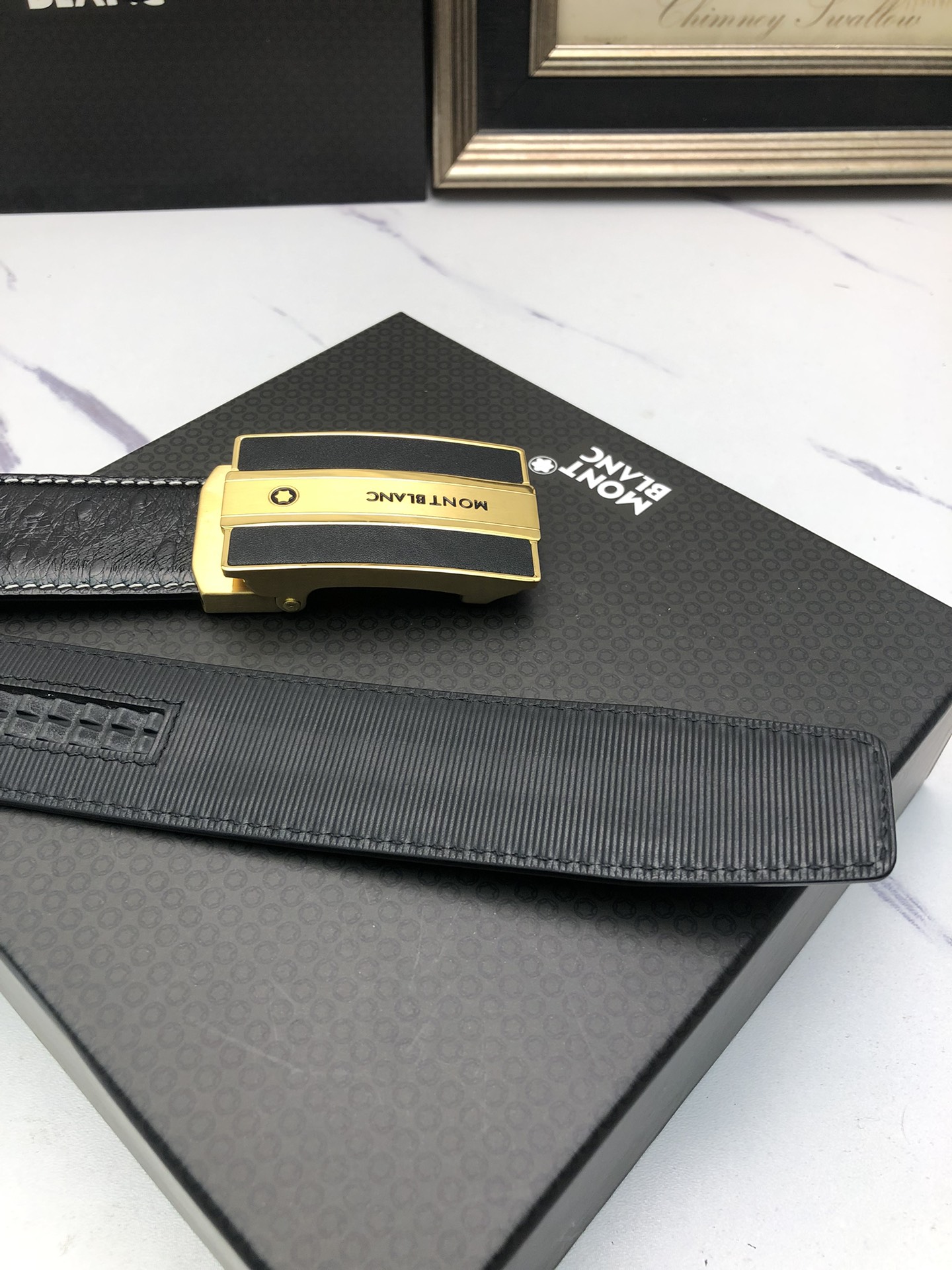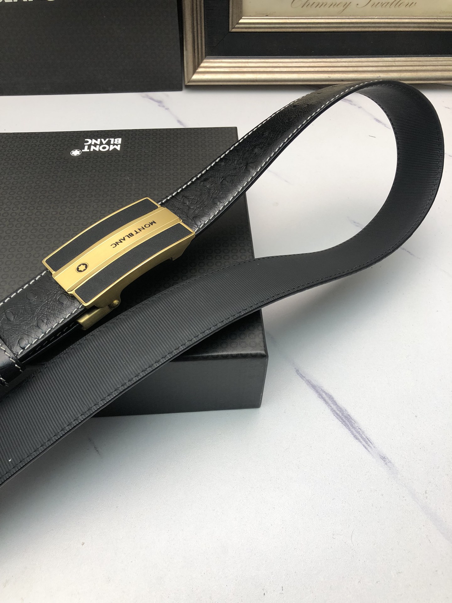 这款皮带是AAAAA 1:1 质量 (非常棒). 使用了和原版一模一样的材料. 商标部分也保持了和万宝龙/Montblanc一样. 图片拍摄是实物皮带拍摄, 您所收到的实物保证和我们图片一模一样.