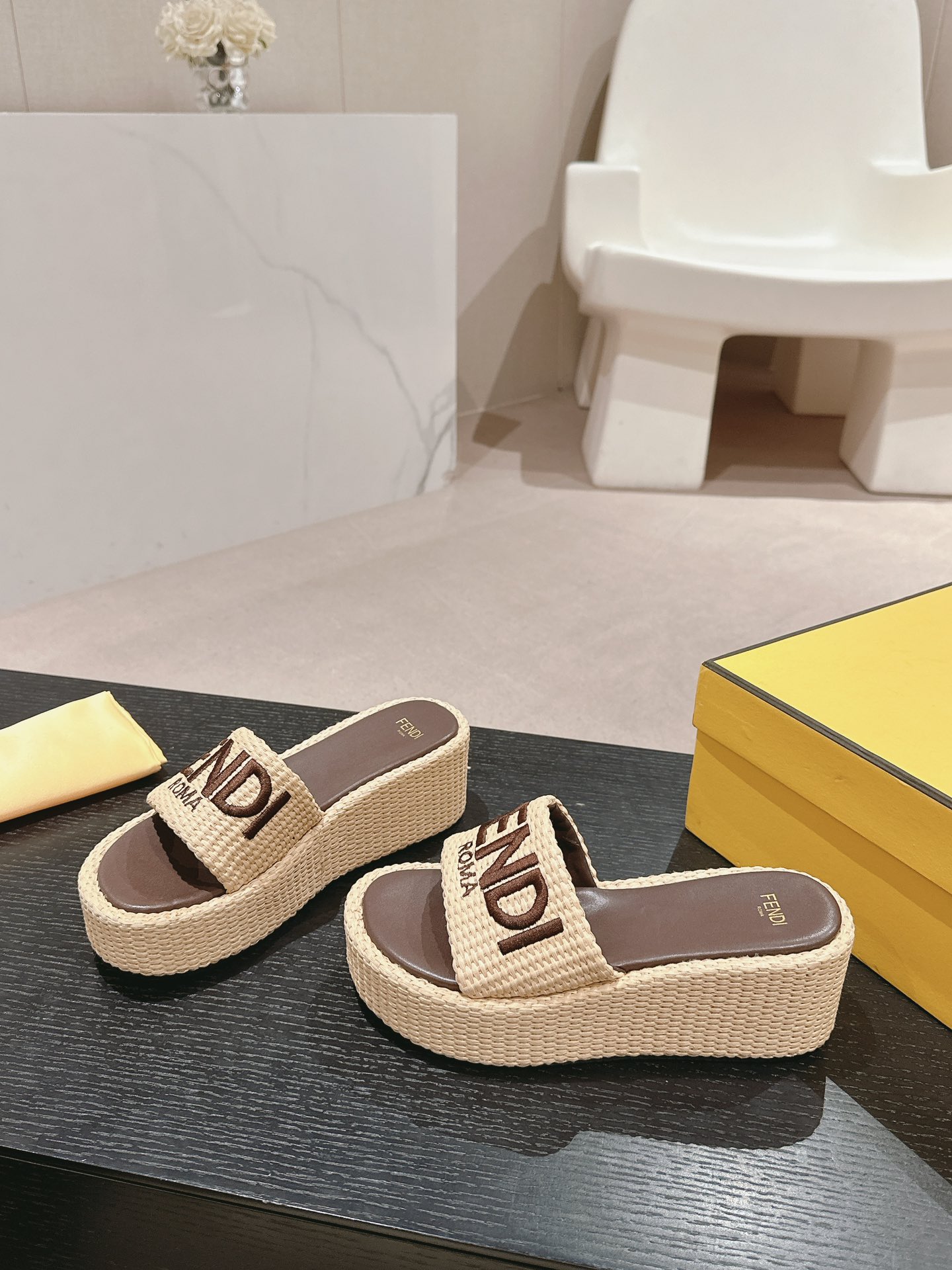 这款鞋子是AAAAA 1:1 质量 (非常棒). 使用了和原版一模一样的材料. 商标部分也保持了和芬迪/Fendi一样. 图片拍摄是实物鞋子拍摄, 您所收到的实物保证和我们图片一模一样.