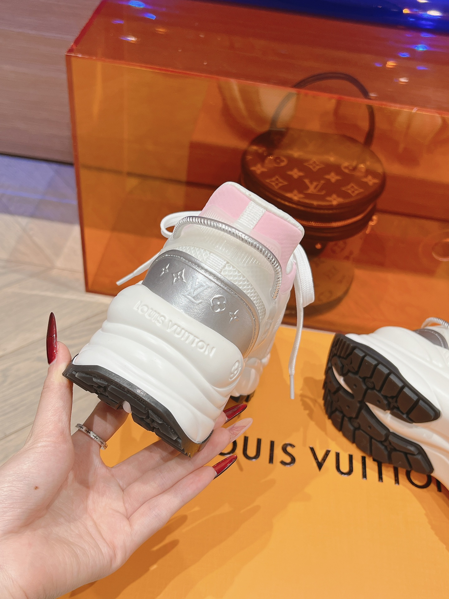 这款鞋子是AAAAA 1:1 质量 (非常棒). 使用了和原版一模一样的材料. 商标部分也保持了和路易威登/Louis Vuitton一样. 图片拍摄是实物鞋子拍摄, 您所收到的实物保证和我们图片一模一样.