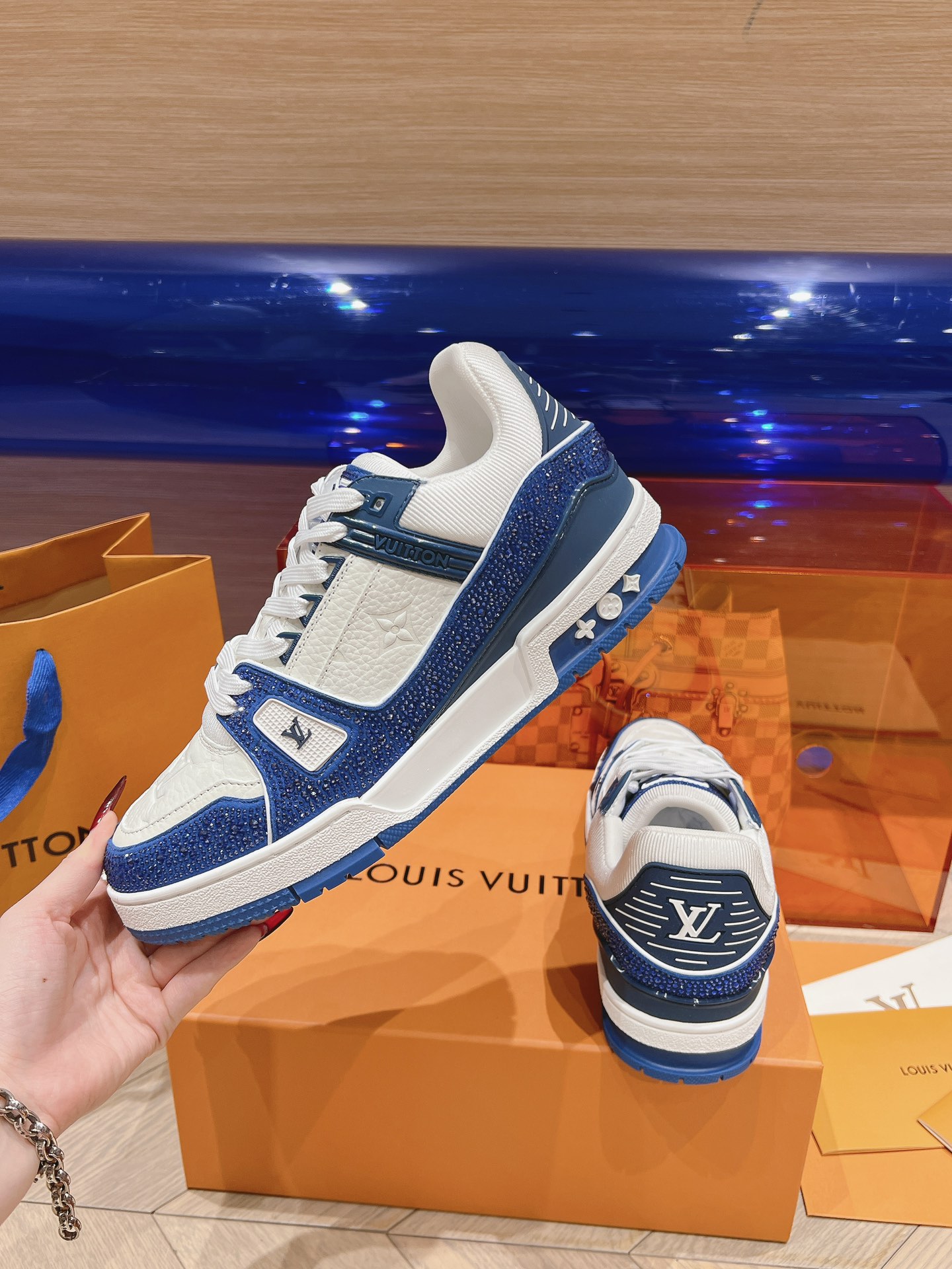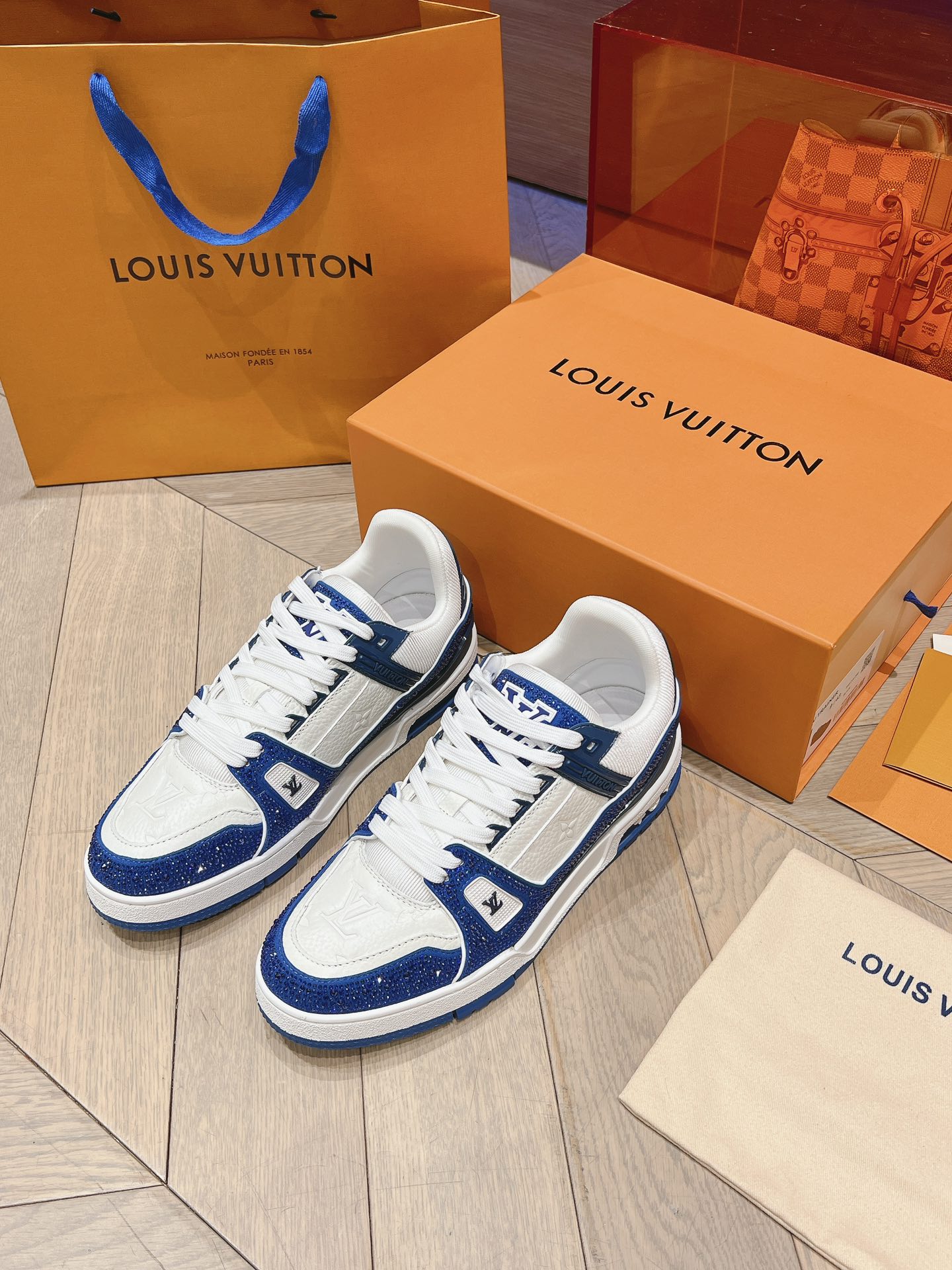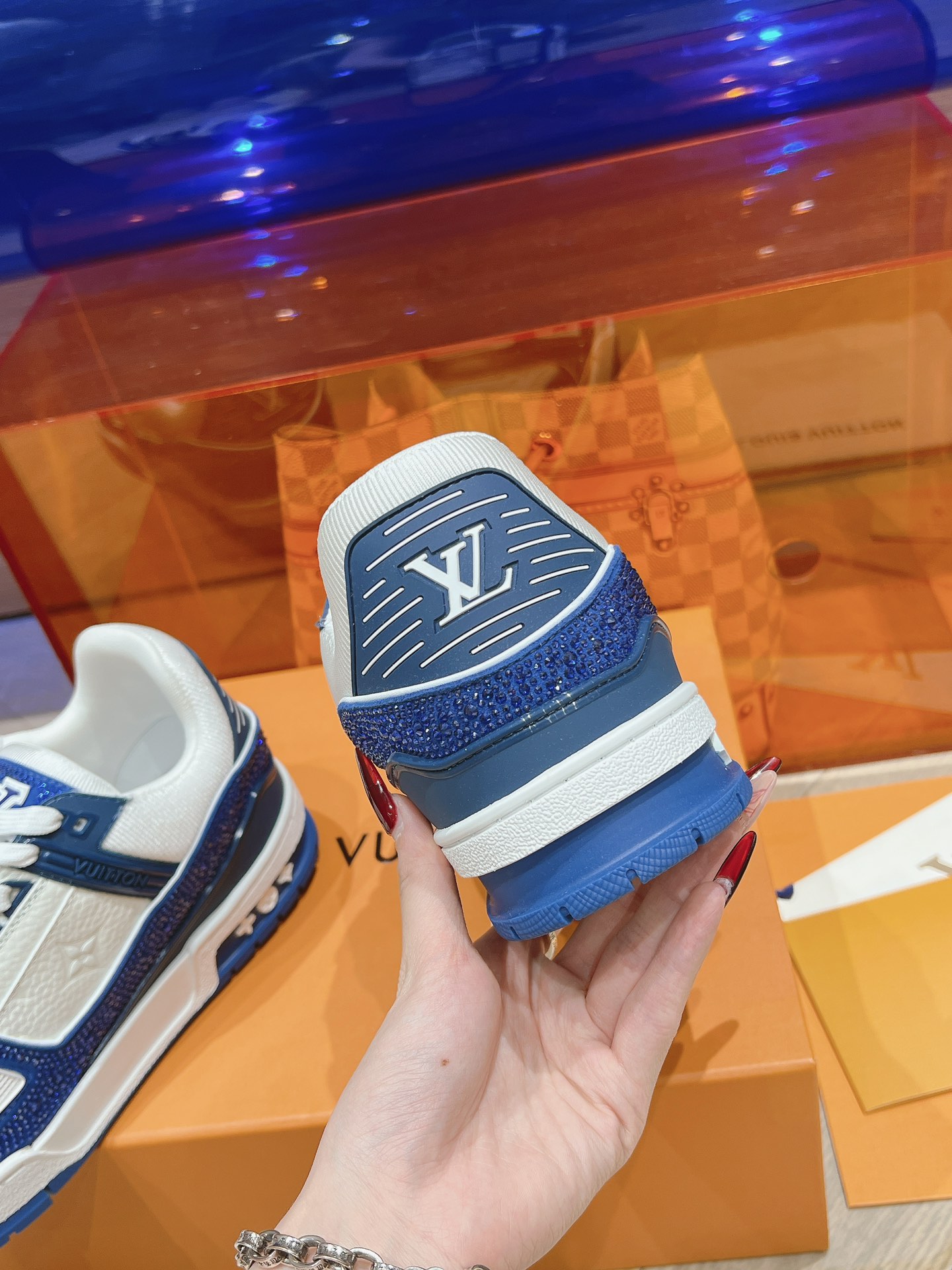 这款鞋子是AAAAA 1:1 质量 (非常棒). 使用了和原版一模一样的材料. 商标部分也保持了和路易威登/Louis Vuitton一样. 图片拍摄是实物鞋子拍摄, 您所收到的实物保证和我们图片一模一样.