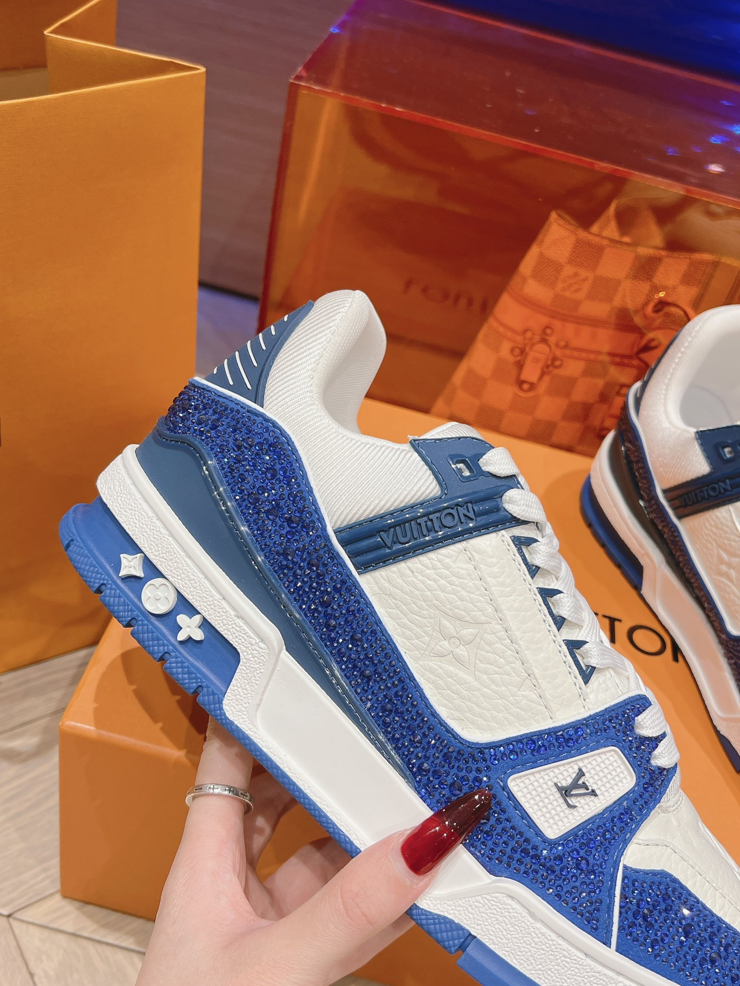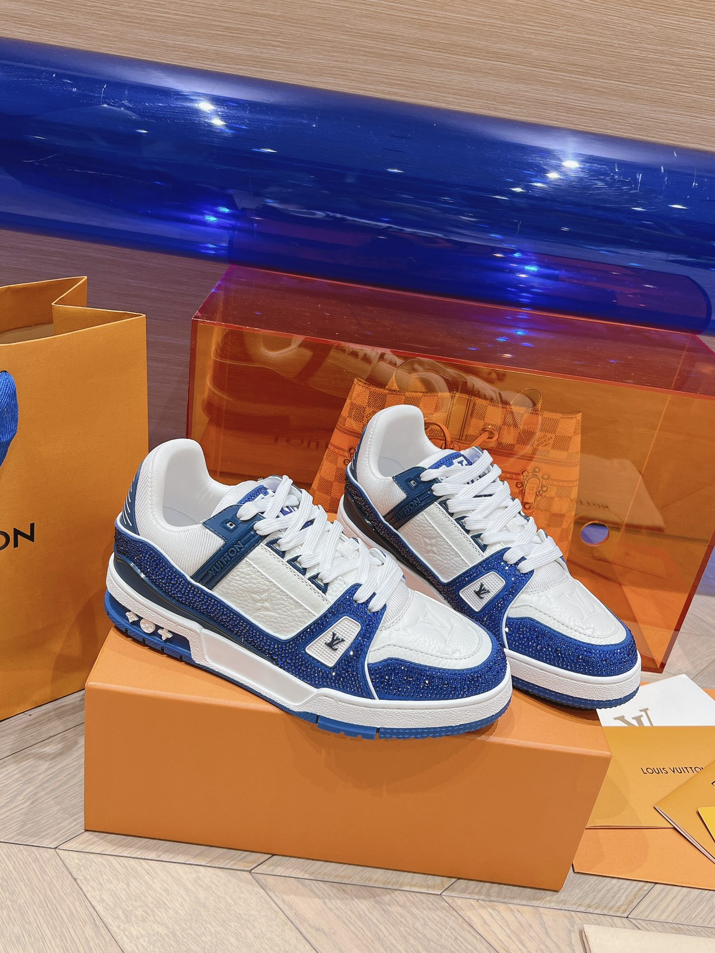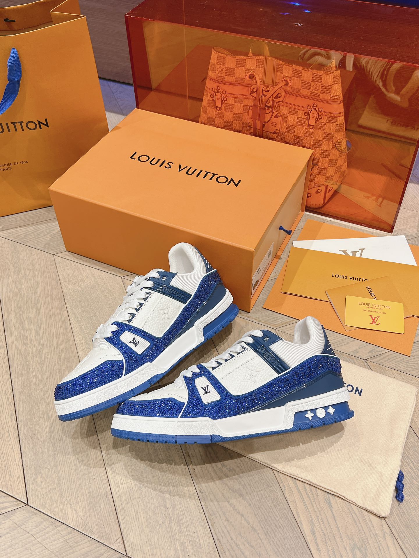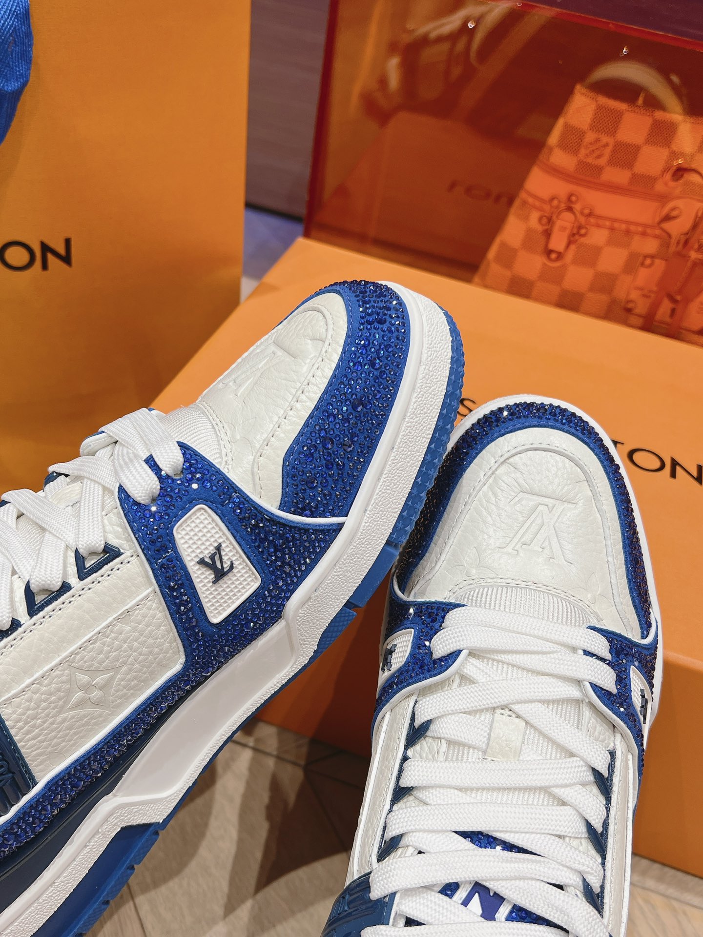 这款鞋子是AAAAA 1:1 质量 (非常棒). 使用了和原版一模一样的材料. 商标部分也保持了和路易威登/Louis Vuitton一样. 图片拍摄是实物鞋子拍摄, 您所收到的实物保证和我们图片一模一样.