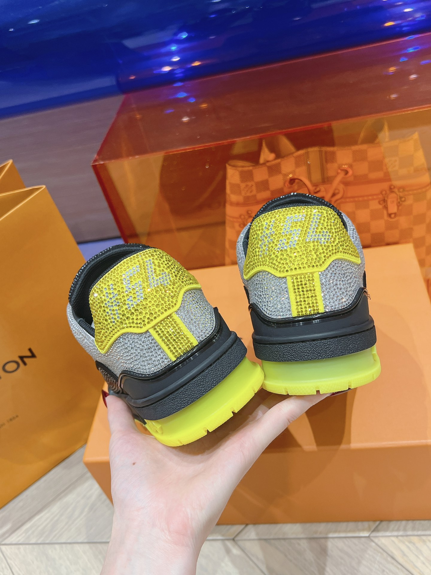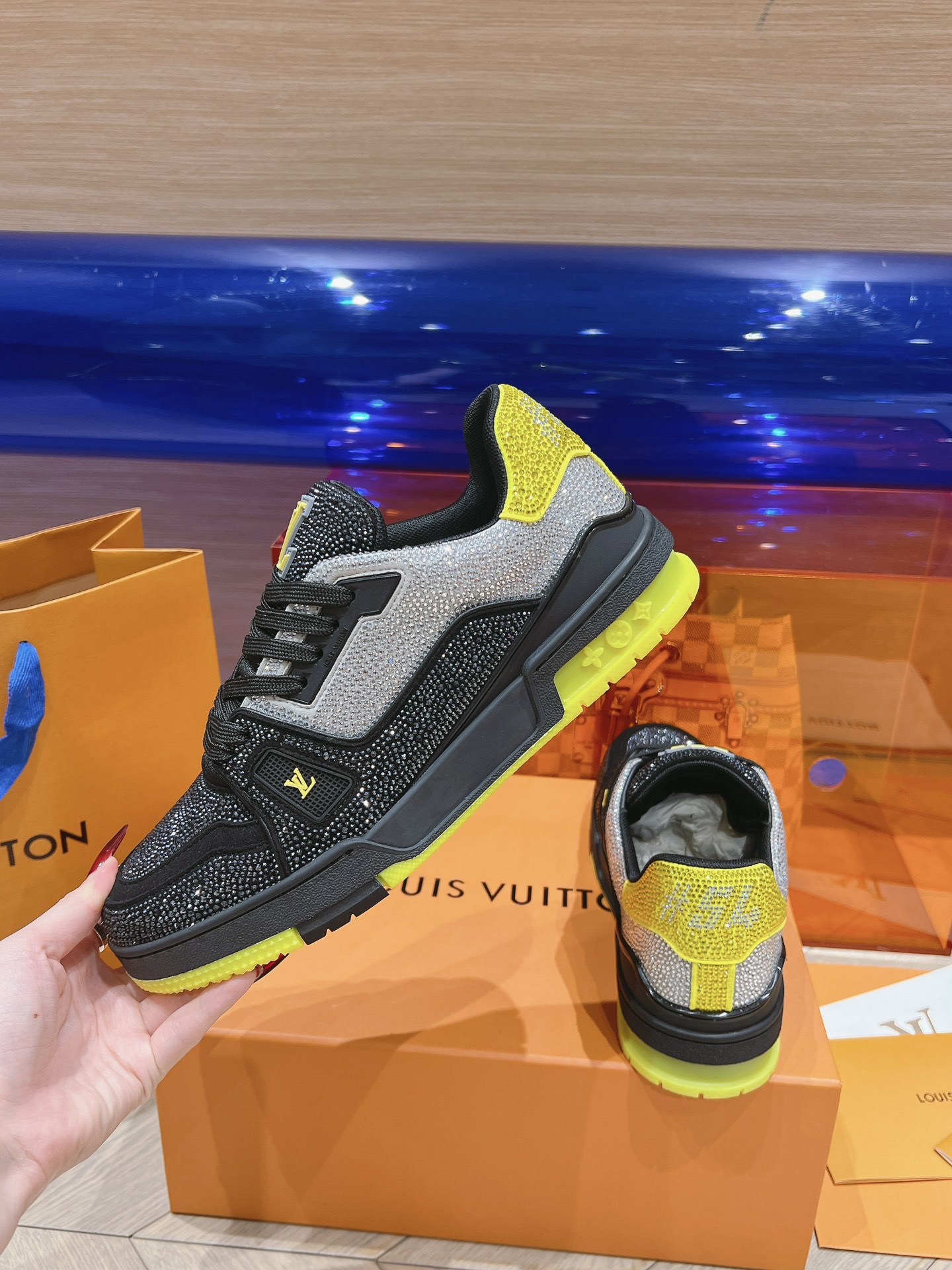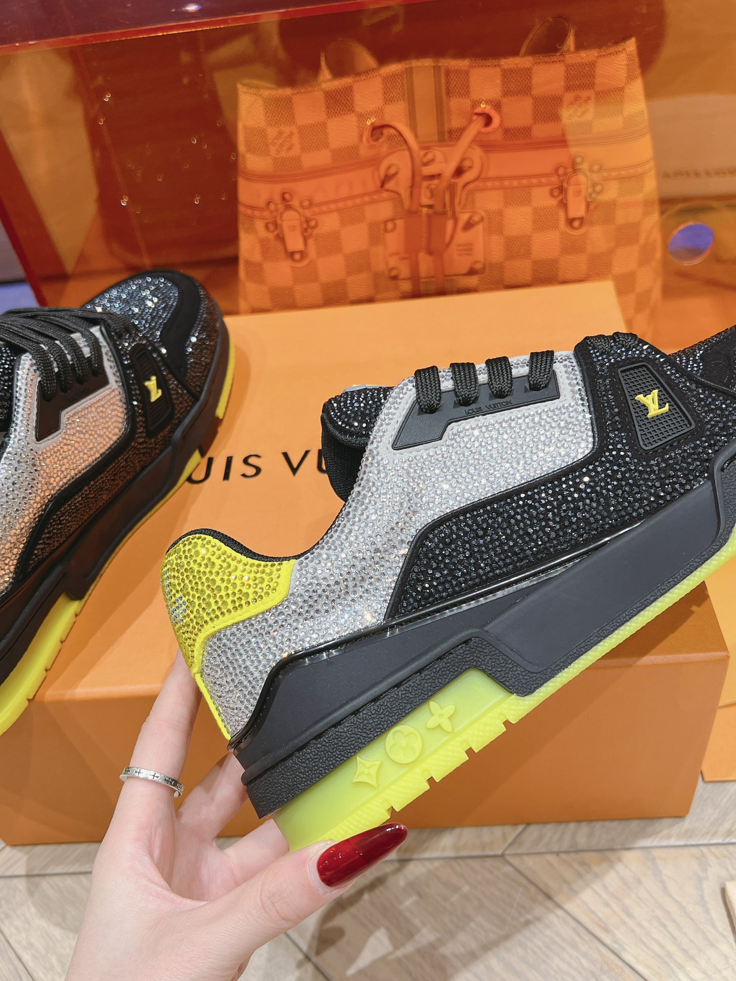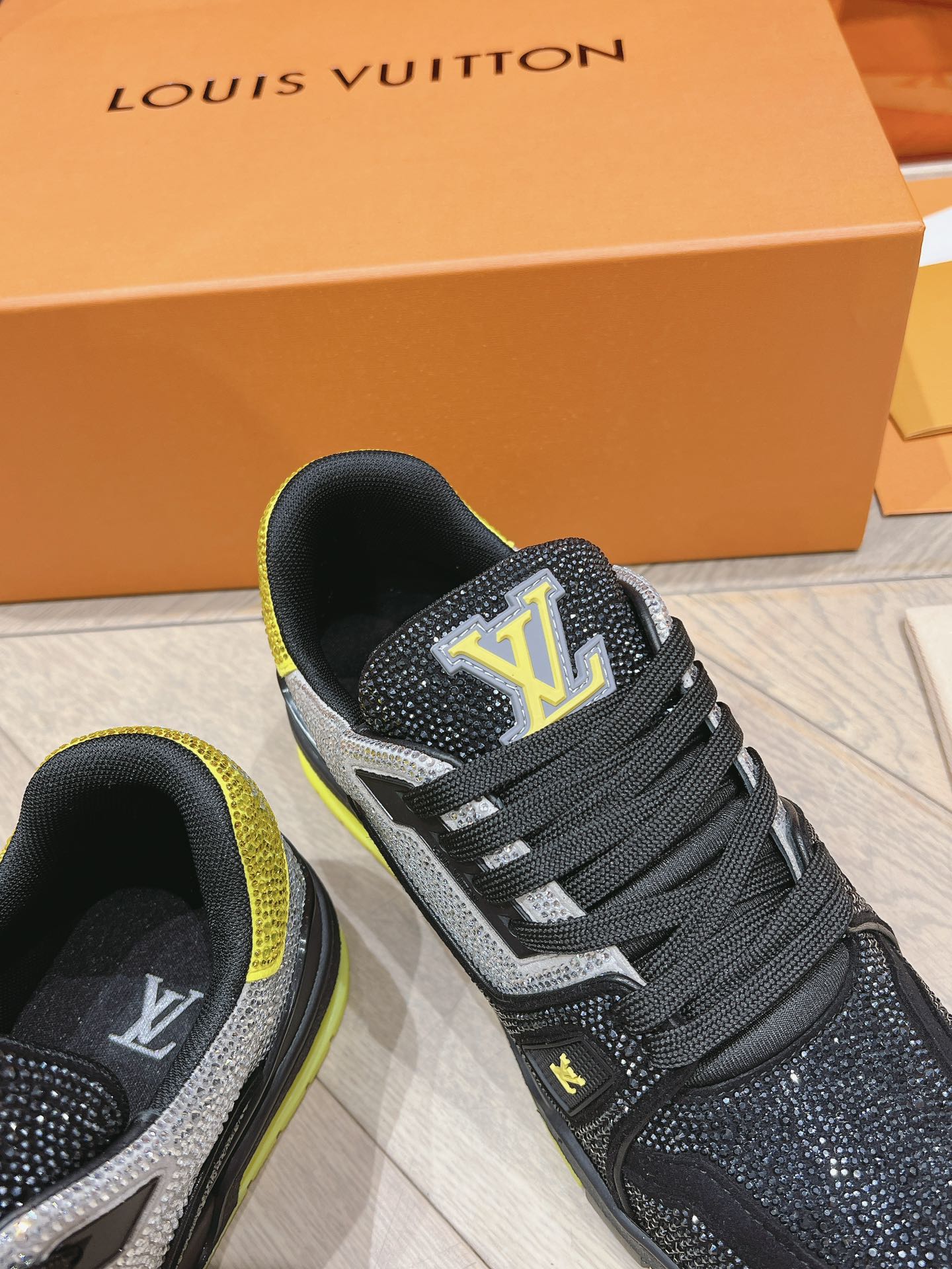 这款鞋子是AAAAA 1:1 质量 (非常棒). 使用了和原版一模一样的材料. 商标部分也保持了和路易威登/Louis Vuitton一样. 图片拍摄是实物鞋子拍摄, 您所收到的实物保证和我们图片一模一样.