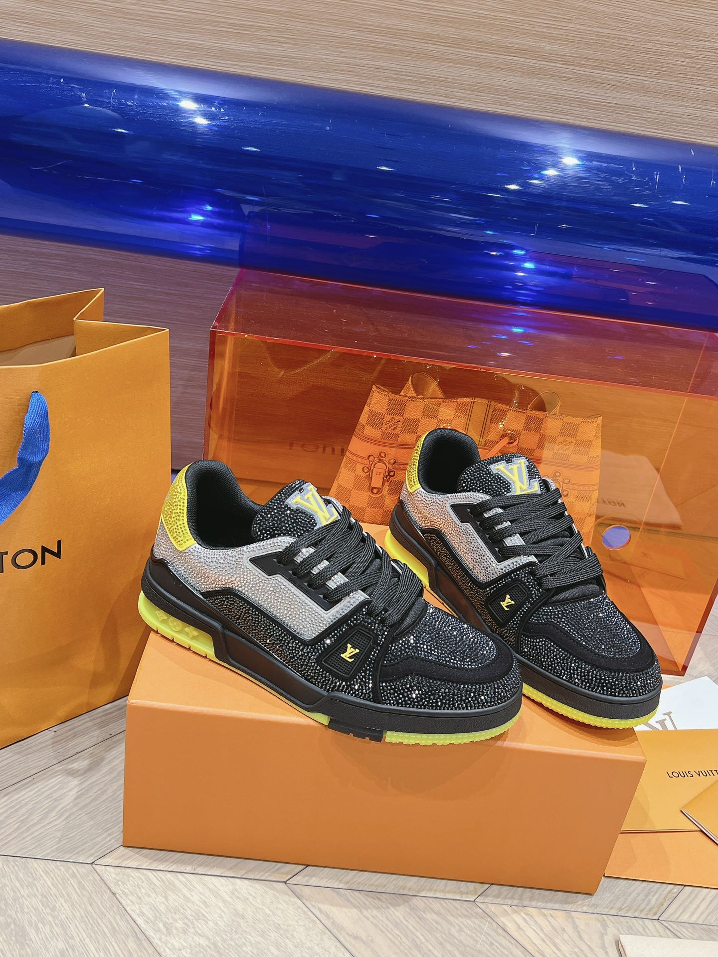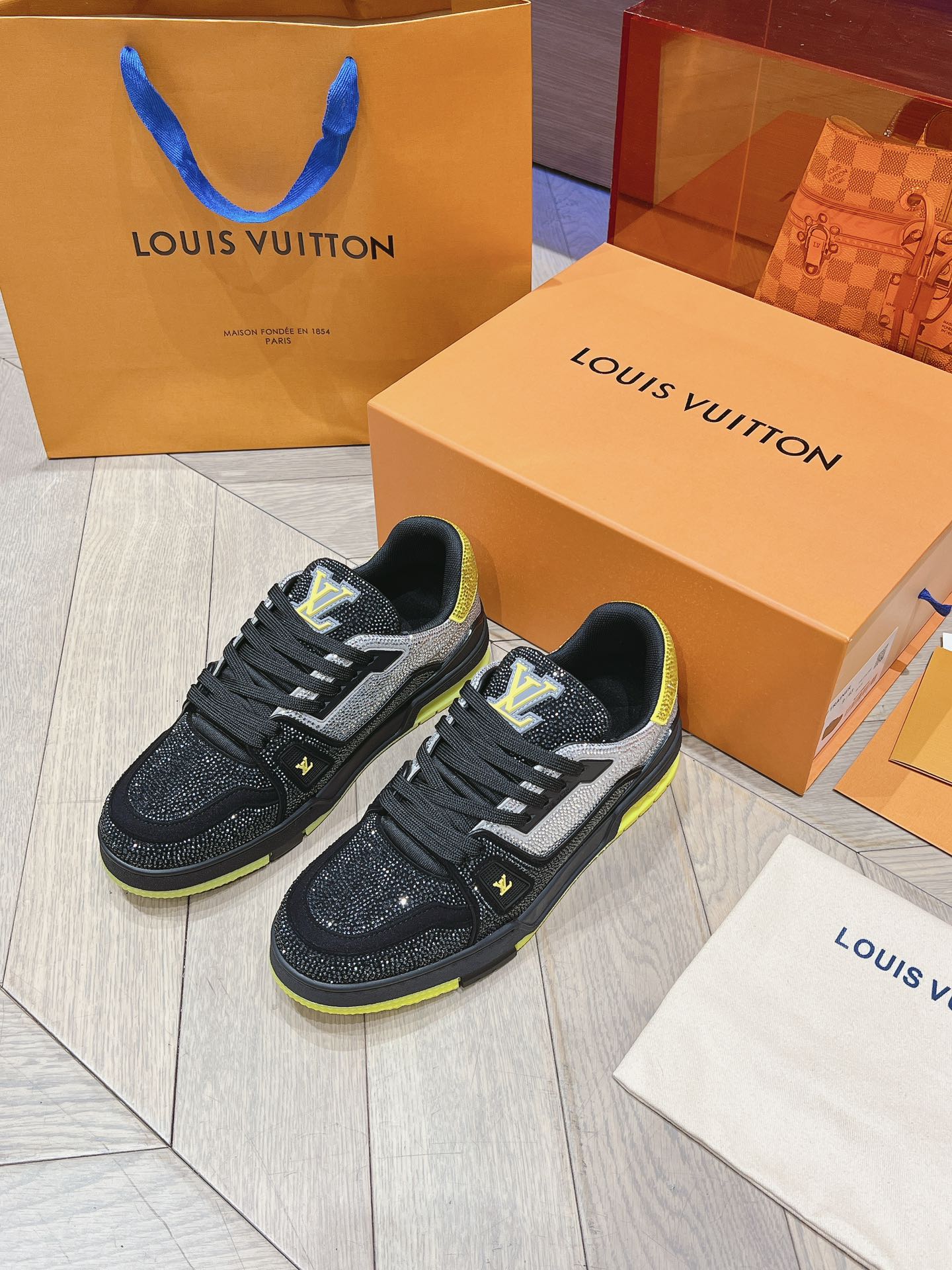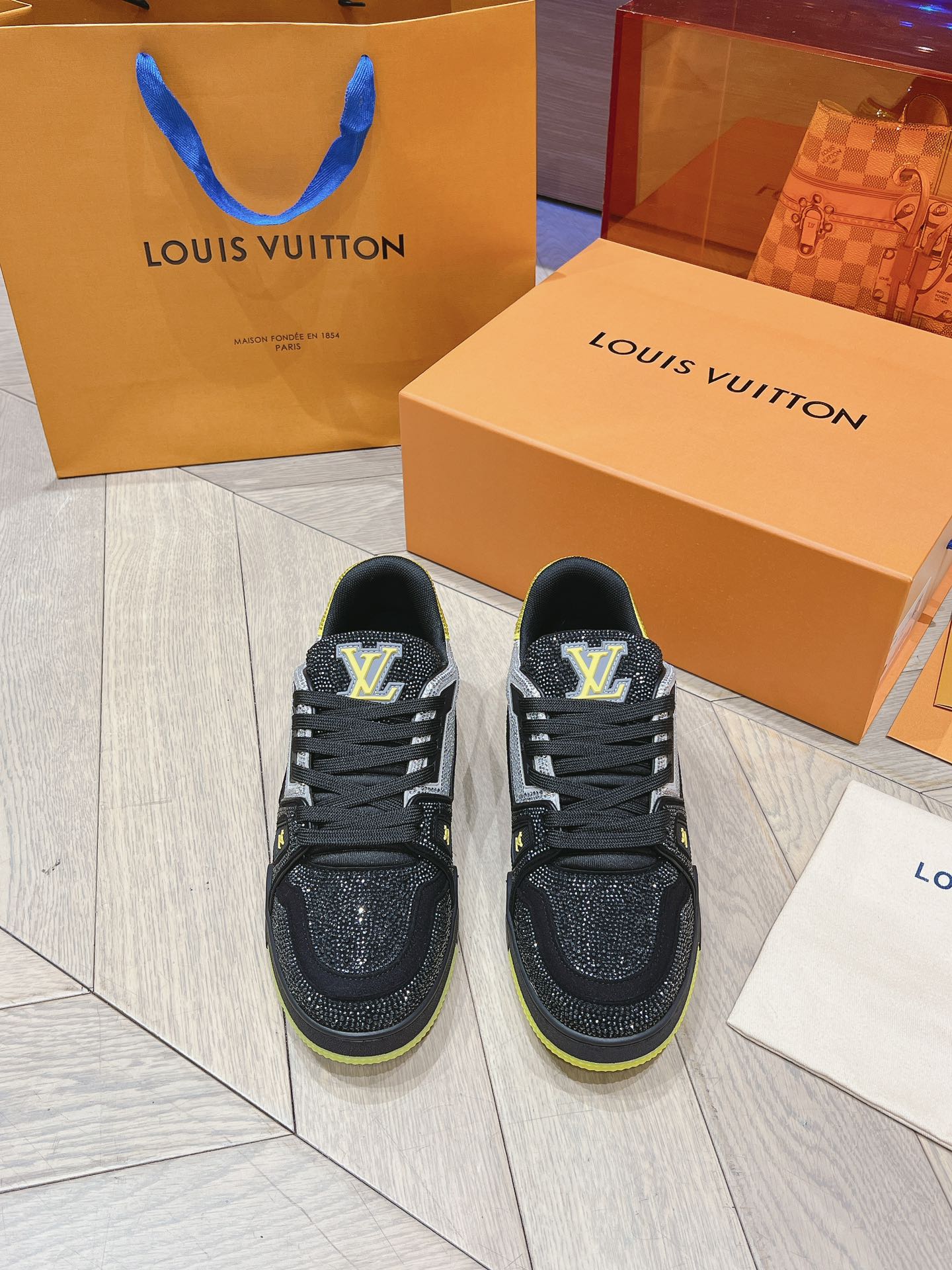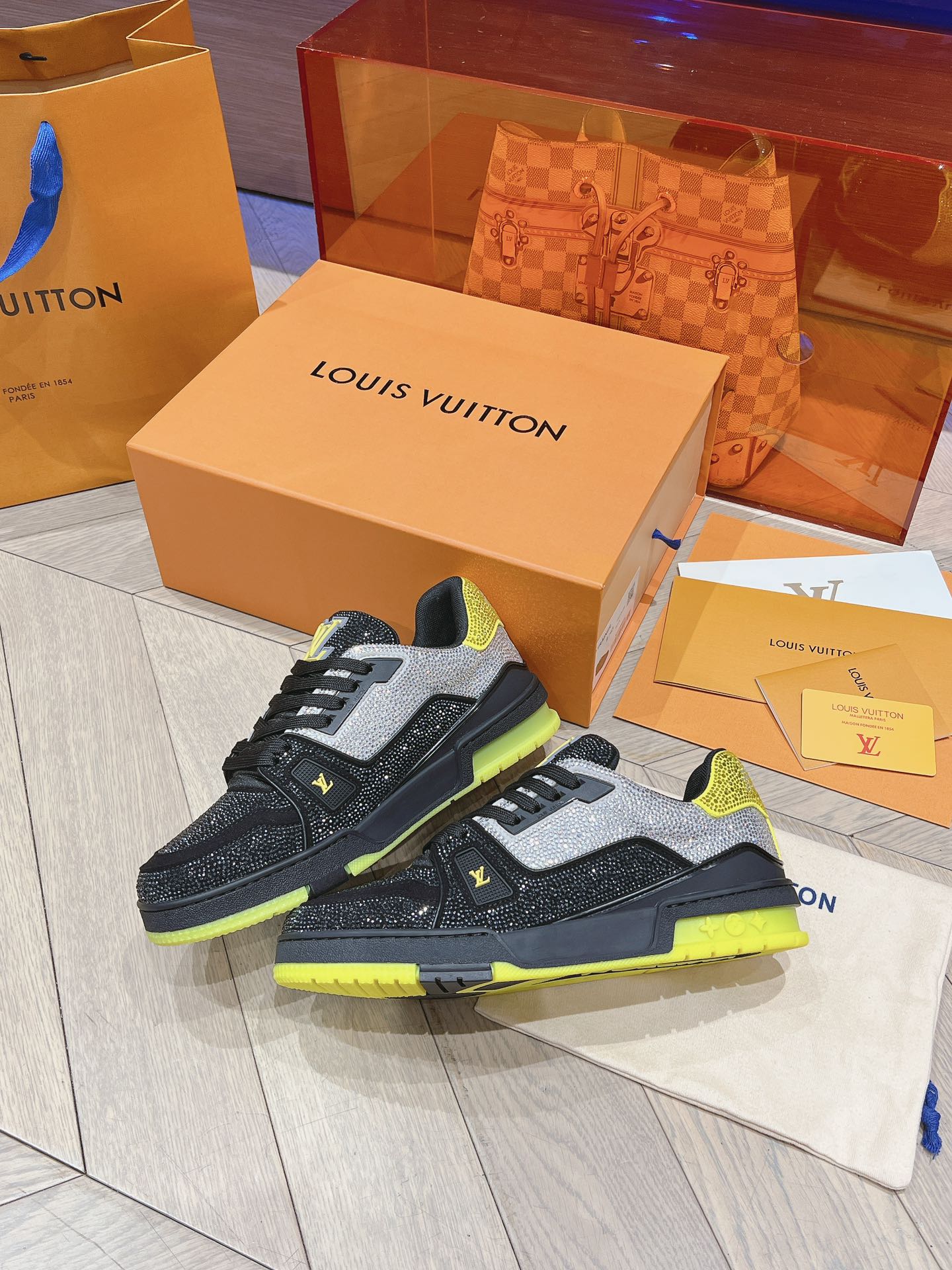 这款鞋子是AAAAA 1:1 质量 (非常棒). 使用了和原版一模一样的材料. 商标部分也保持了和路易威登/Louis Vuitton一样. 图片拍摄是实物鞋子拍摄, 您所收到的实物保证和我们图片一模一样.