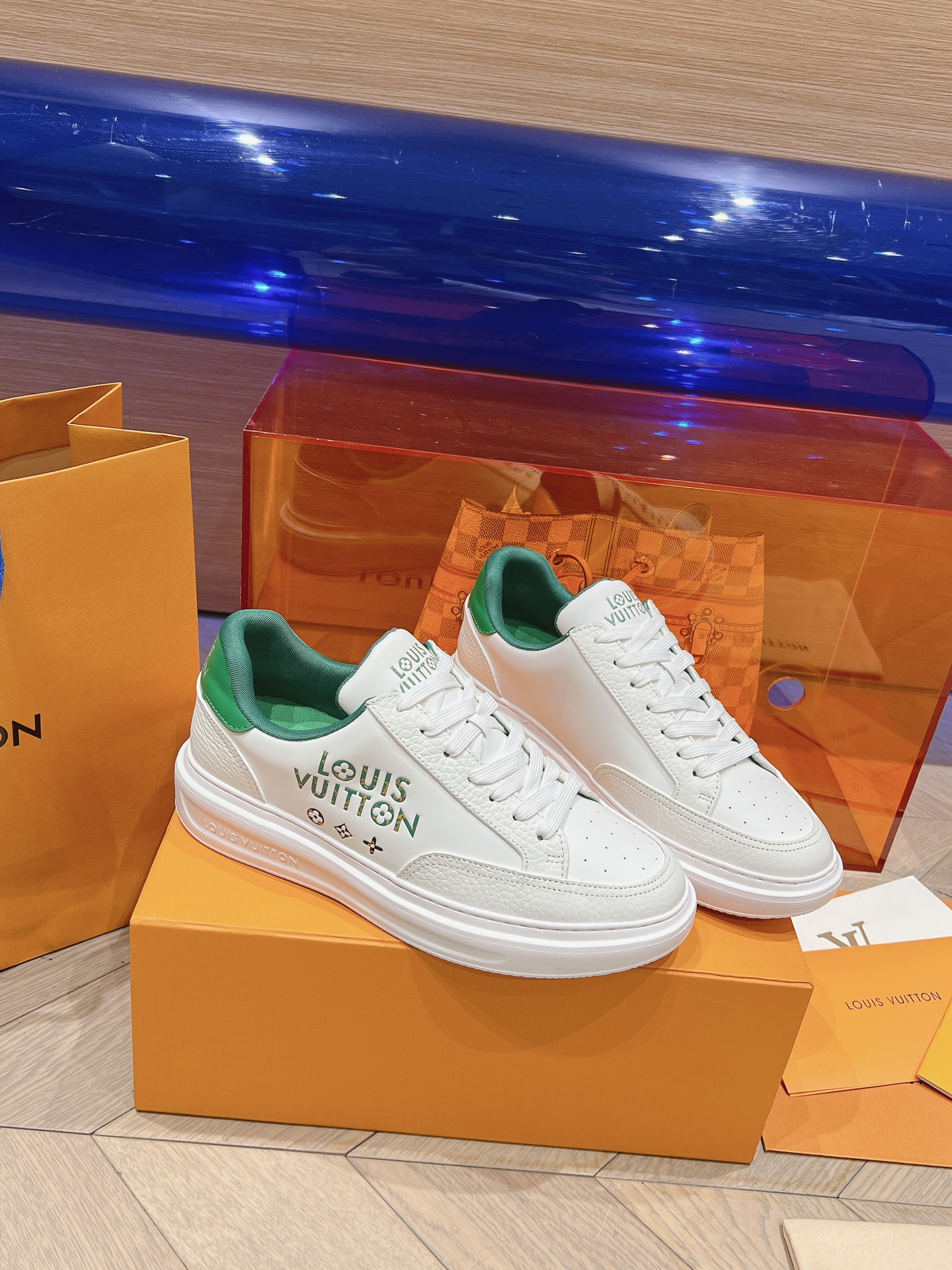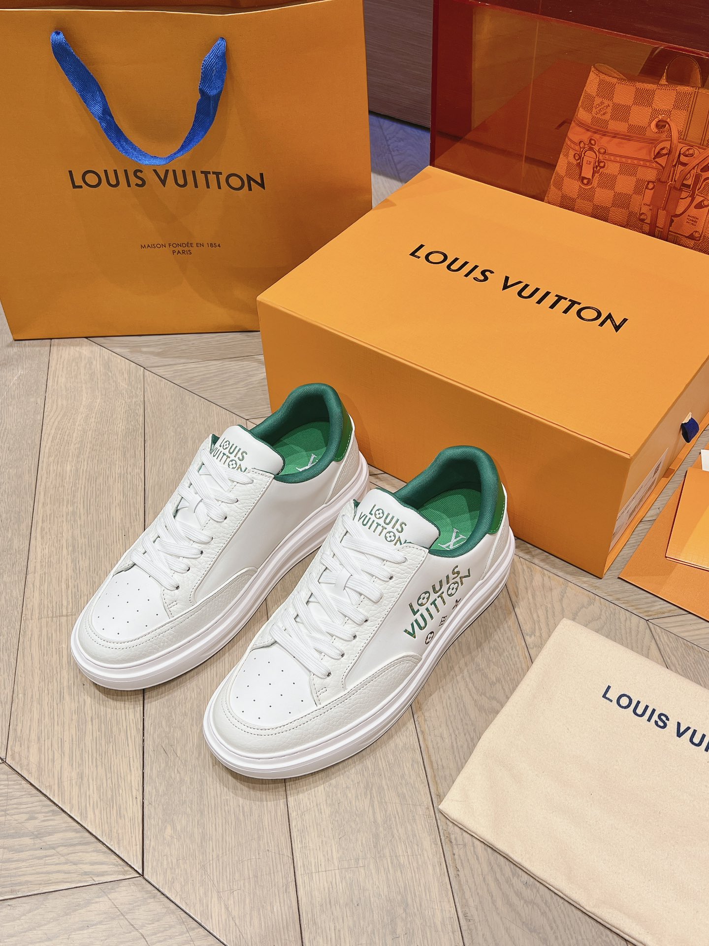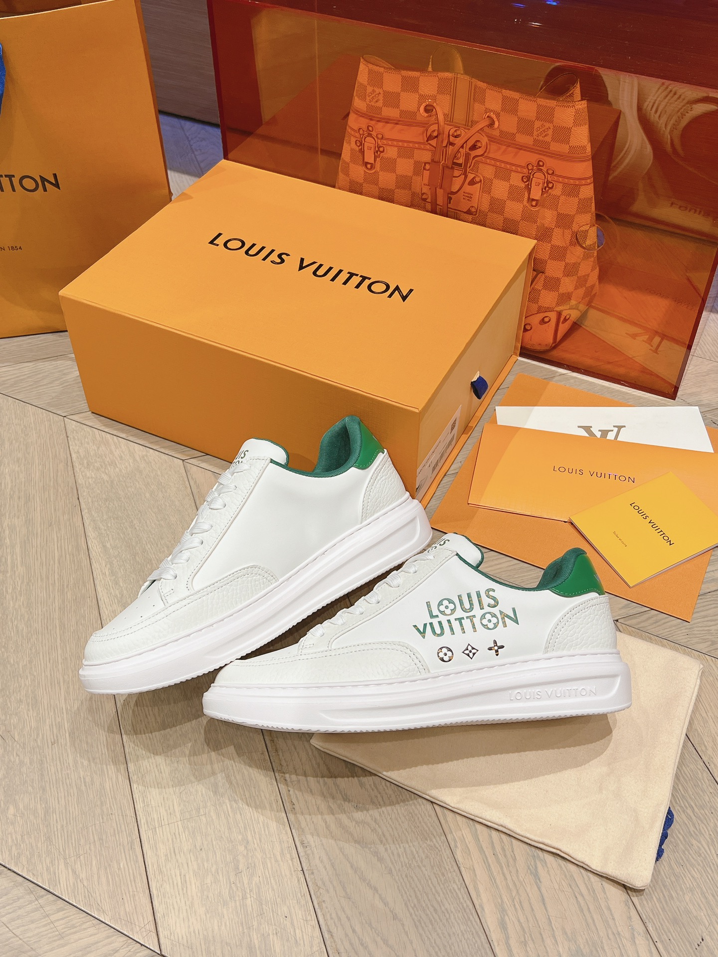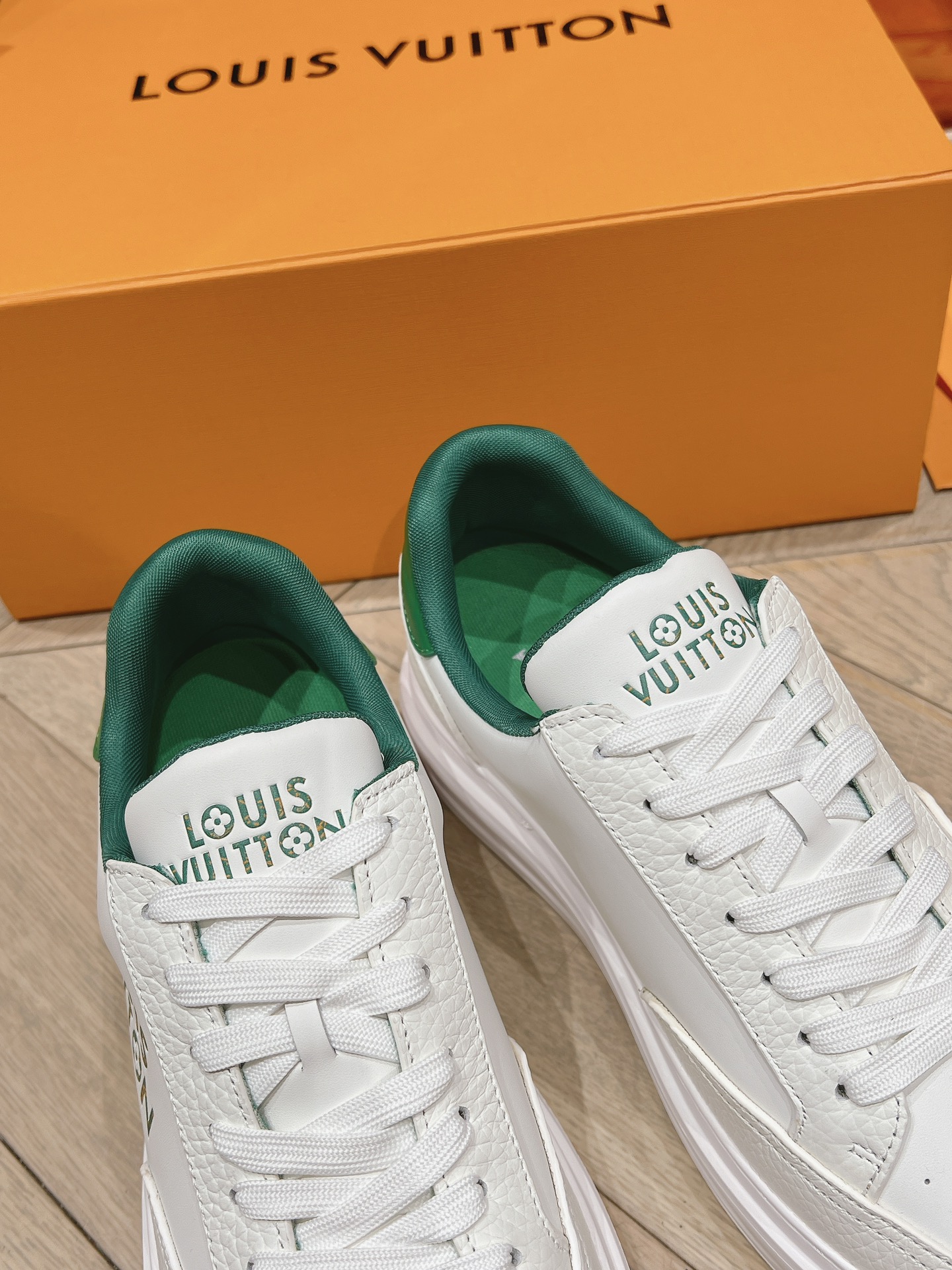 这款鞋子是AAAAA 1:1 质量 (非常棒). 使用了和原版一模一样的材料. 商标部分也保持了和路易威登/Louis Vuitton一样. 图片拍摄是实物鞋子拍摄, 您所收到的实物保证和我们图片一模一样.