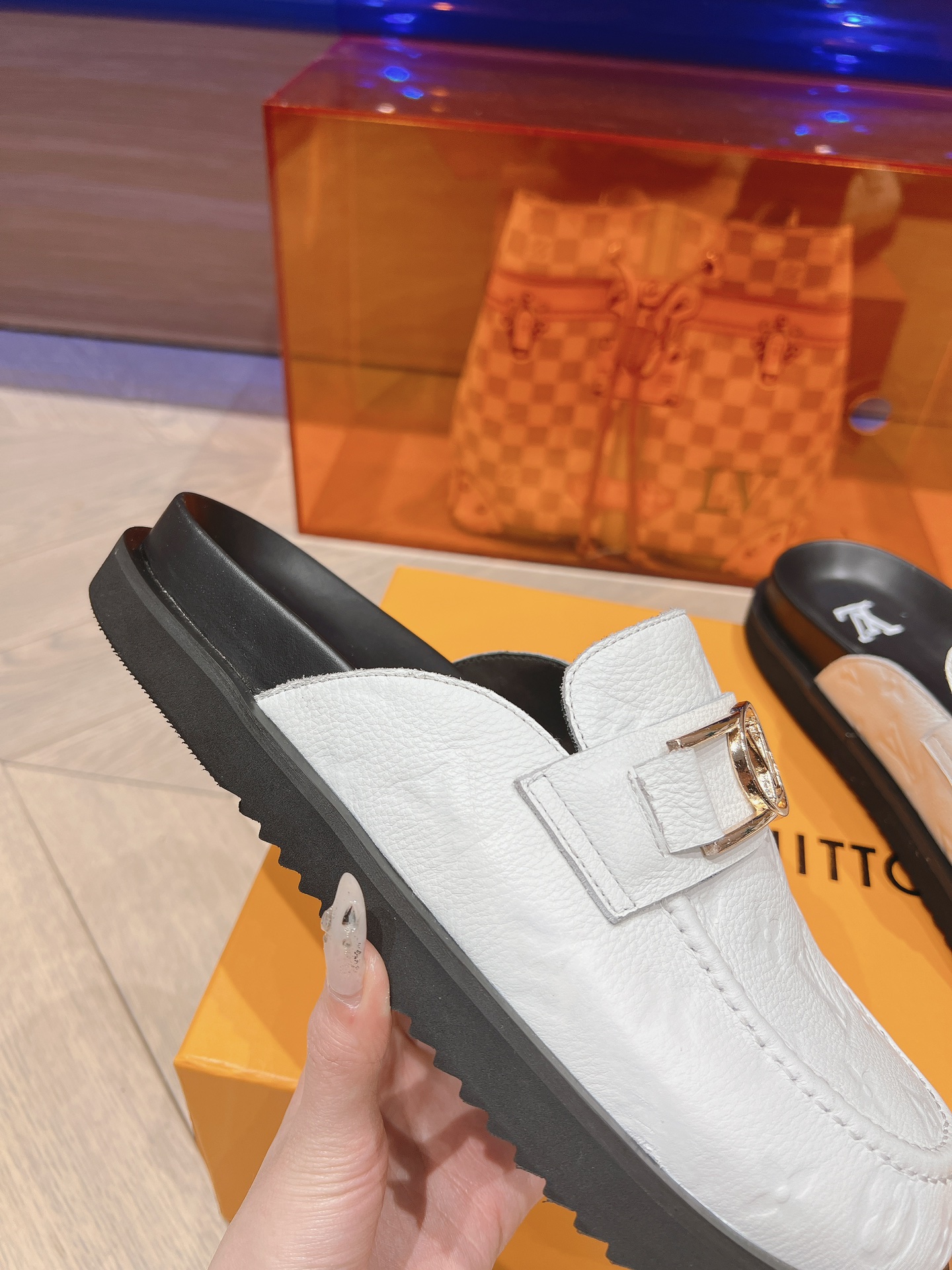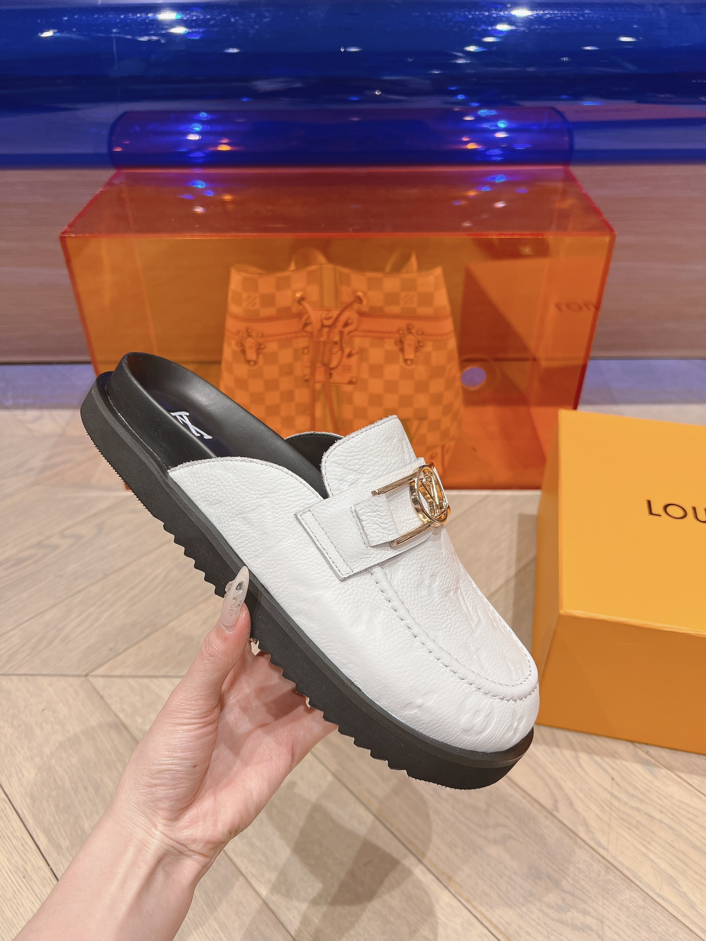这款鞋子是AAAAA 1:1 质量 (非常棒). 使用了和原版一模一样的材料. 商标部分也保持了和路易威登/Louis Vuitton一样. 图片拍摄是实物鞋子拍摄, 您所收到的实物保证和我们图片一模一样.
