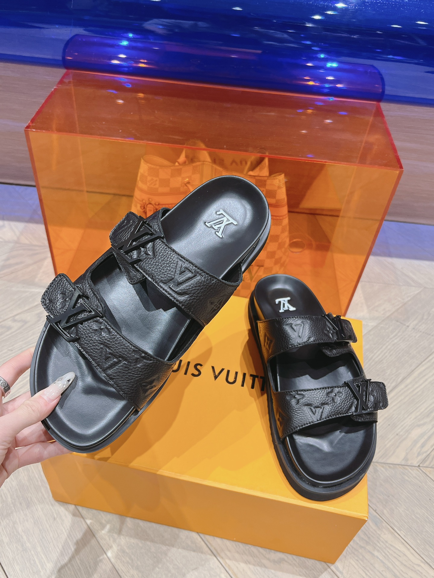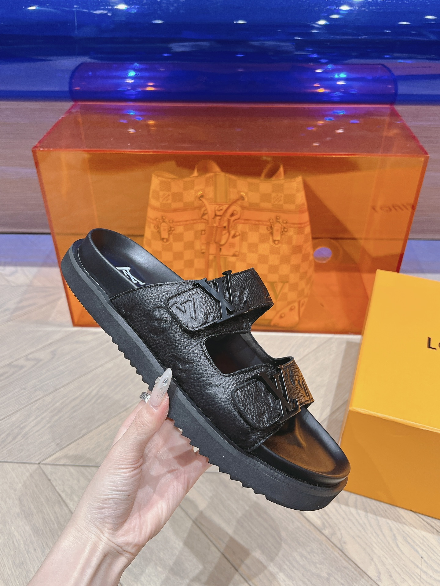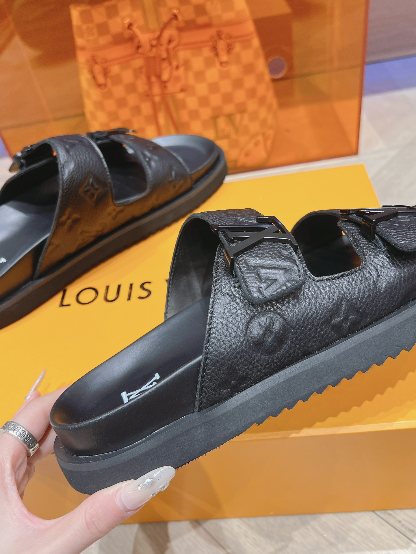 这款鞋子是AAAAA 1:1 质量 (非常棒). 使用了和原版一模一样的材料. 商标部分也保持了和路易威登/Louis Vuitton一样. 图片拍摄是实物鞋子拍摄, 您所收到的实物保证和我们图片一模一样.