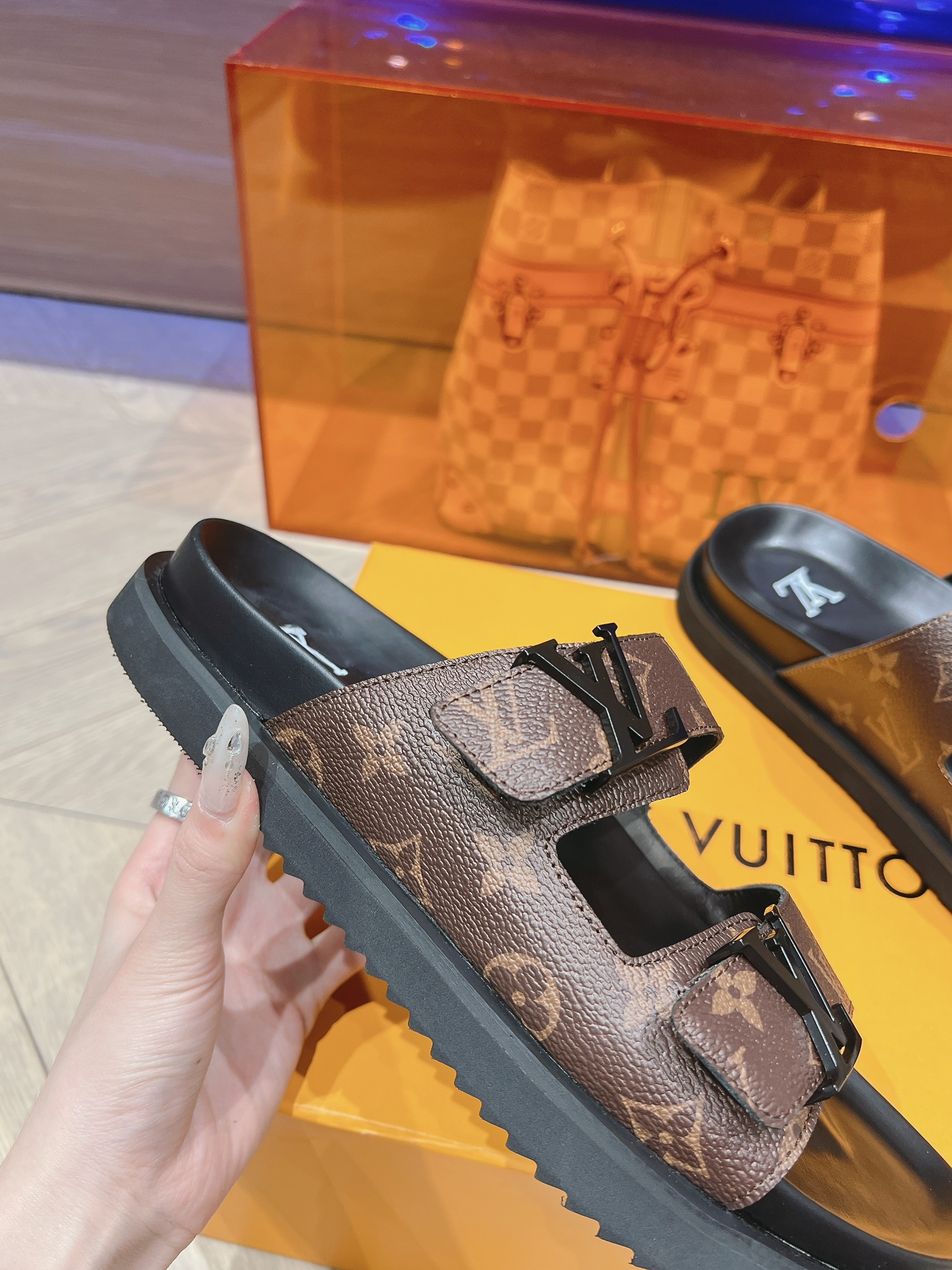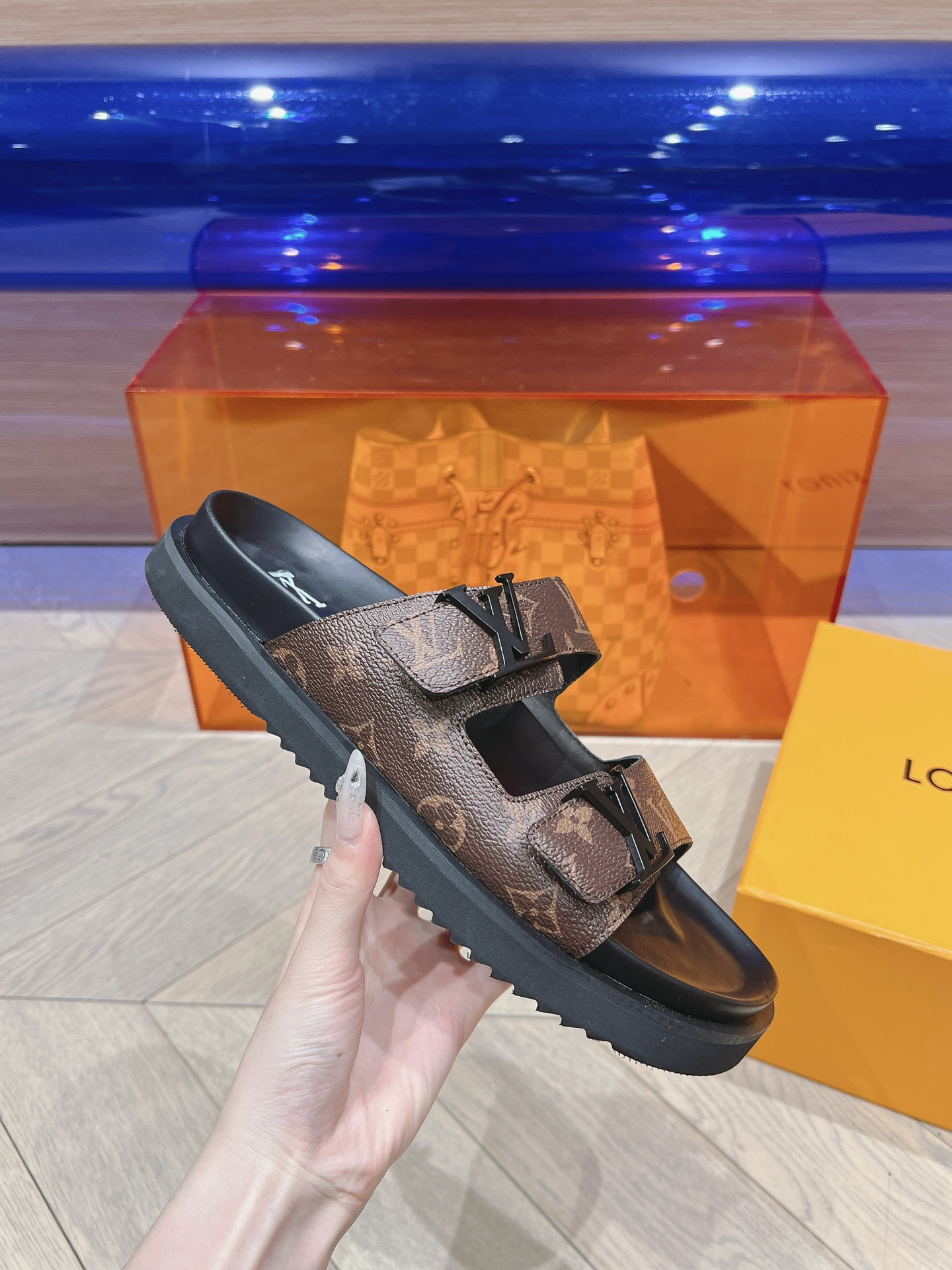 这款鞋子是AAAAA 1:1 质量 (非常棒). 使用了和原版一模一样的材料. 商标部分也保持了和路易威登/Louis Vuitton一样. 图片拍摄是实物鞋子拍摄, 您所收到的实物保证和我们图片一模一样.