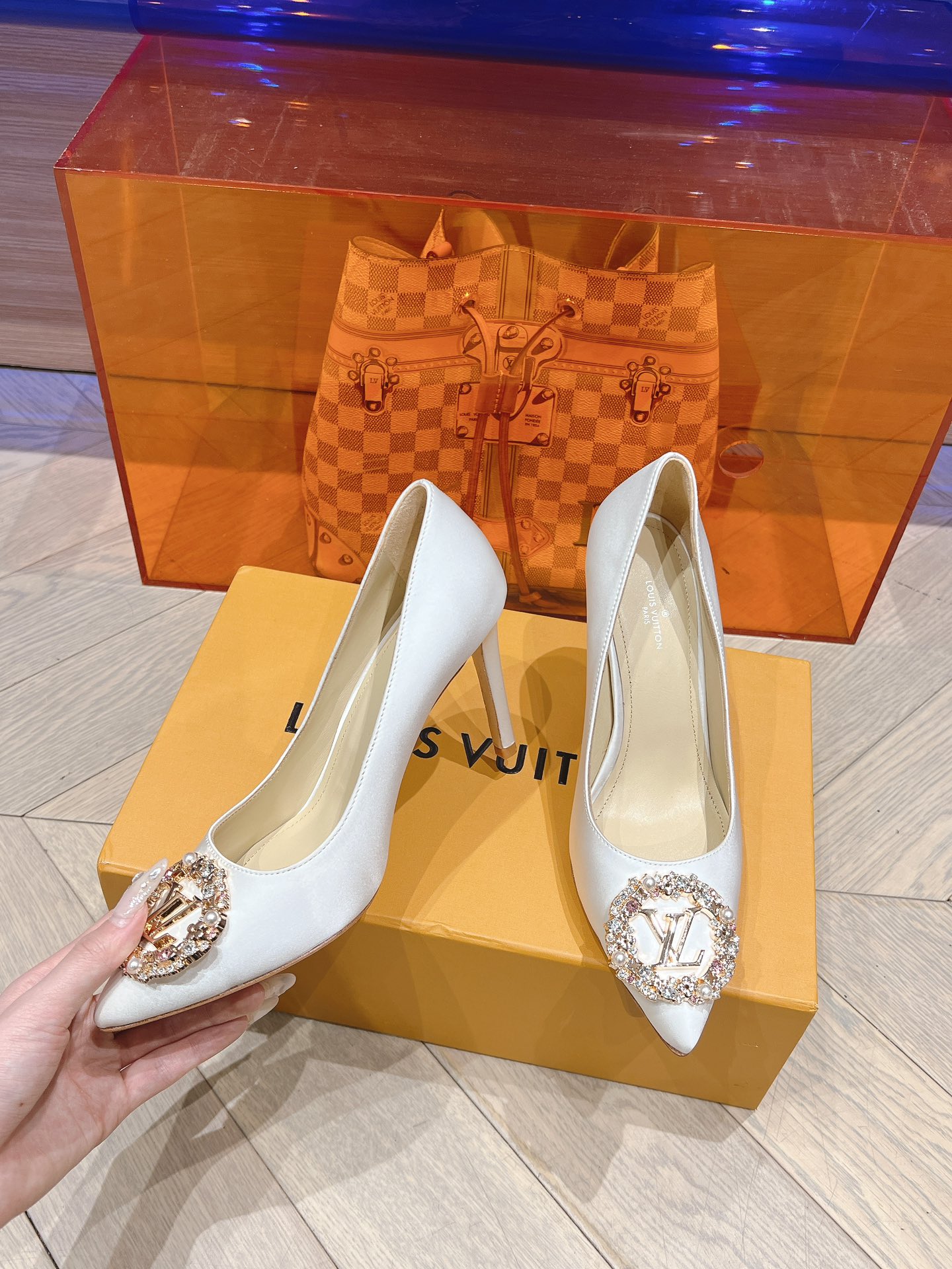 这款鞋子是AAAAA 1:1 质量 (非常棒). 使用了和原版一模一样的材料. 商标部分也保持了和路易威登/Louis Vuitton一样. 图片拍摄是实物鞋子拍摄, 您所收到的实物保证和我们图片一模一样.