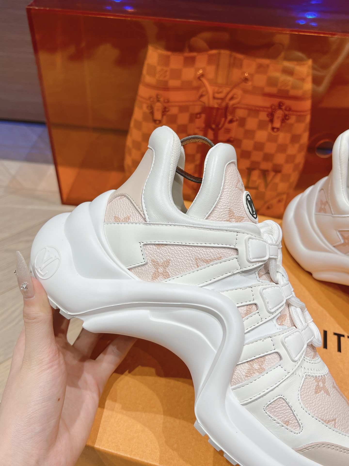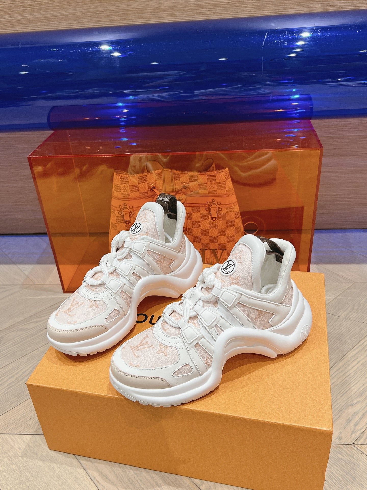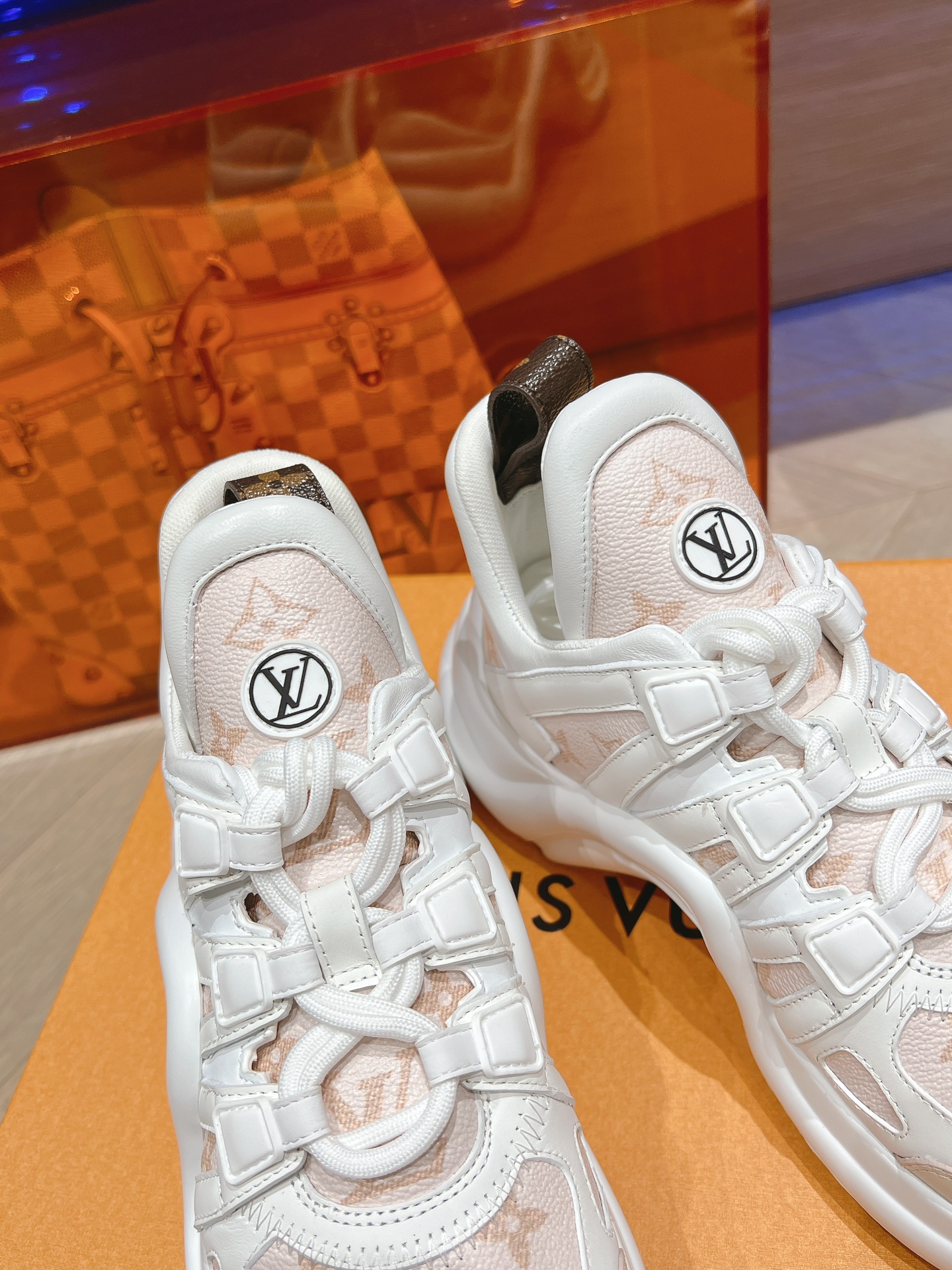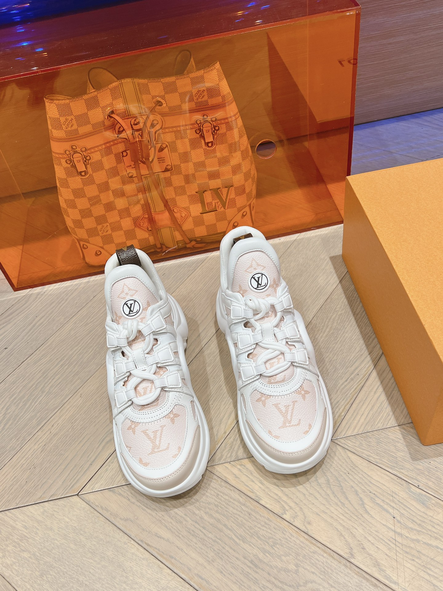 这款鞋子是AAAAA 1:1 质量 (非常棒). 使用了和原版一模一样的材料. 商标部分也保持了和路易威登/Louis Vuitton一样. 图片拍摄是实物鞋子拍摄, 您所收到的实物保证和我们图片一模一样.