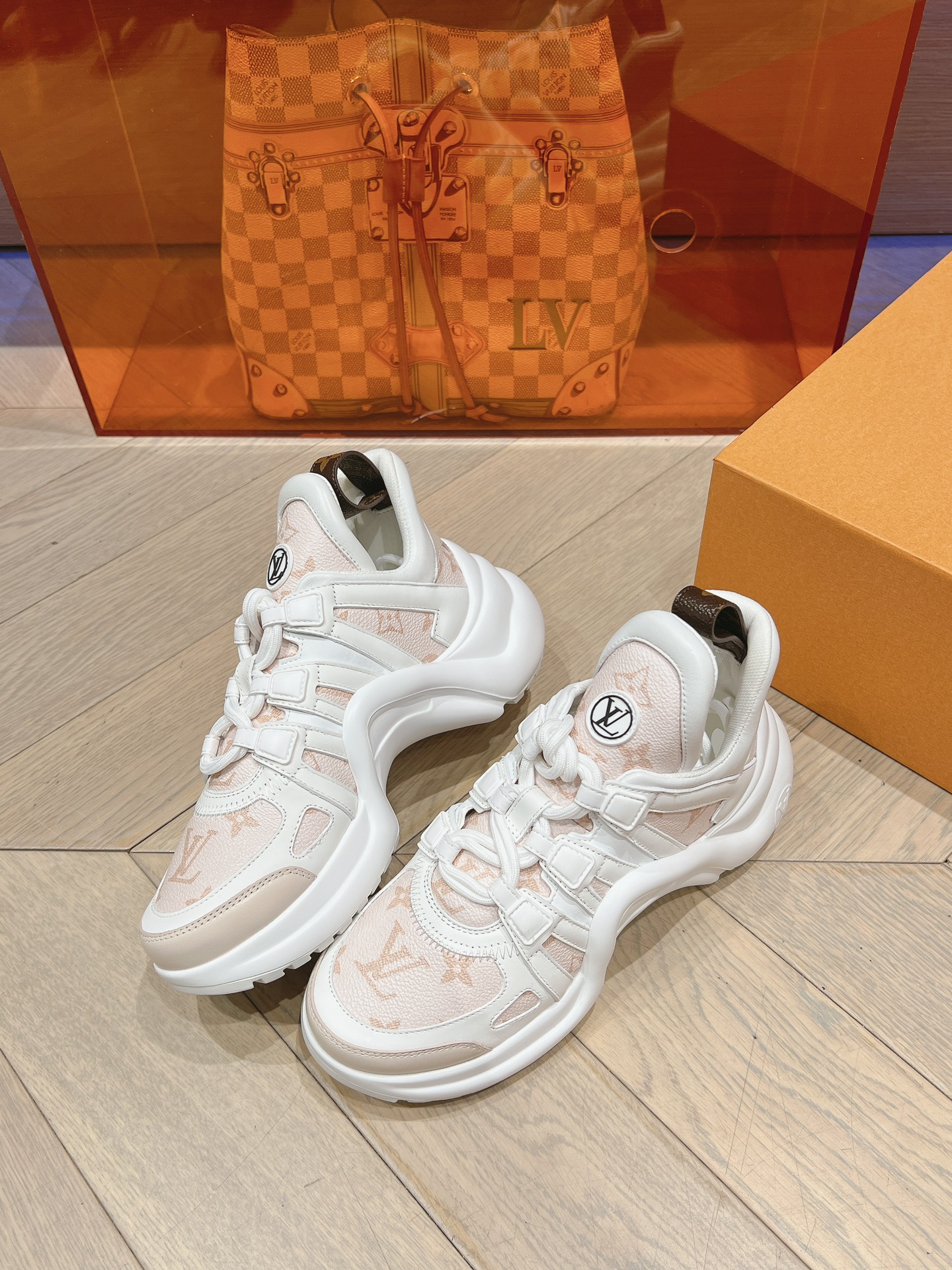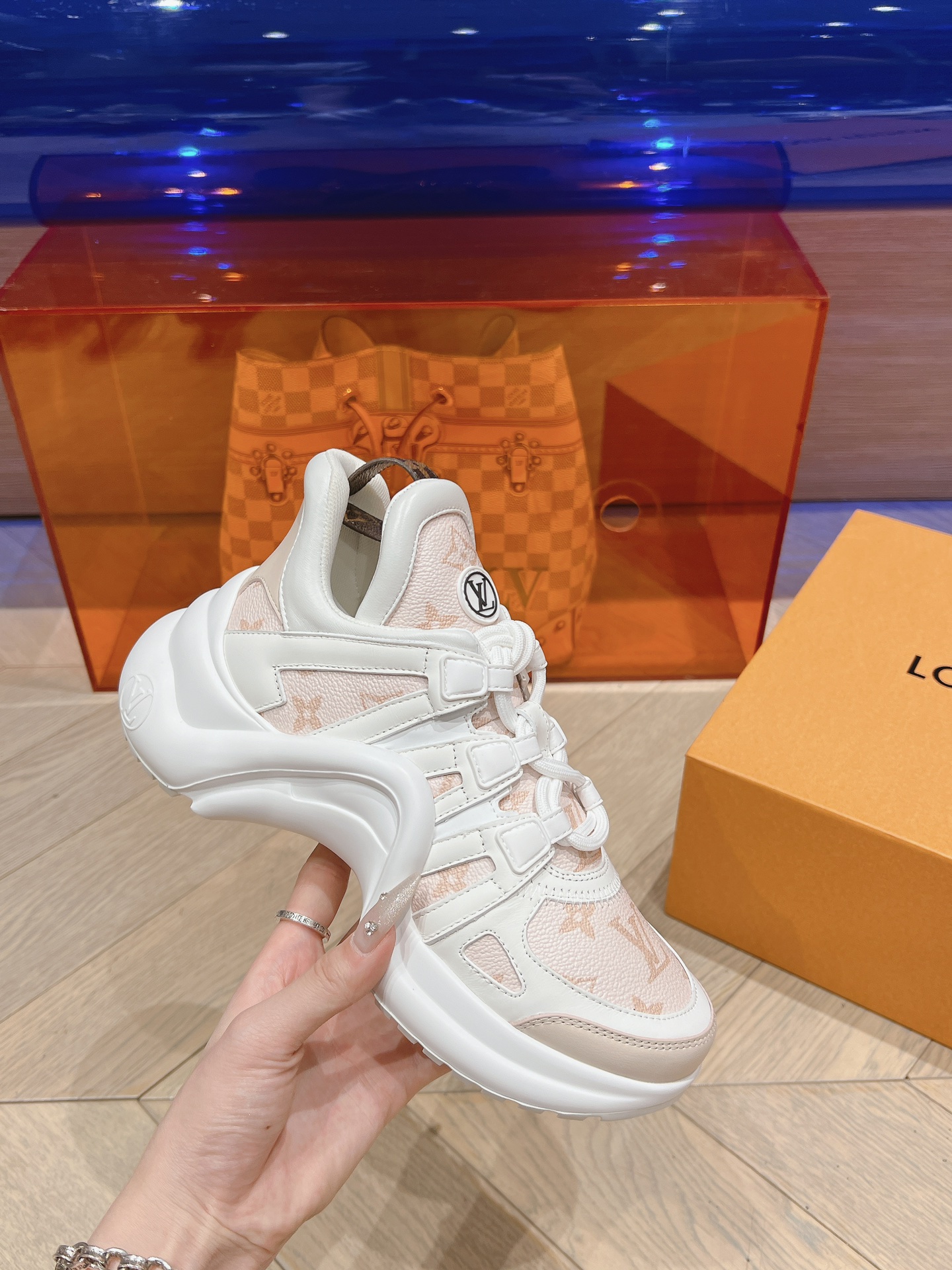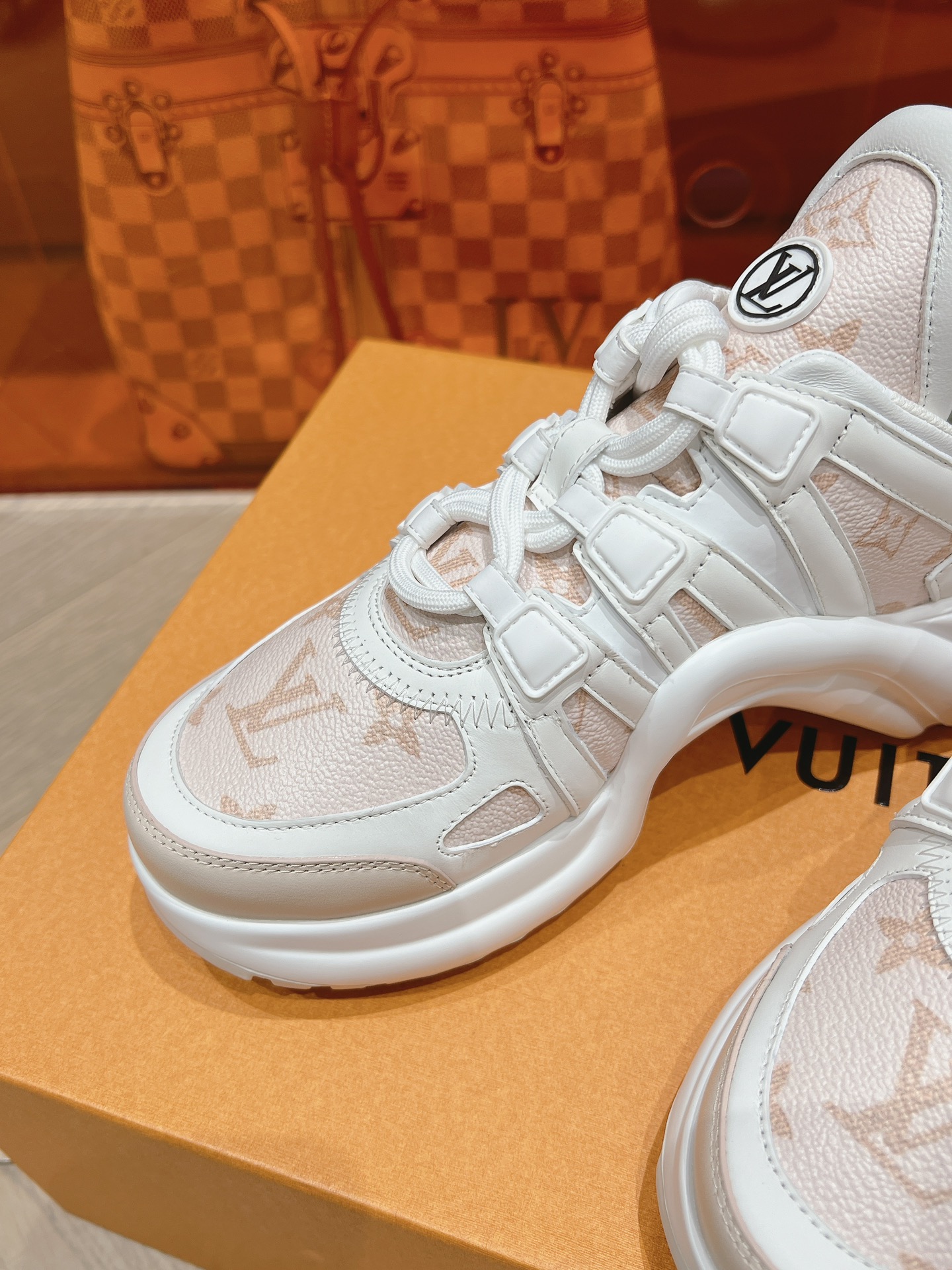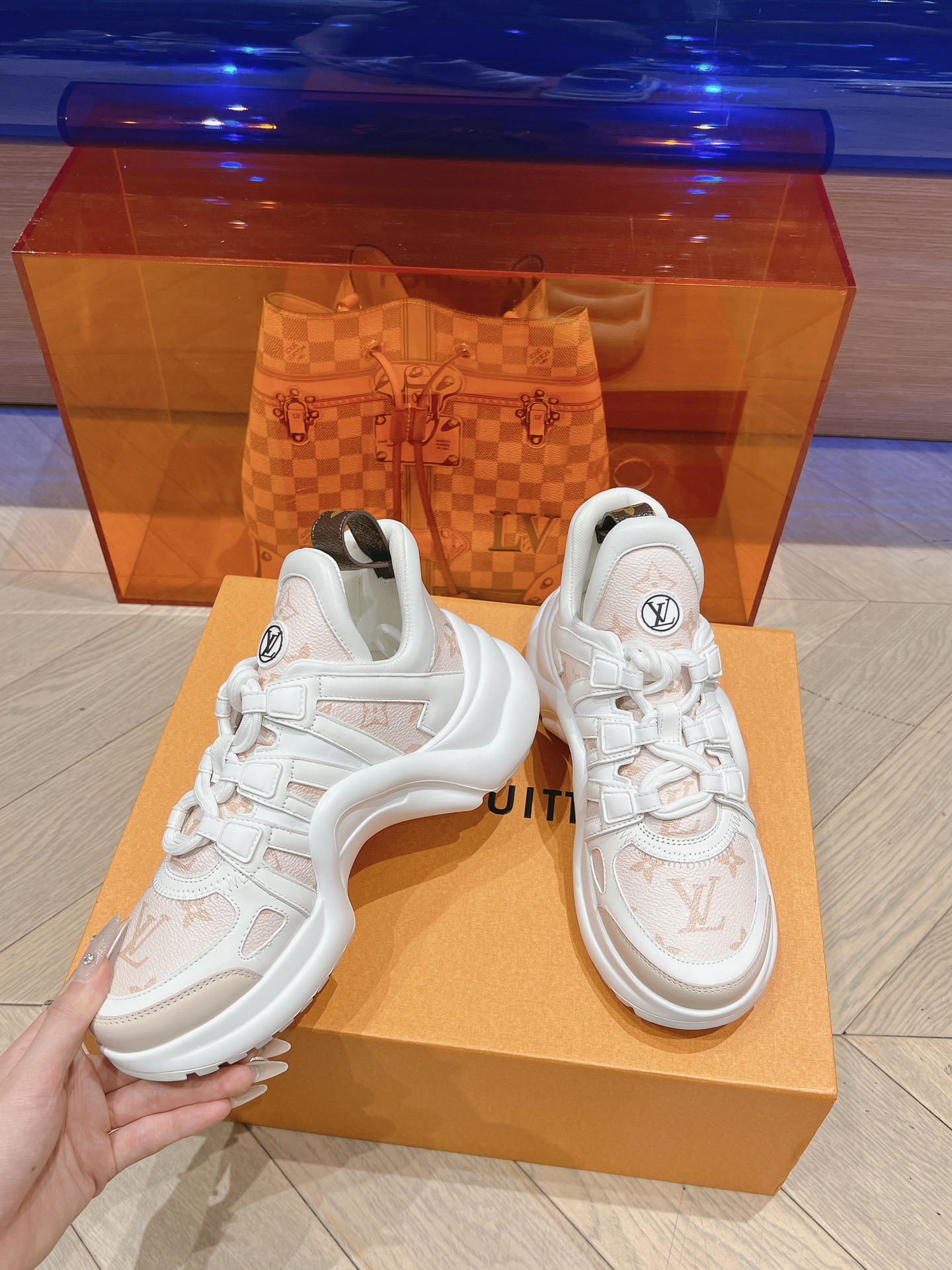 这款鞋子是AAAAA 1:1 质量 (非常棒). 使用了和原版一模一样的材料. 商标部分也保持了和路易威登/Louis Vuitton一样. 图片拍摄是实物鞋子拍摄, 您所收到的实物保证和我们图片一模一样.