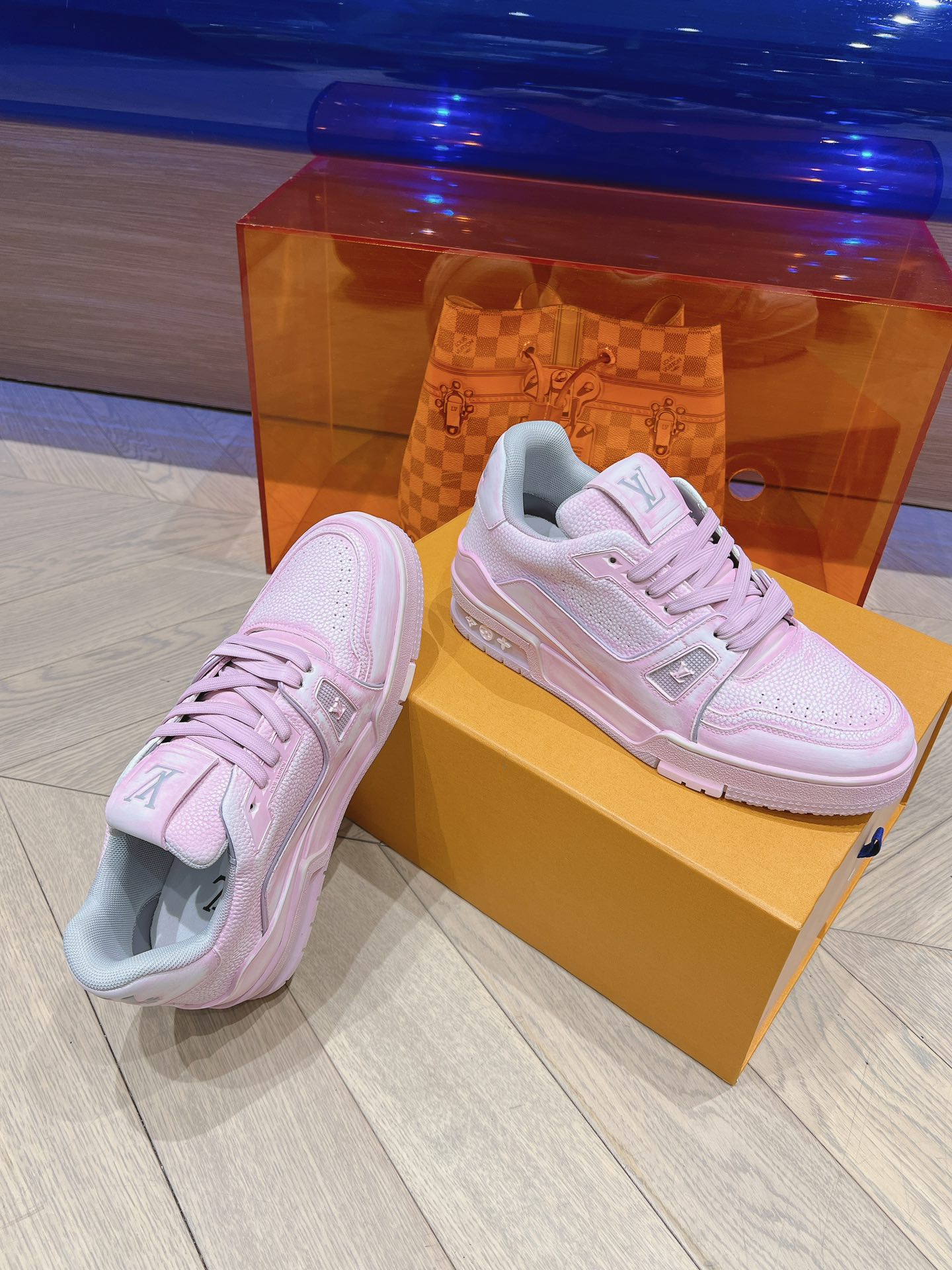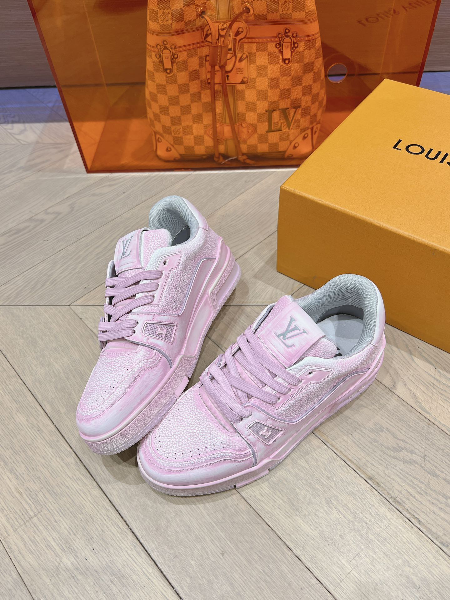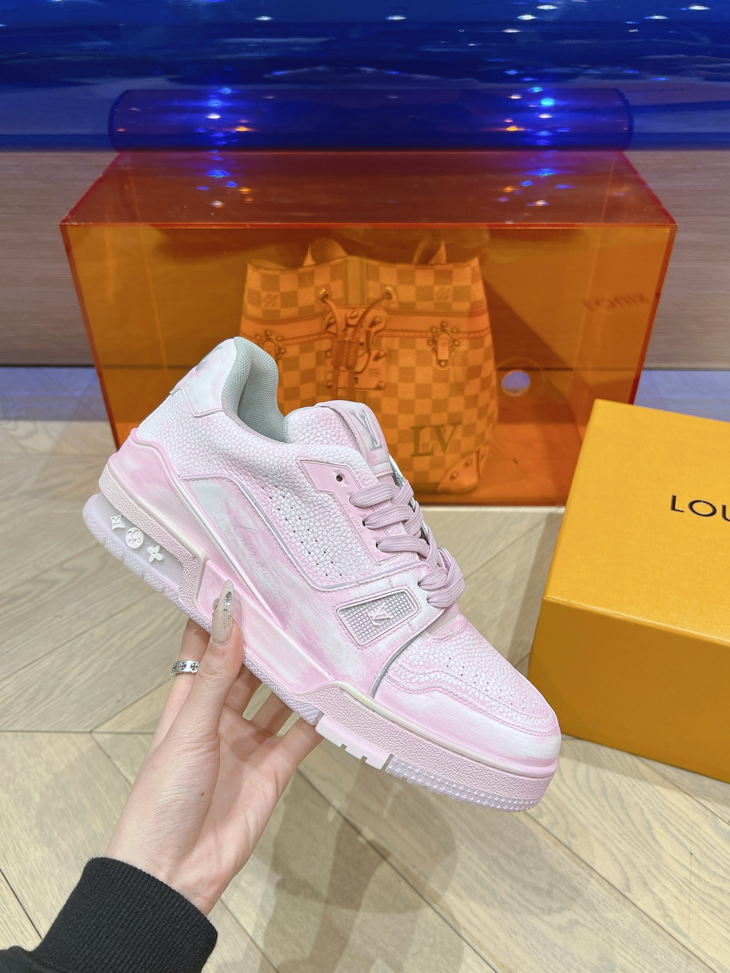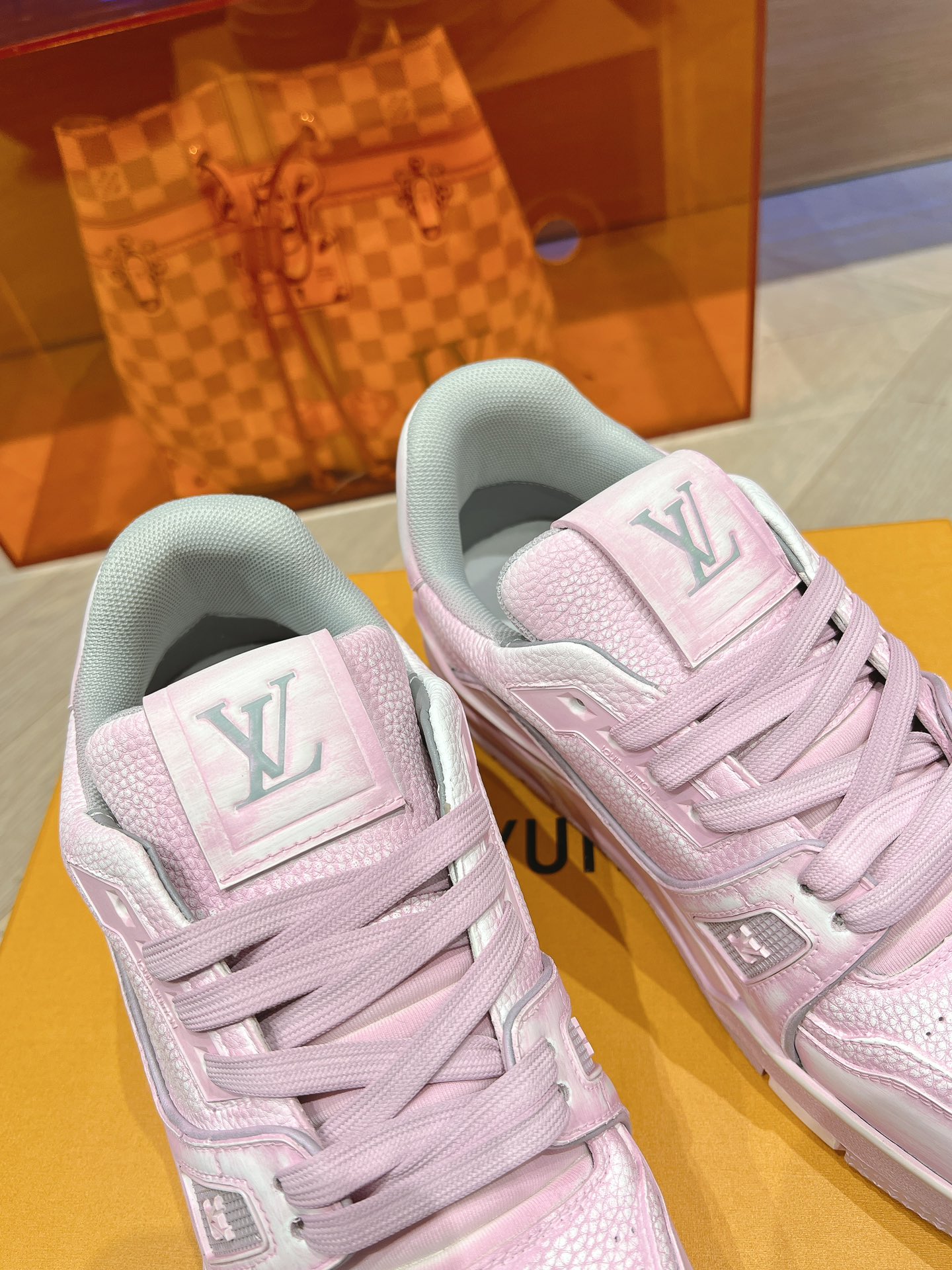 这款鞋子是AAAAA 1:1 质量 (非常棒). 使用了和原版一模一样的材料. 商标部分也保持了和路易威登/Louis Vuitton一样. 图片拍摄是实物鞋子拍摄, 您所收到的实物保证和我们图片一模一样.