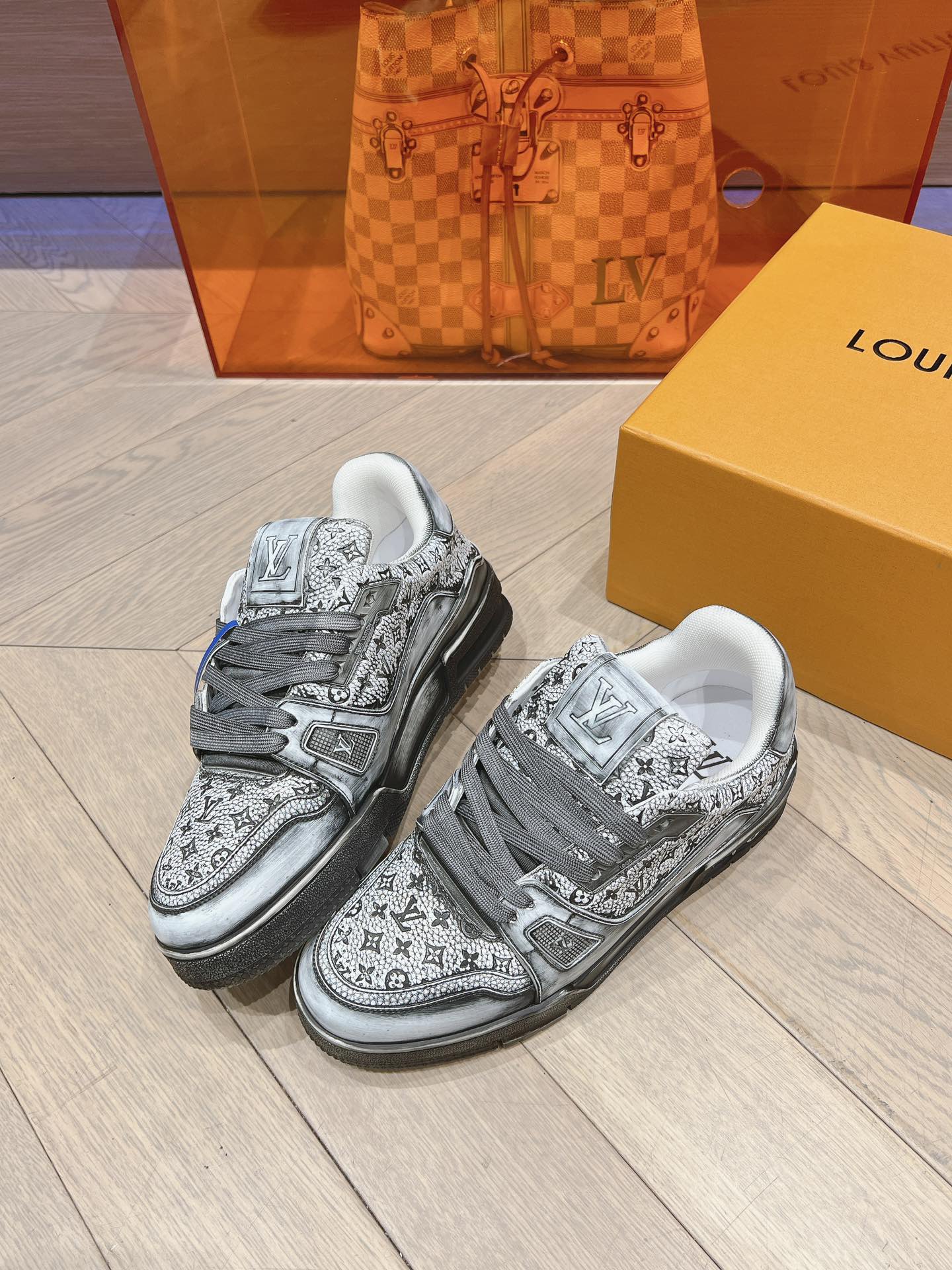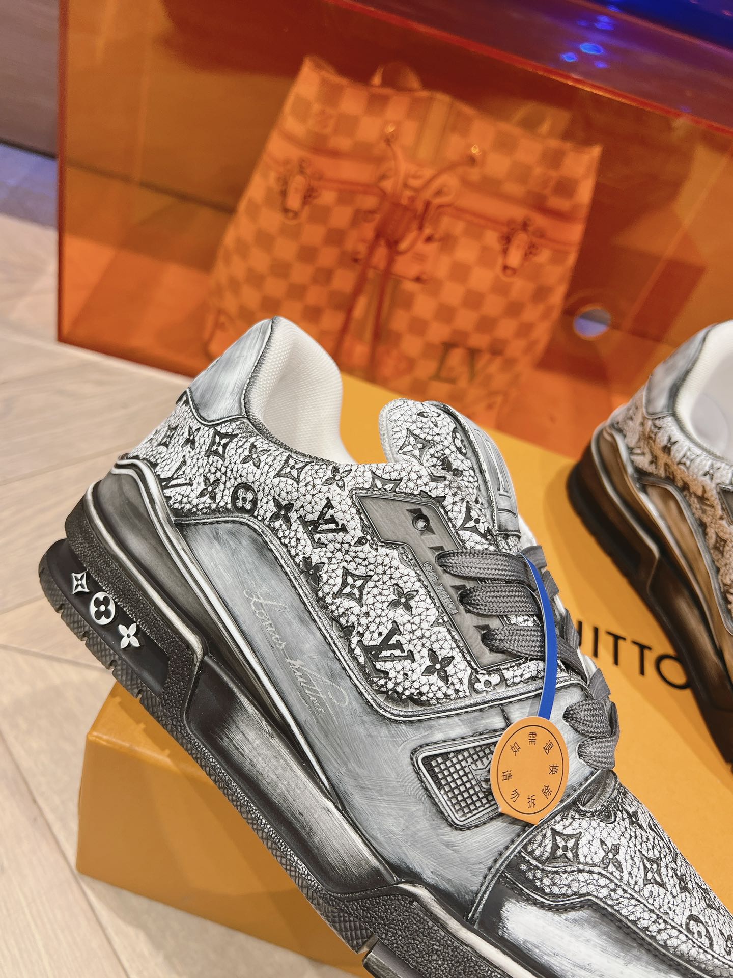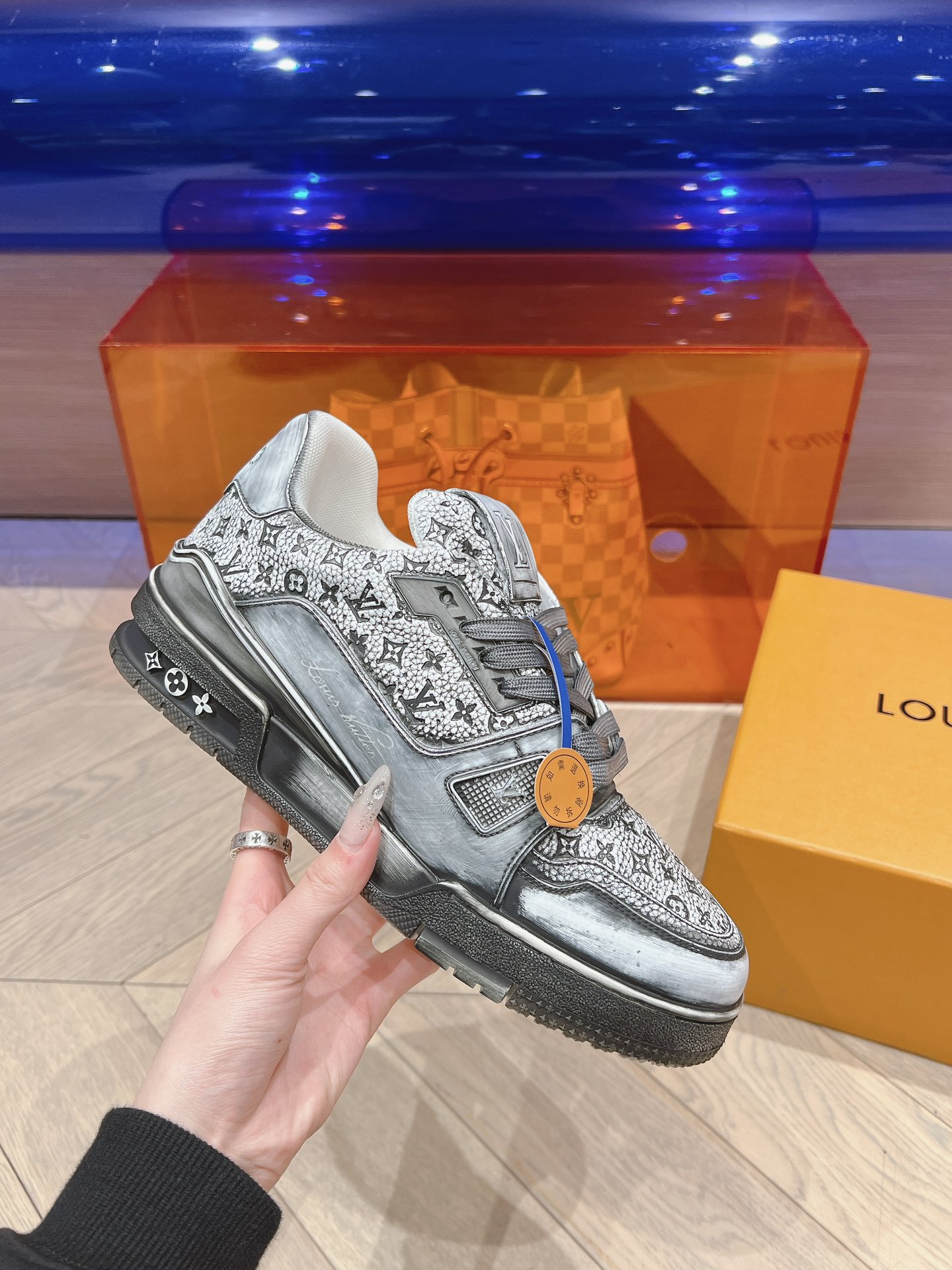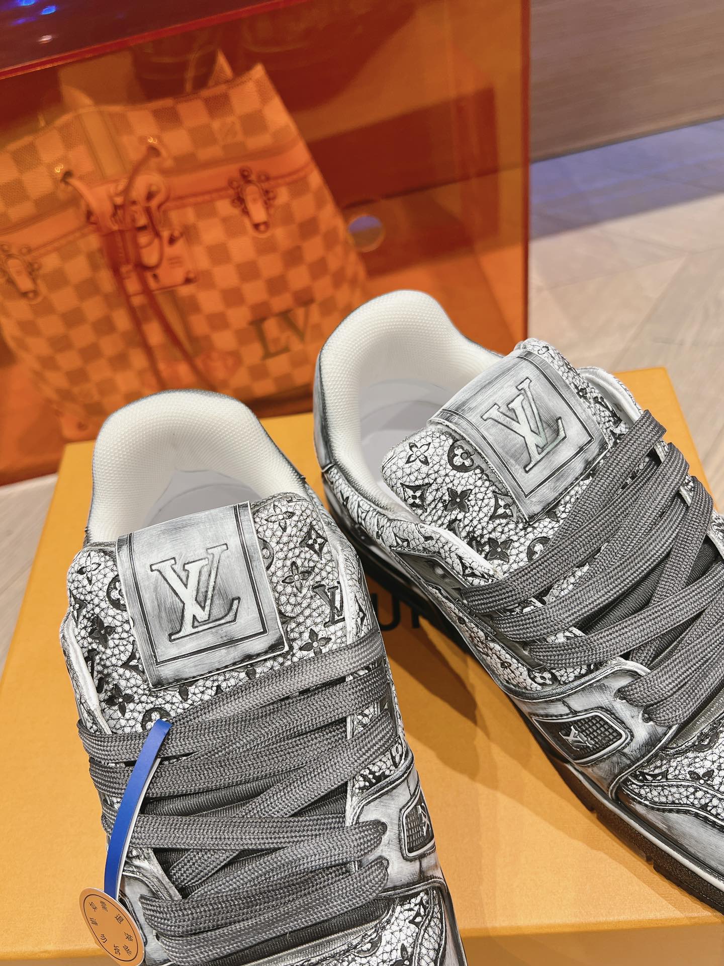 这款鞋子是AAAAA 1:1 质量 (非常棒). 使用了和原版一模一样的材料. 商标部分也保持了和路易威登/Louis Vuitton一样. 图片拍摄是实物鞋子拍摄, 您所收到的实物保证和我们图片一模一样.