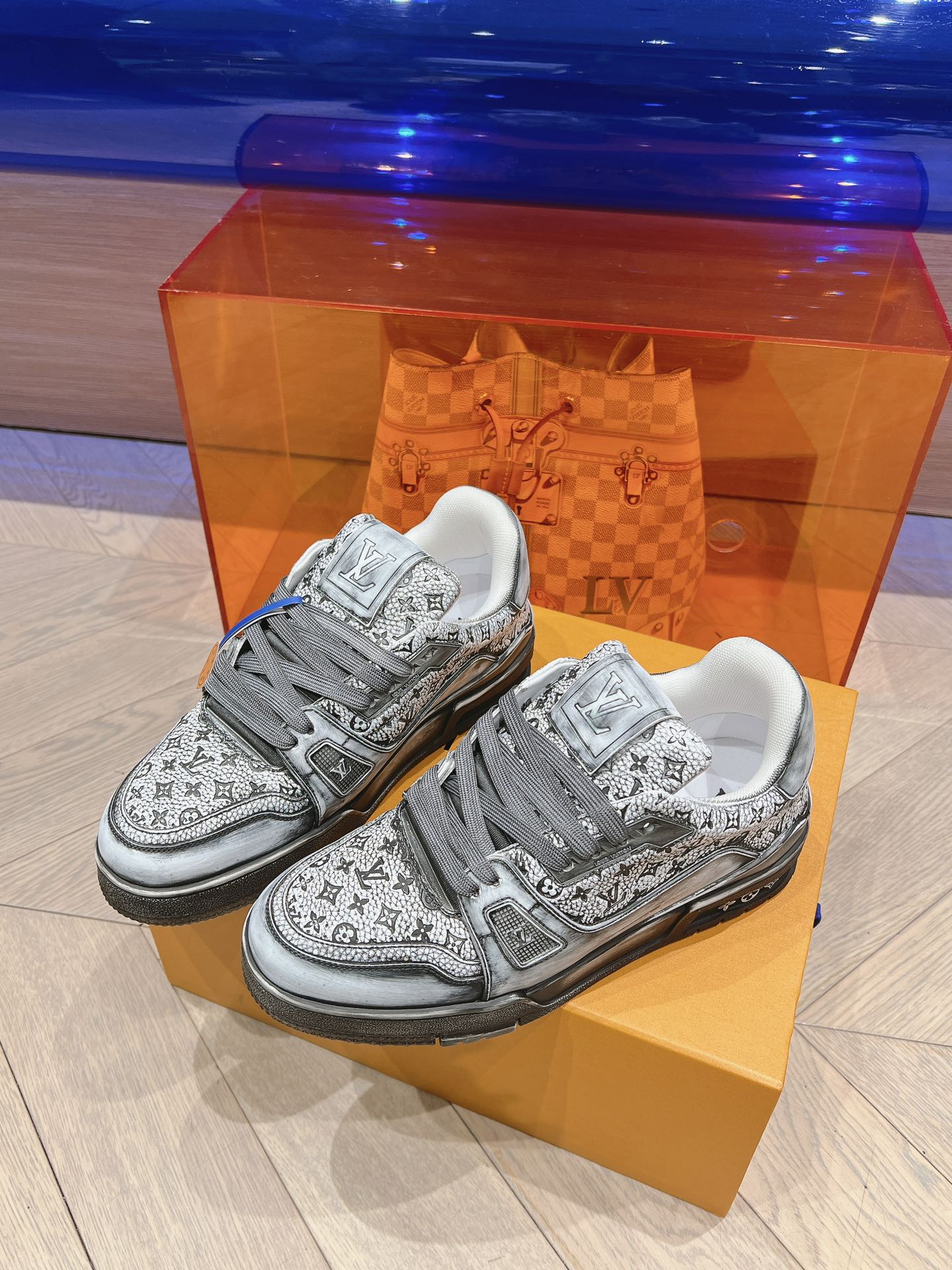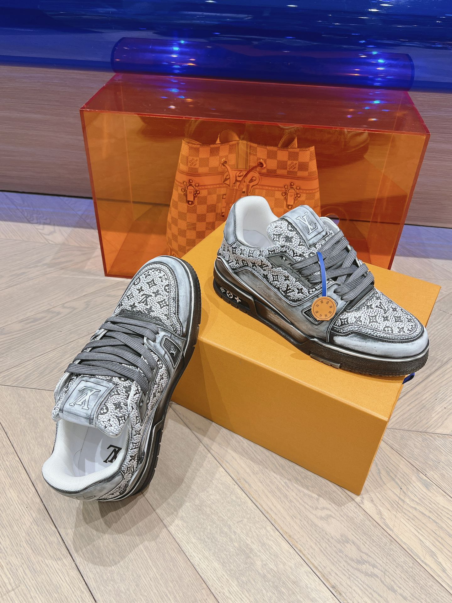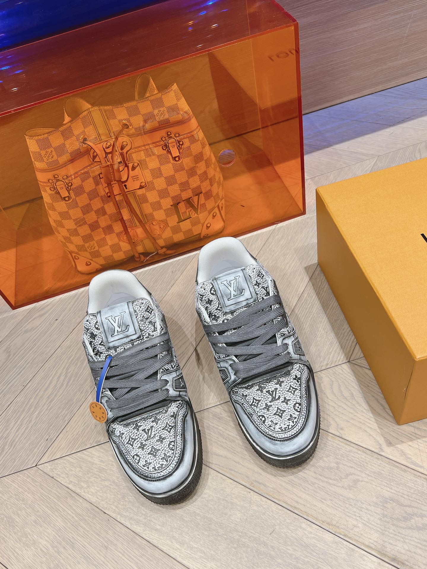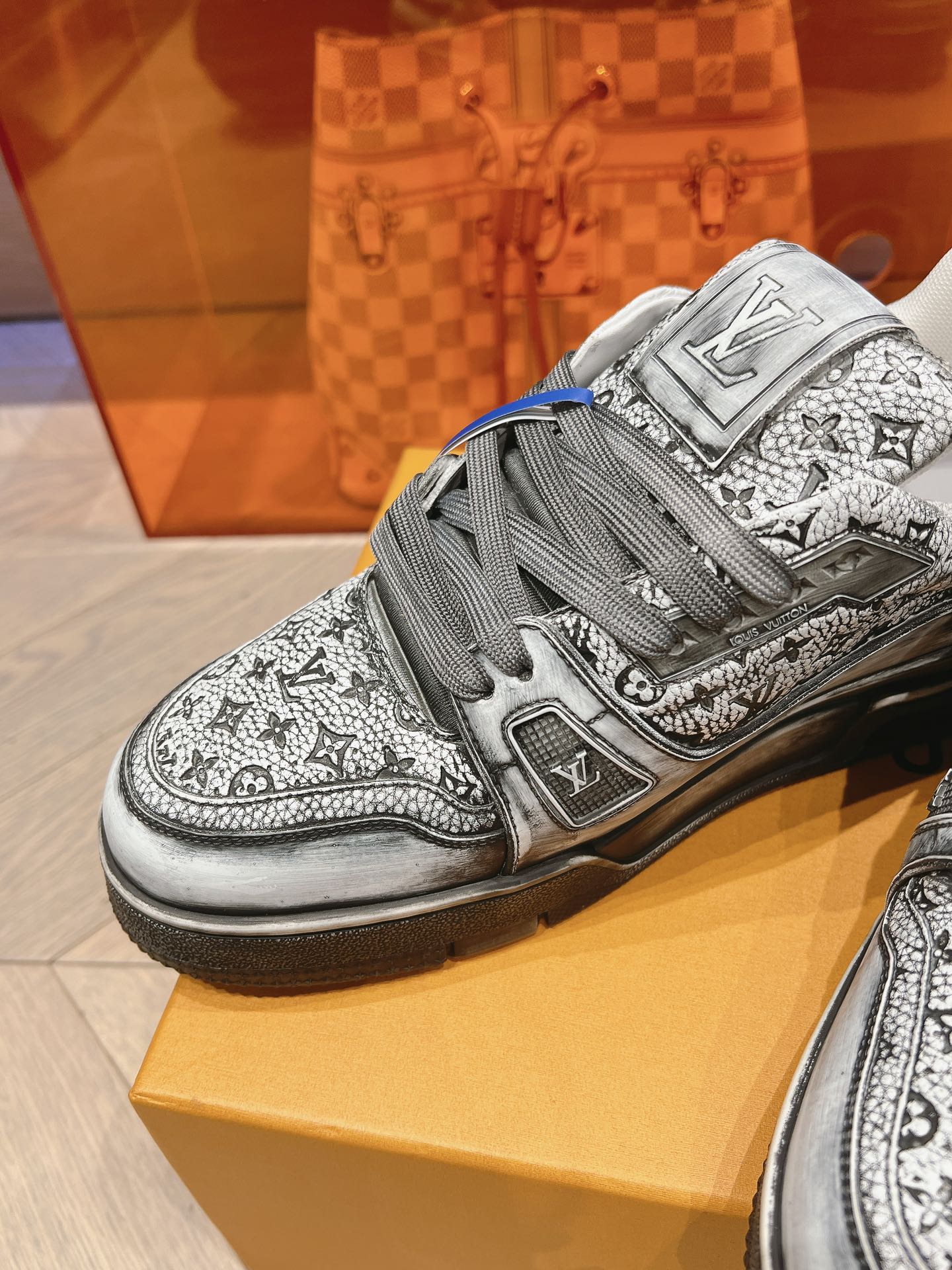 这款鞋子是AAAAA 1:1 质量 (非常棒). 使用了和原版一模一样的材料. 商标部分也保持了和路易威登/Louis Vuitton一样. 图片拍摄是实物鞋子拍摄, 您所收到的实物保证和我们图片一模一样.