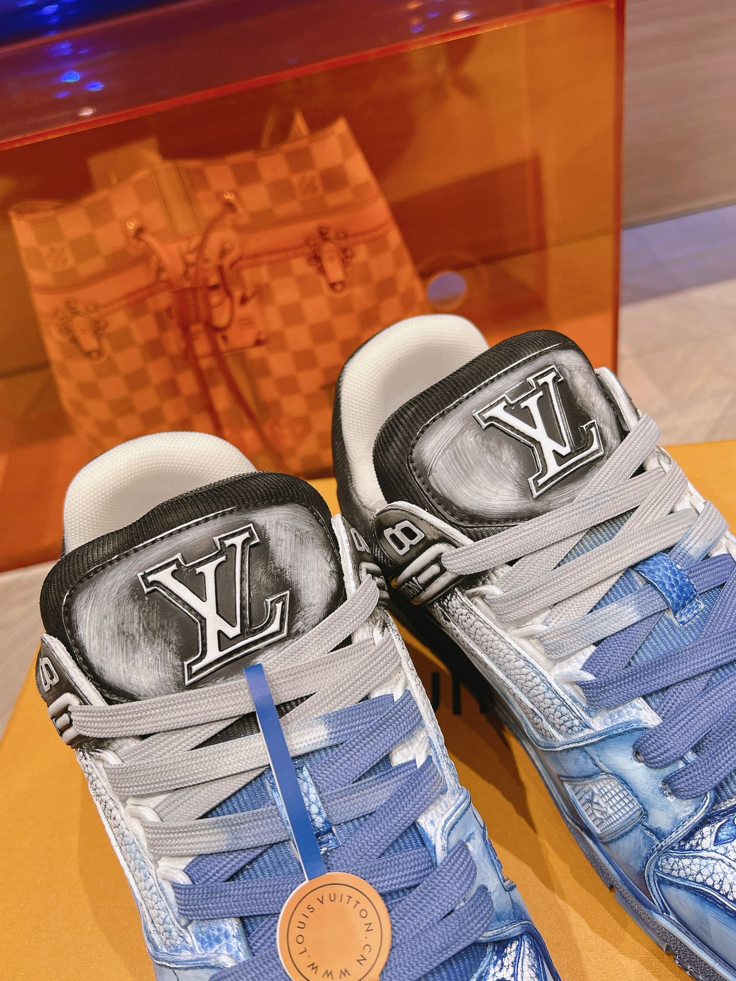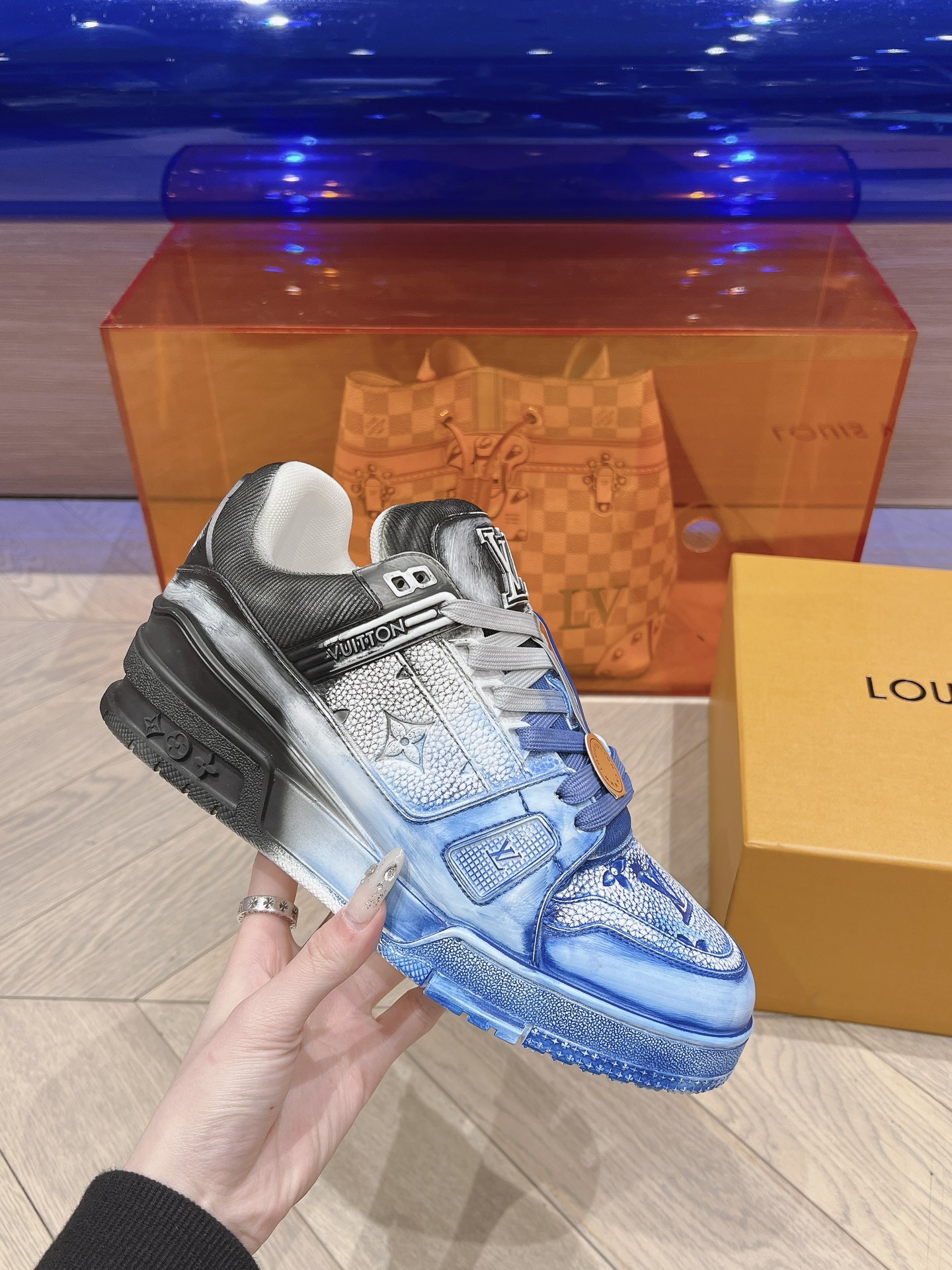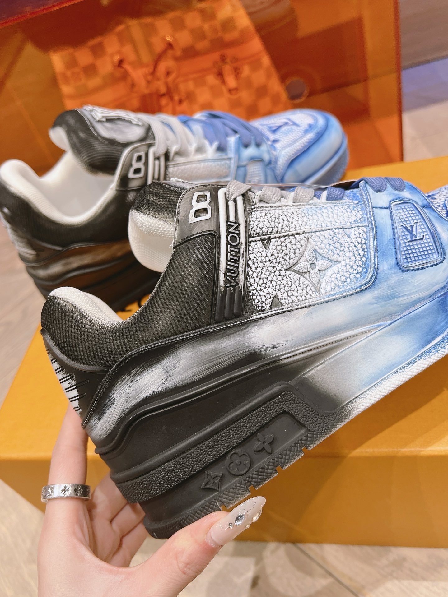 这款鞋子是AAAAA 1:1 质量 (非常棒). 使用了和原版一模一样的材料. 商标部分也保持了和路易威登/Louis Vuitton一样. 图片拍摄是实物鞋子拍摄, 您所收到的实物保证和我们图片一模一样.