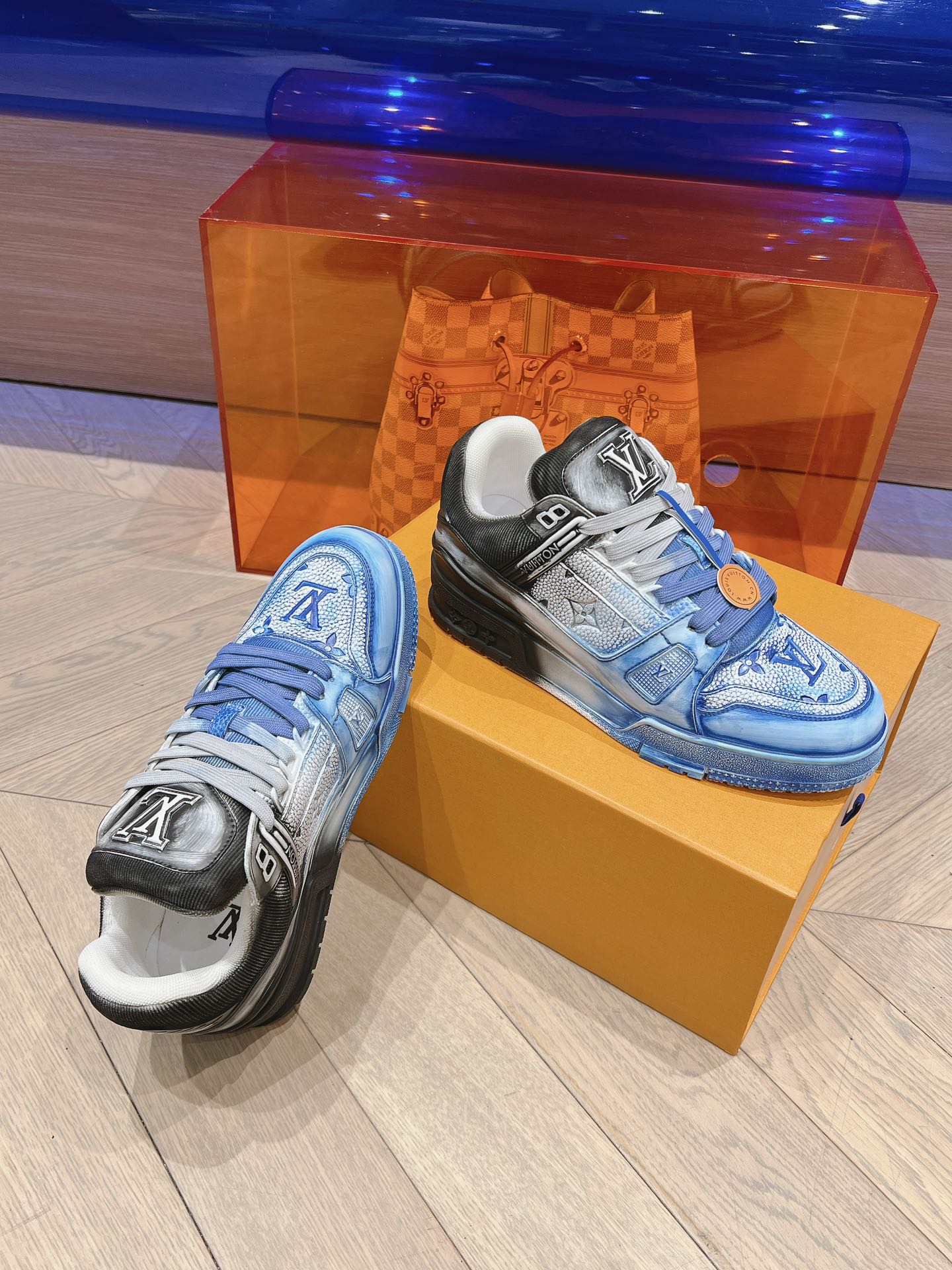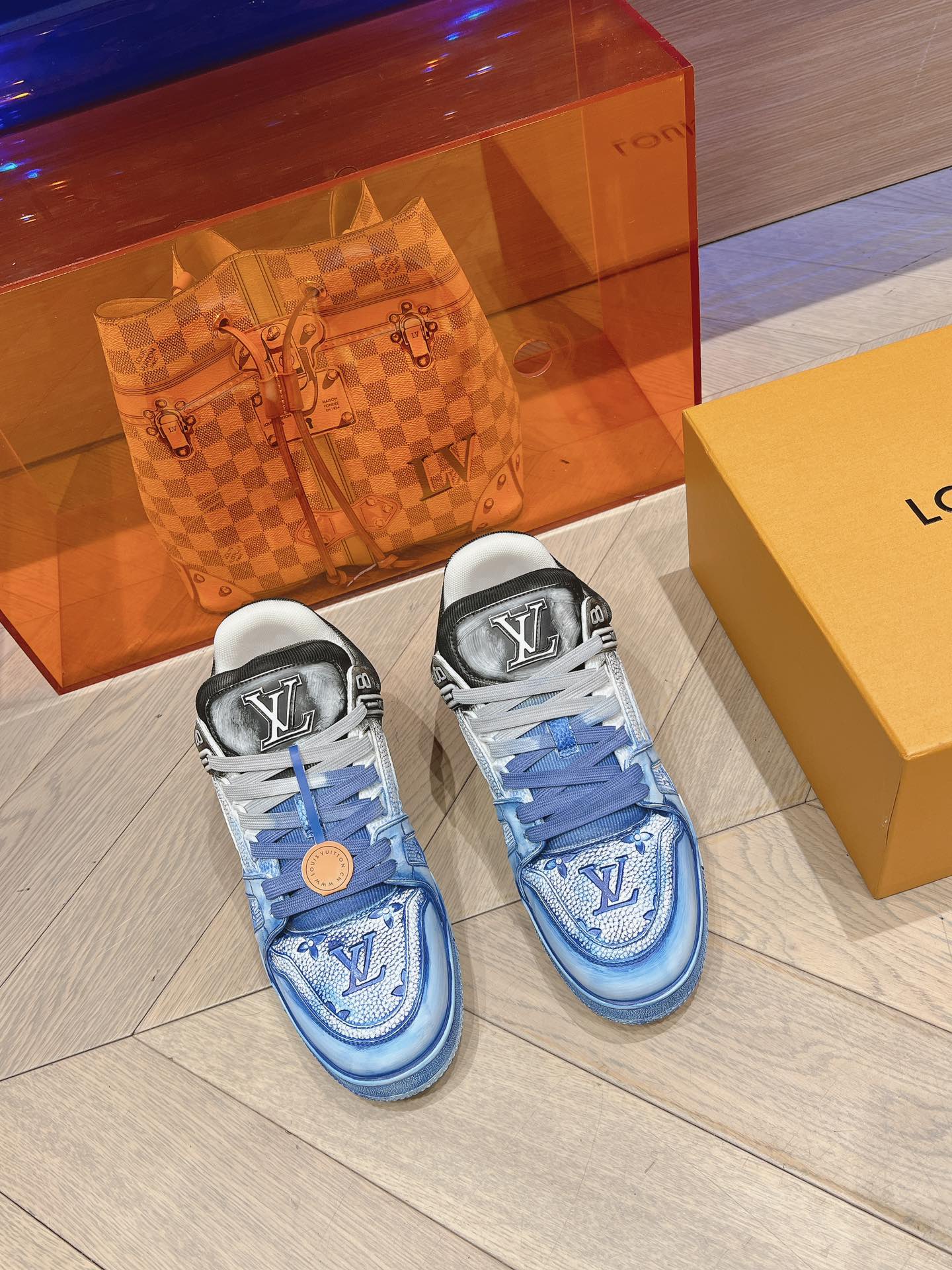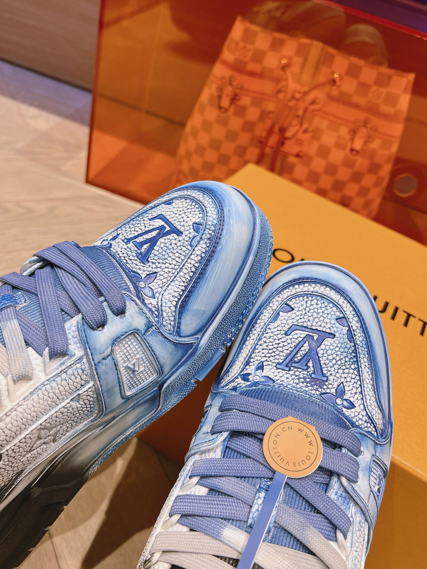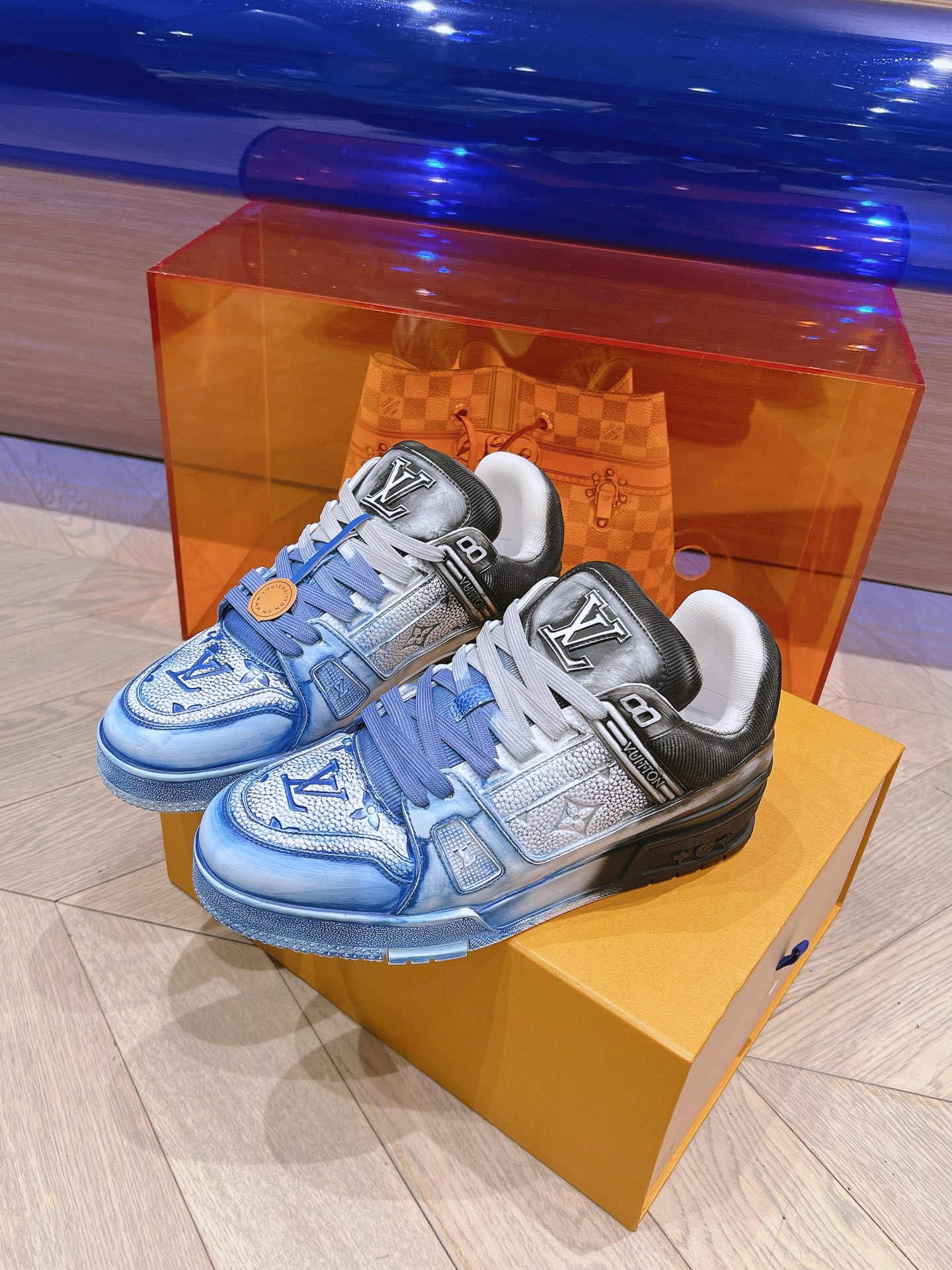 这款鞋子是AAAAA 1:1 质量 (非常棒). 使用了和原版一模一样的材料. 商标部分也保持了和路易威登/Louis Vuitton一样. 图片拍摄是实物鞋子拍摄, 您所收到的实物保证和我们图片一模一样.