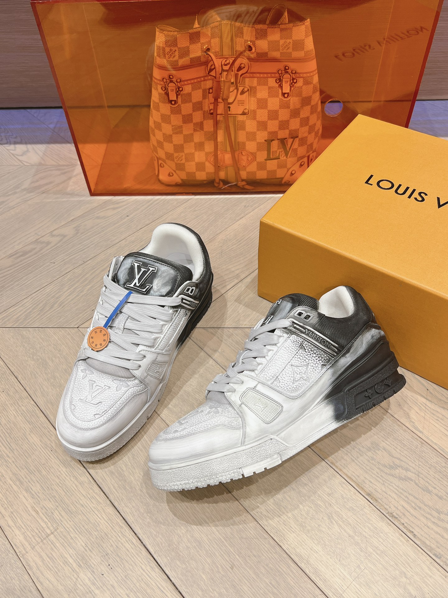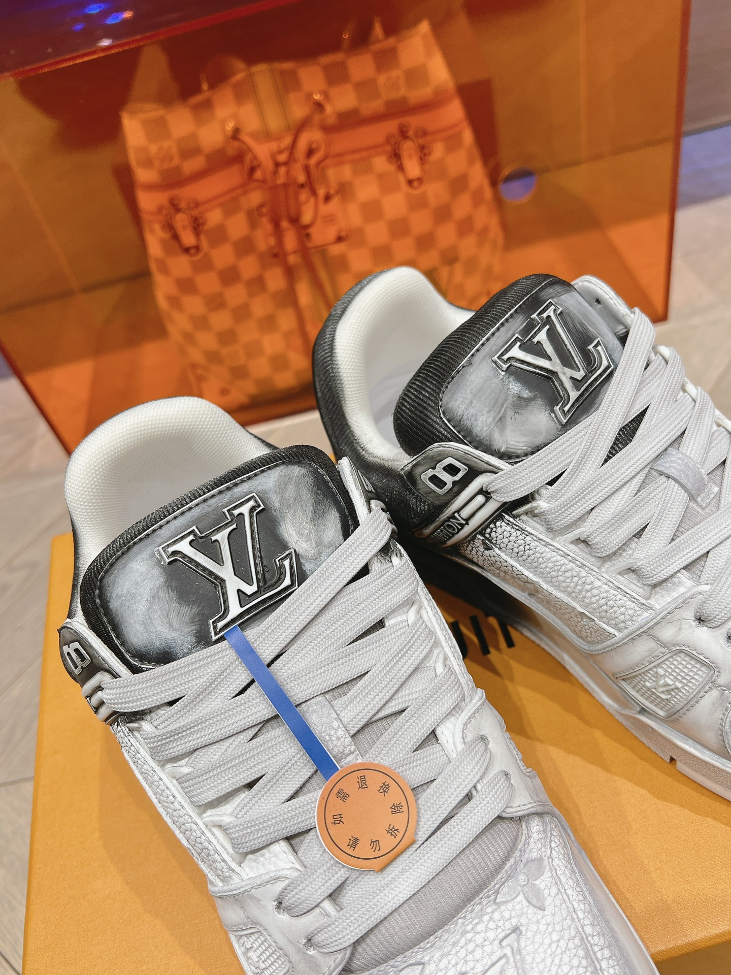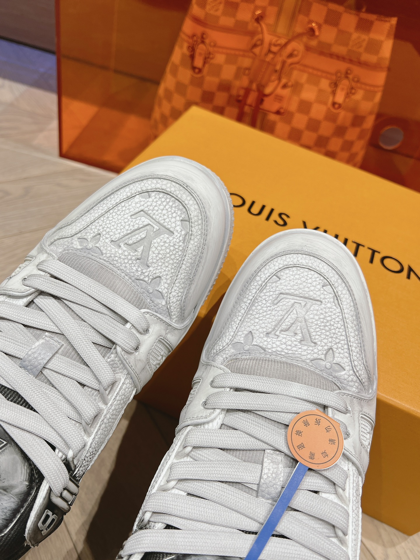 这款鞋子是AAAAA 1:1 质量 (非常棒). 使用了和原版一模一样的材料. 商标部分也保持了和路易威登/Louis Vuitton一样. 图片拍摄是实物鞋子拍摄, 您所收到的实物保证和我们图片一模一样.