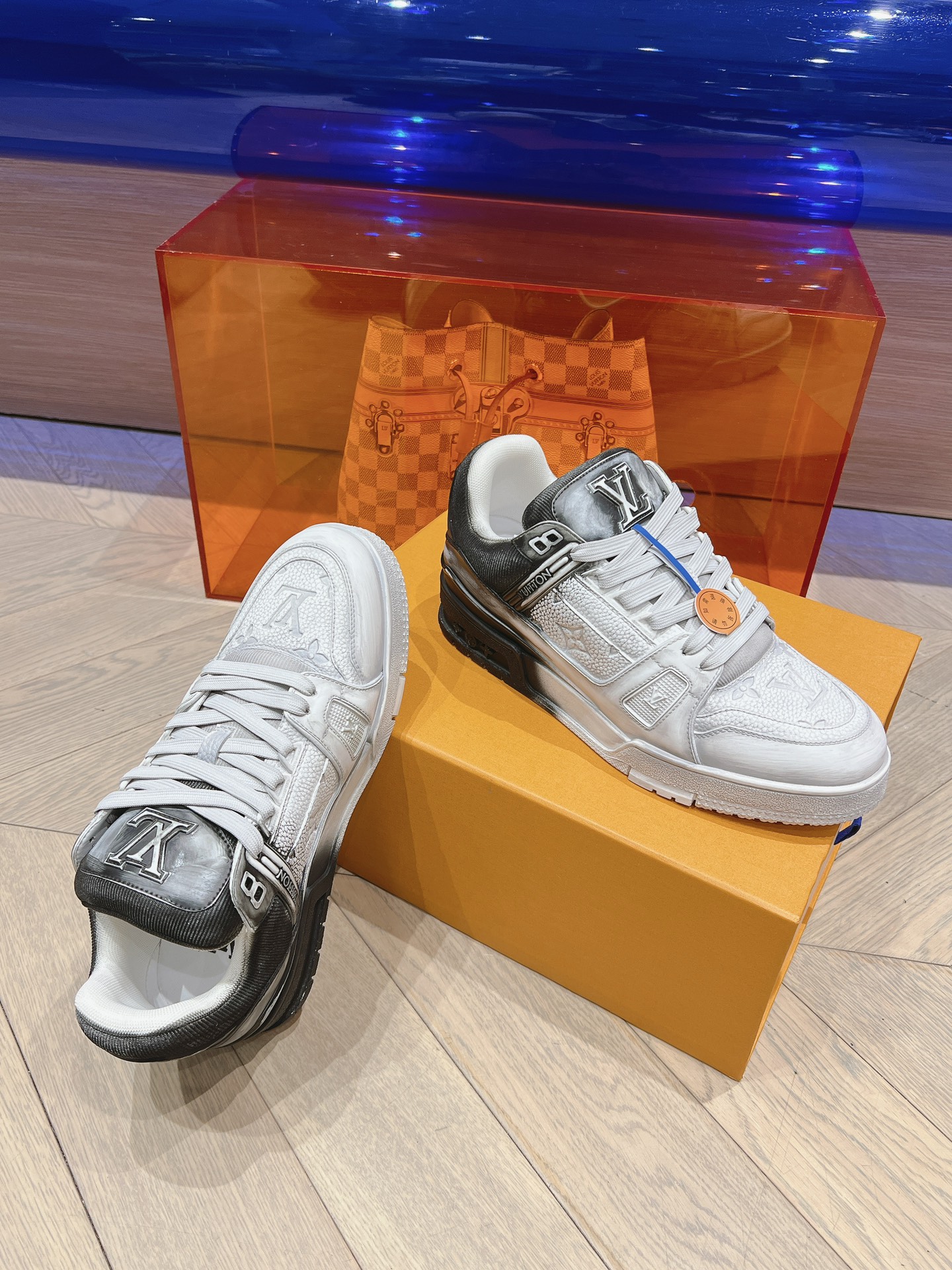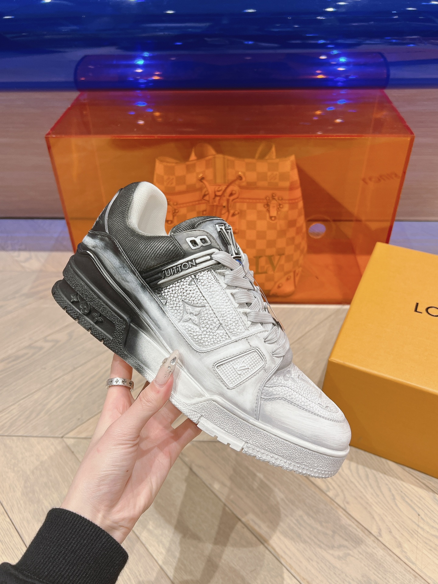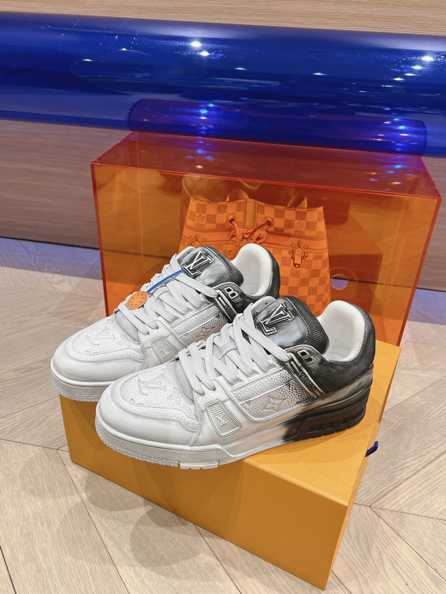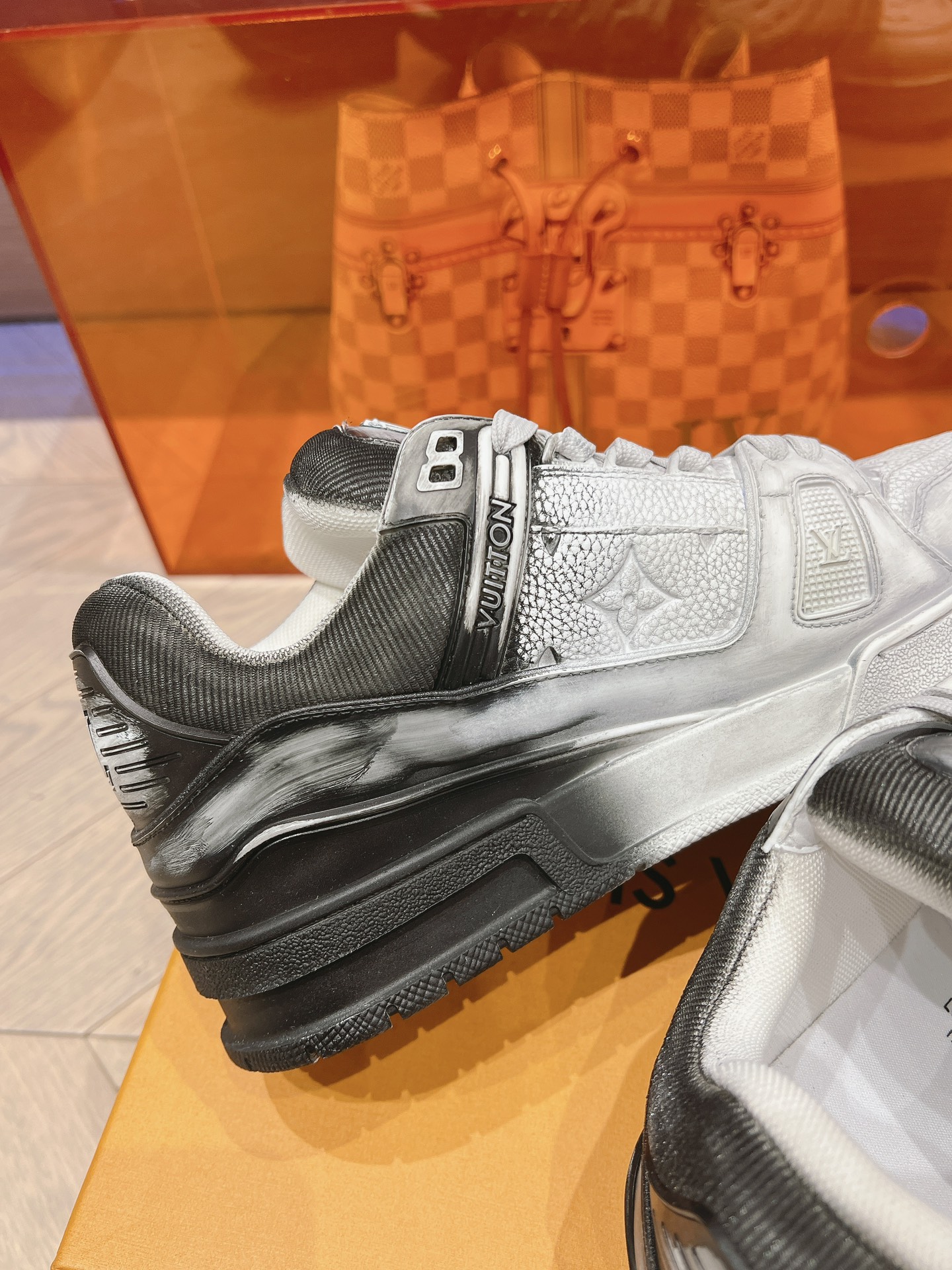 这款鞋子是AAAAA 1:1 质量 (非常棒). 使用了和原版一模一样的材料. 商标部分也保持了和路易威登/Louis Vuitton一样. 图片拍摄是实物鞋子拍摄, 您所收到的实物保证和我们图片一模一样.