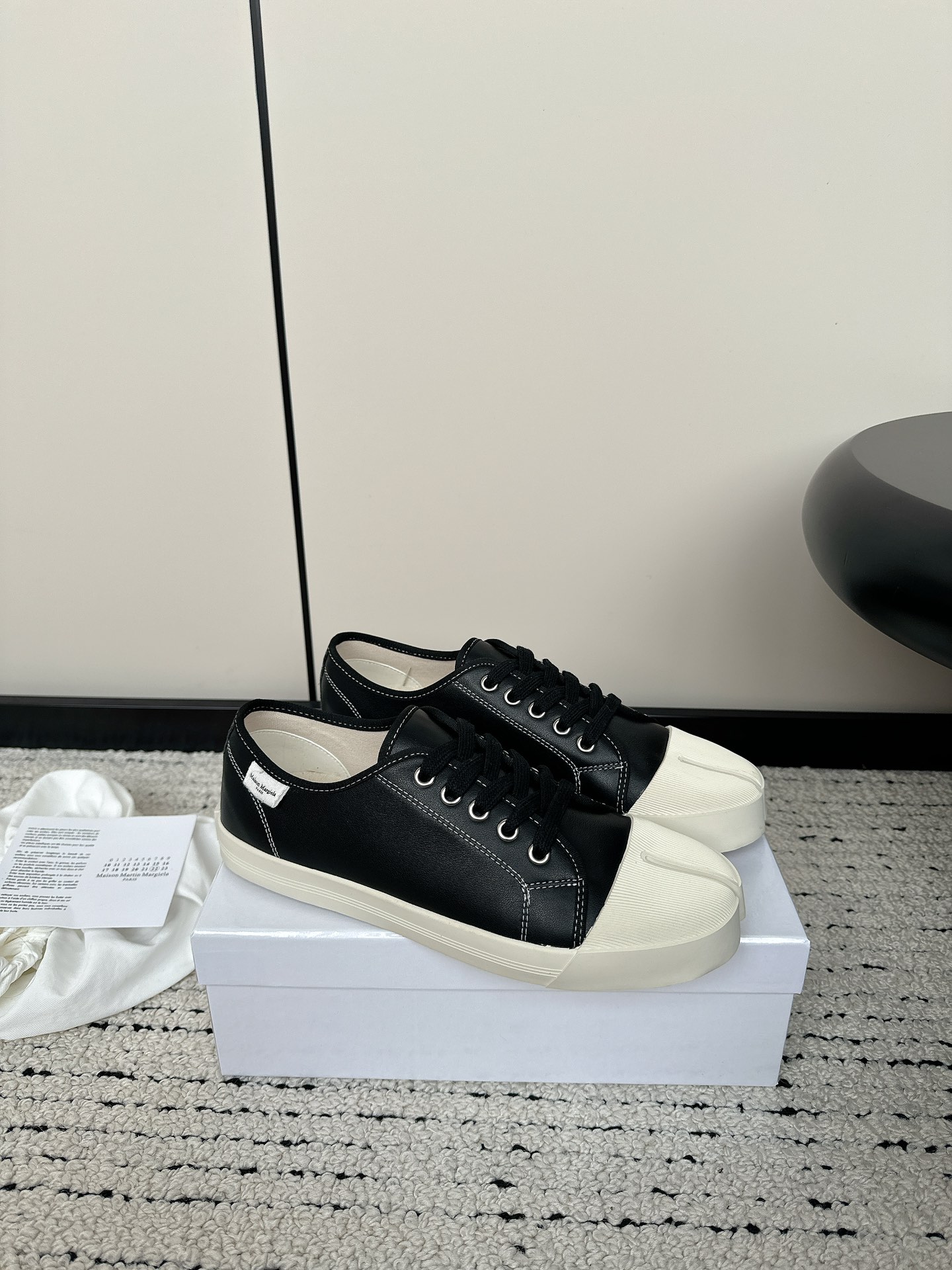 这款鞋子是AAAAA 1:1 质量 (非常棒). 使用了和原版一模一样的材料. 商标部分也保持了和Maison Margiela一样. 图片拍摄是实物鞋子拍摄, 您所收到的实物保证和我们图片一模一样.