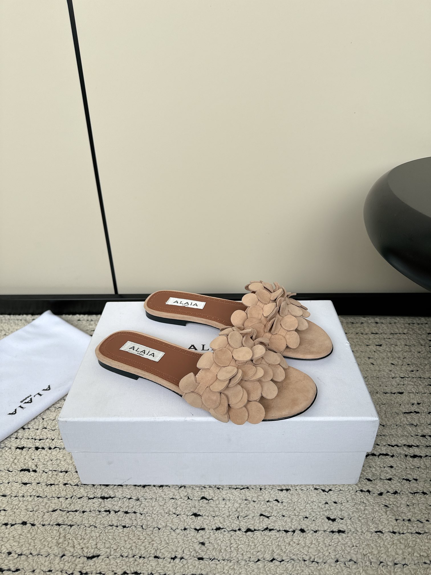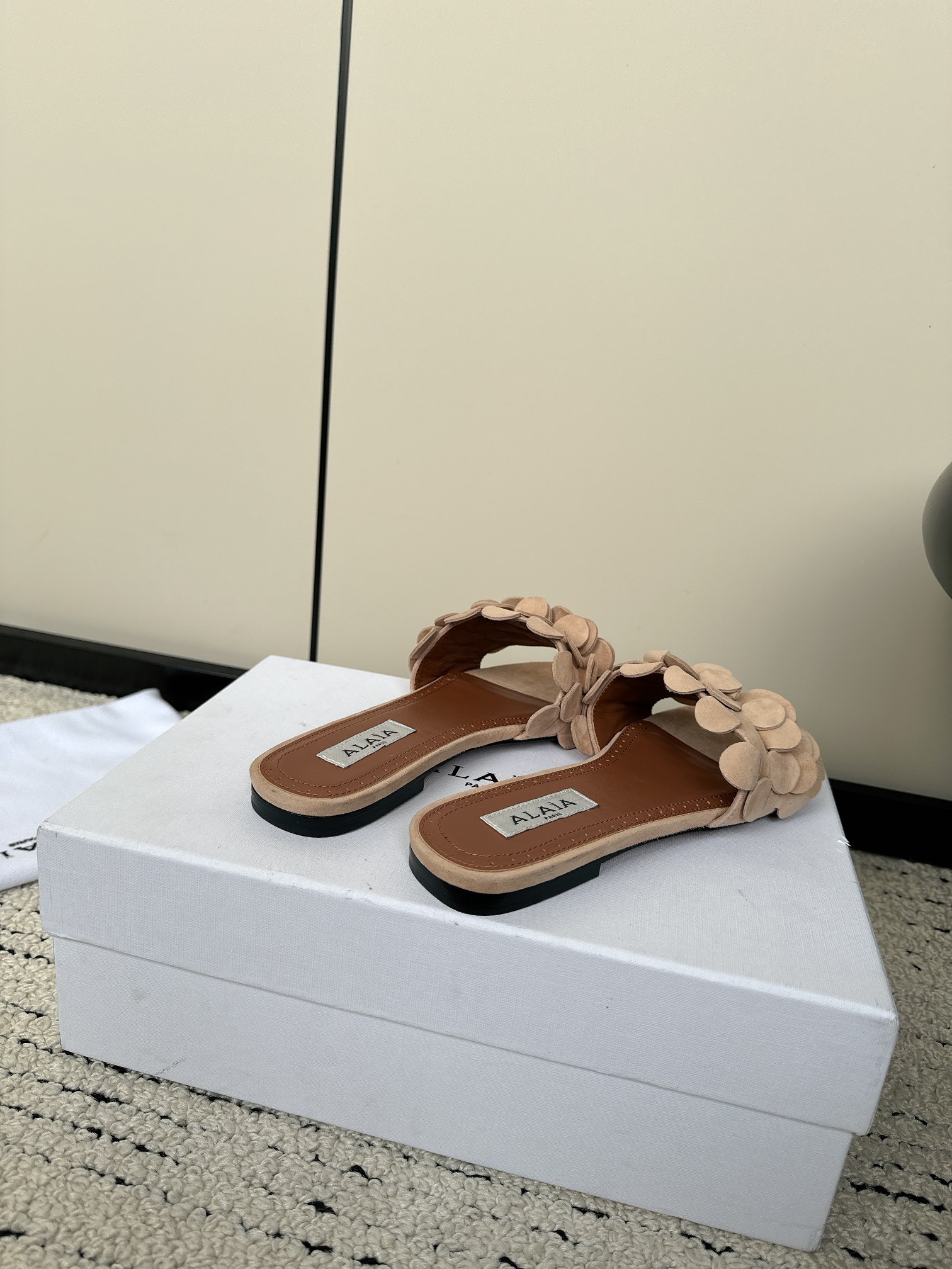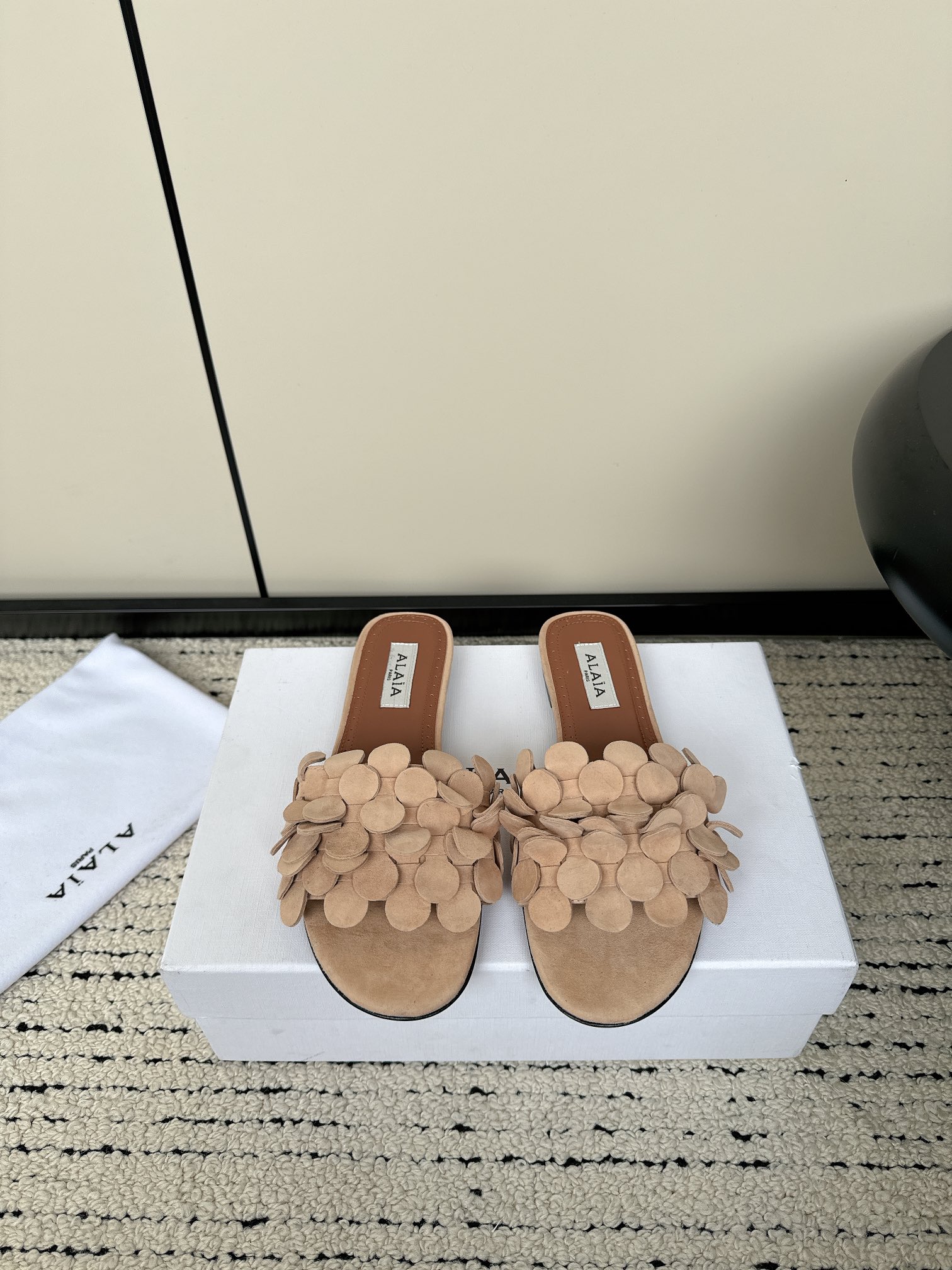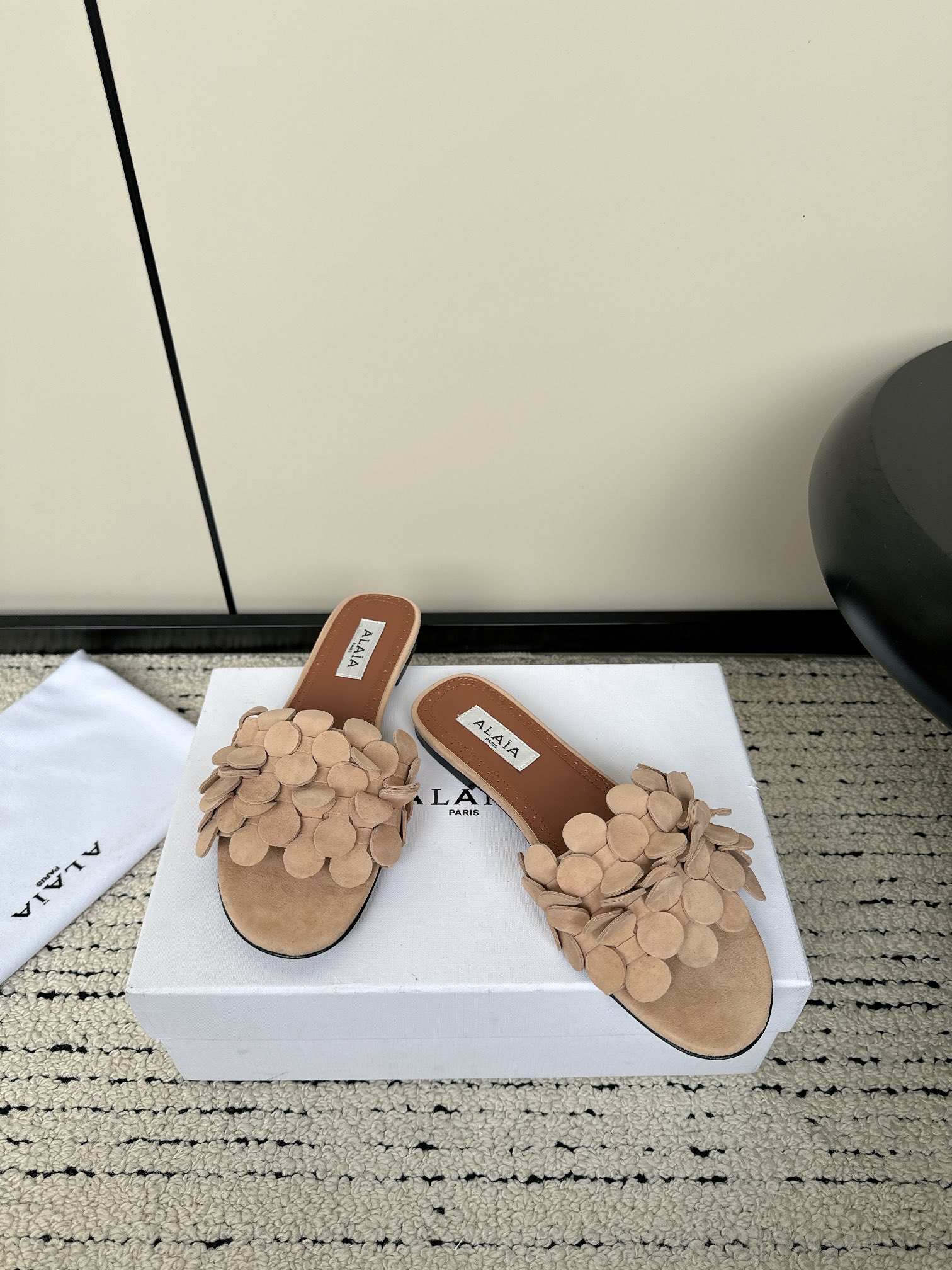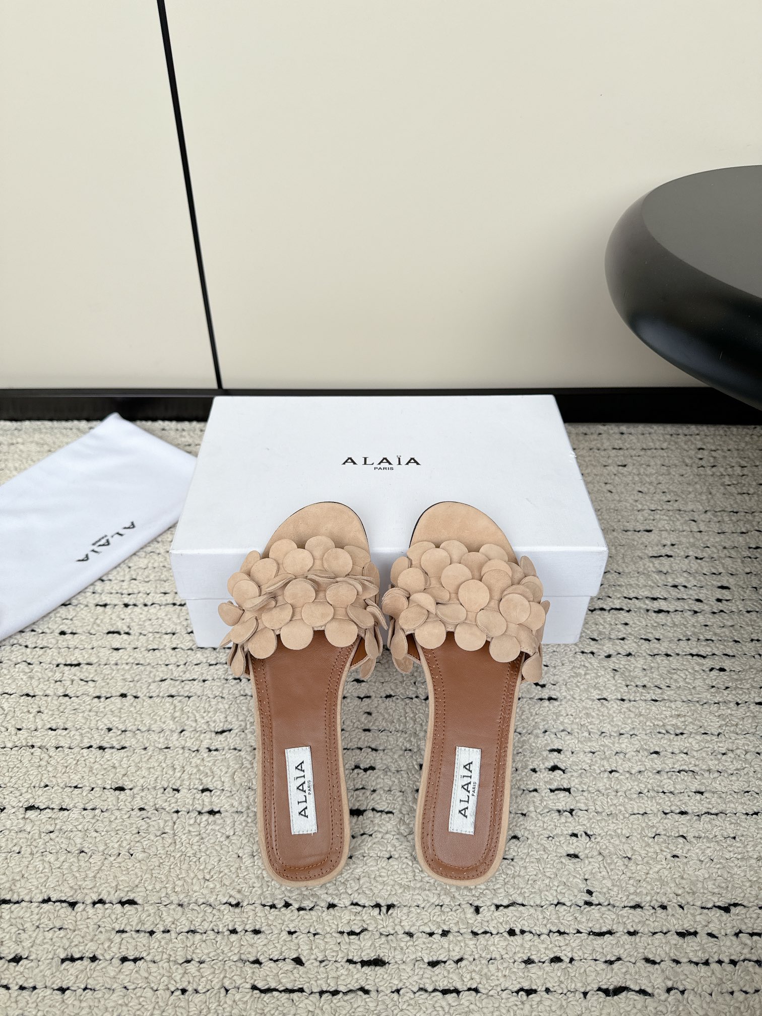 这款鞋子是AAAAA 1:1 质量 (非常棒). 使用了和原版一模一样的材料. 商标部分也保持了和Alaia一样. 图片拍摄是实物鞋子拍摄, 您所收到的实物保证和我们图片一模一样.