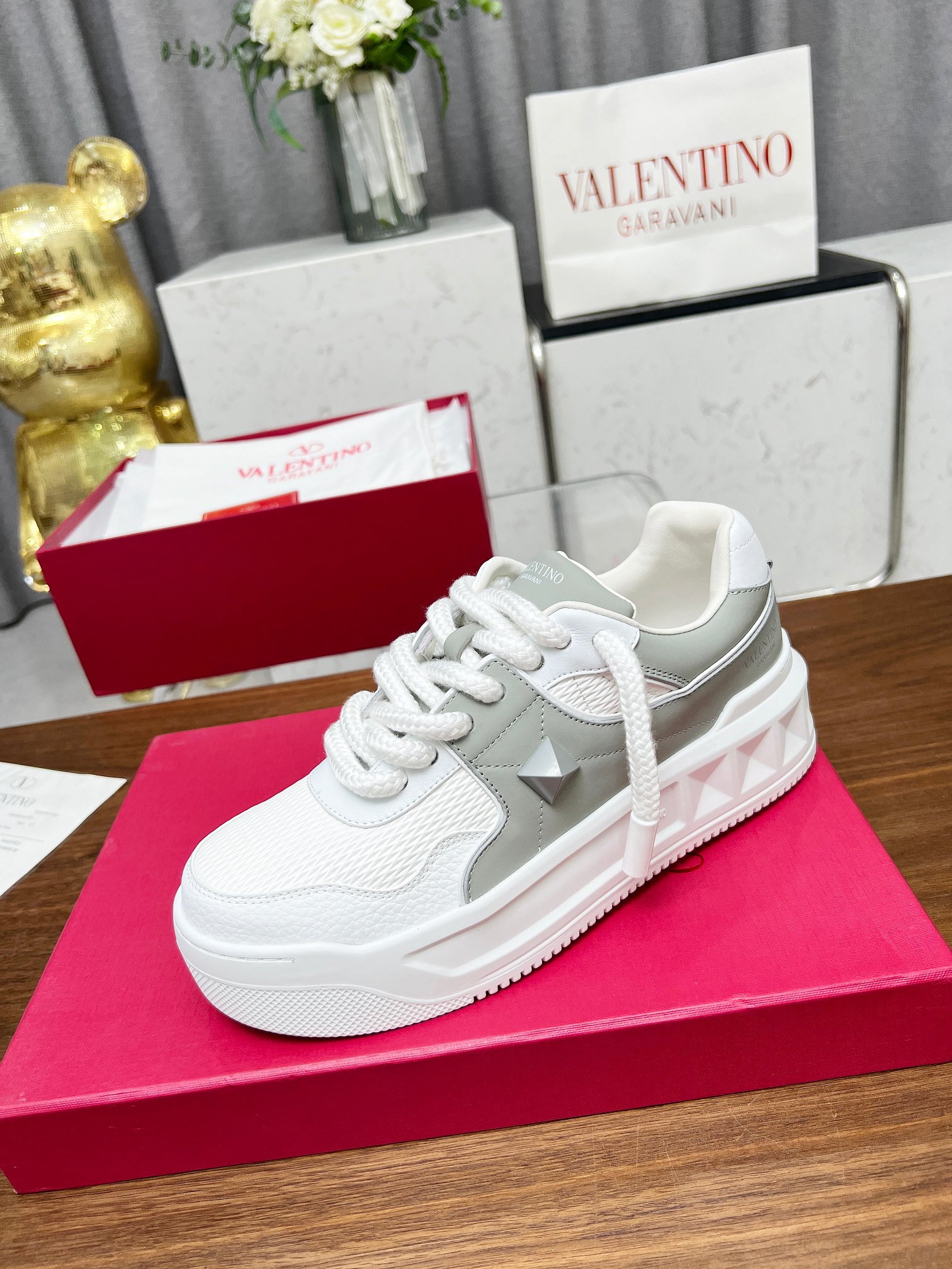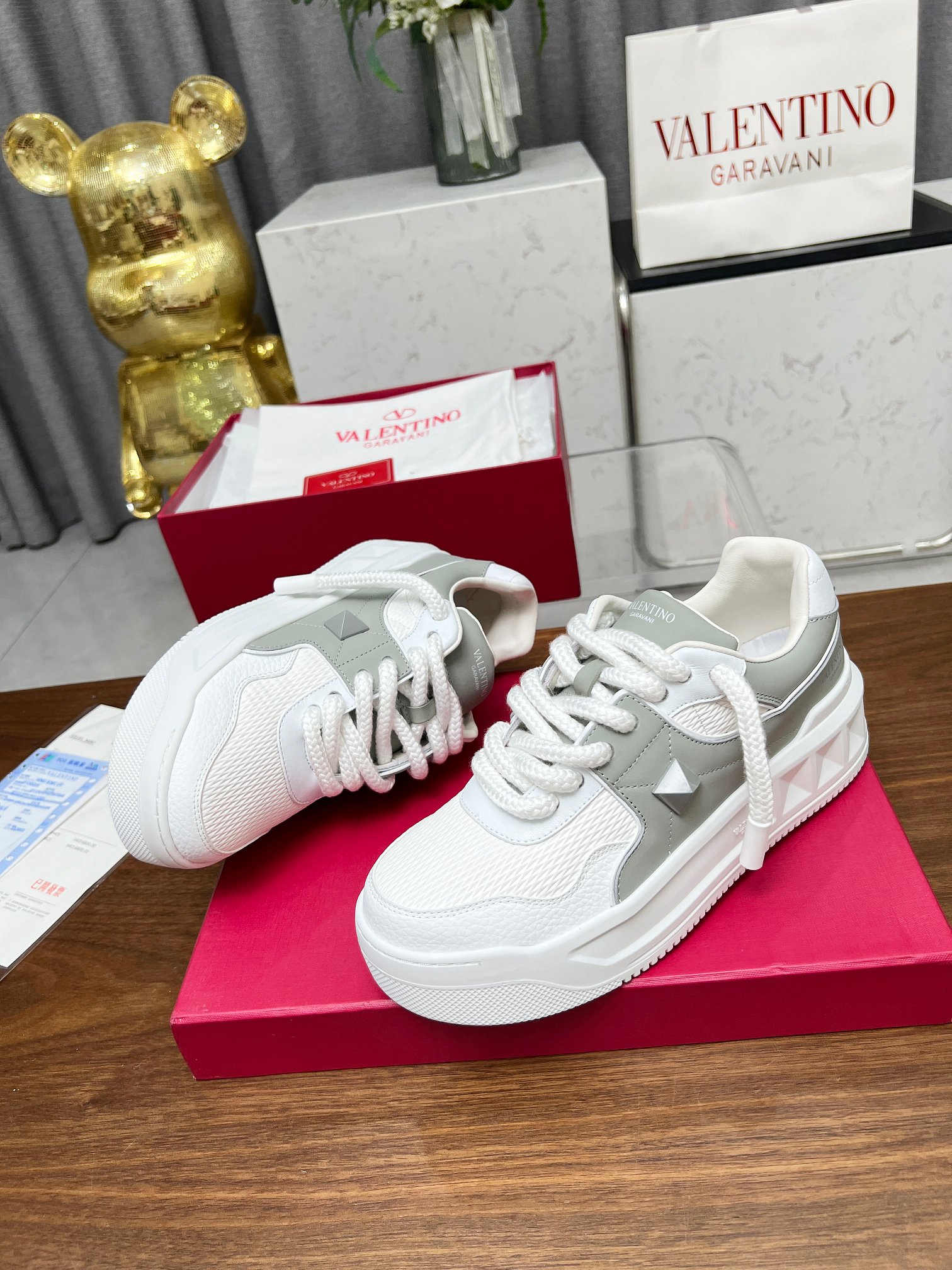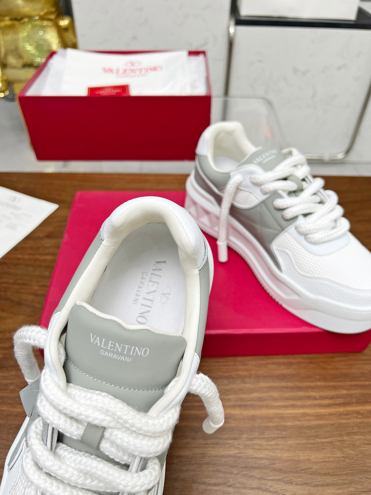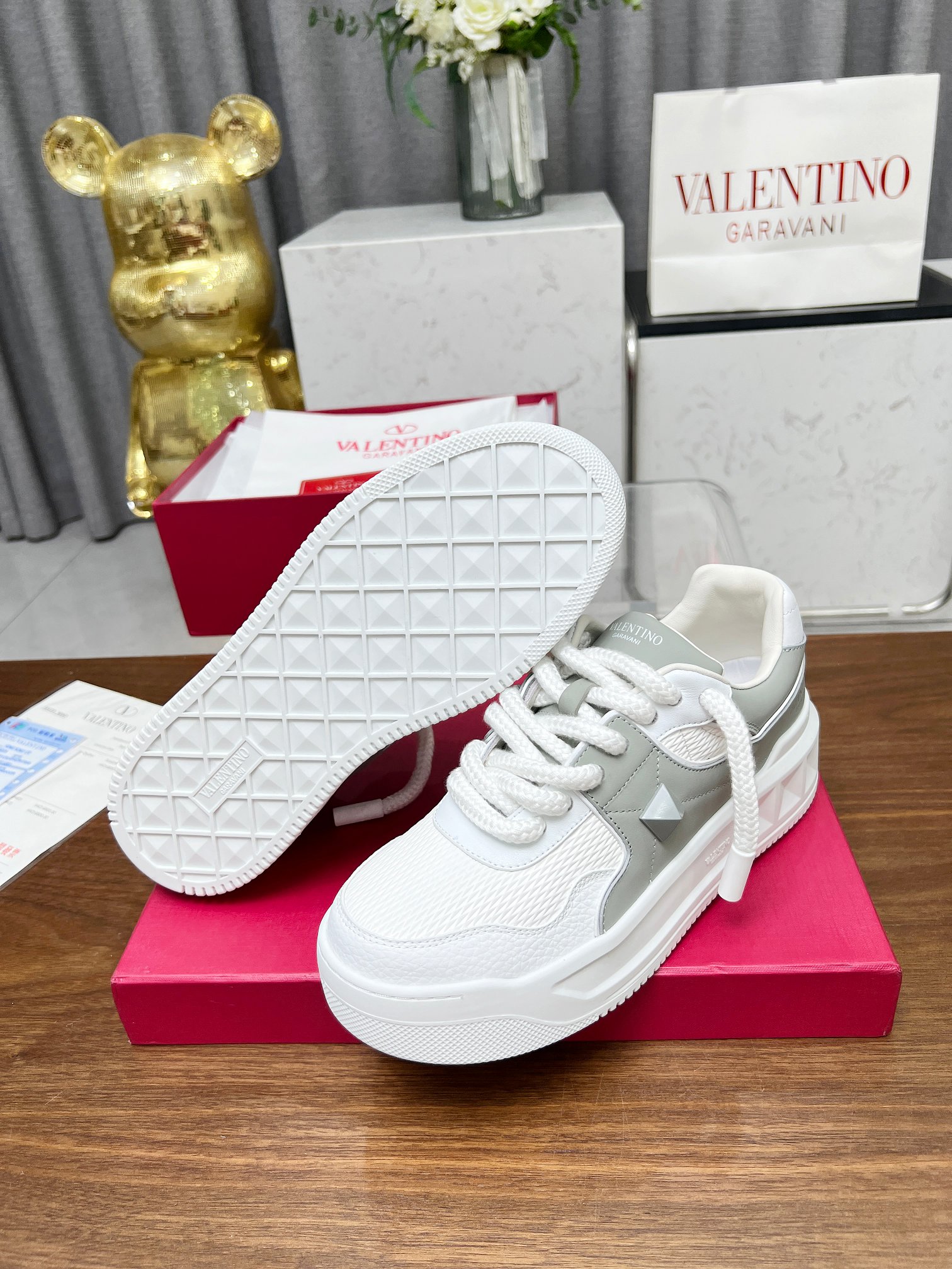 这款鞋子是AAAAA 1:1 质量 (非常棒). 使用了和原版一模一样的材料. 商标部分也保持了和华伦天奴/Valentino一样. 图片拍摄是实物鞋子拍摄, 您所收到的实物保证和我们图片一模一样.