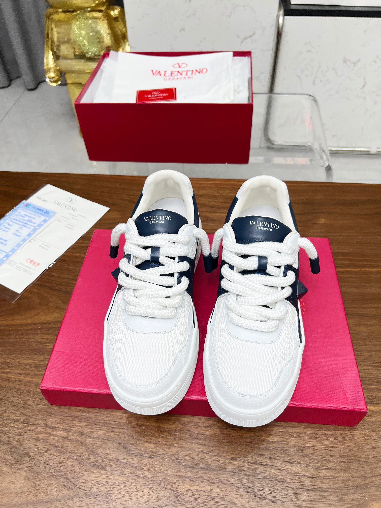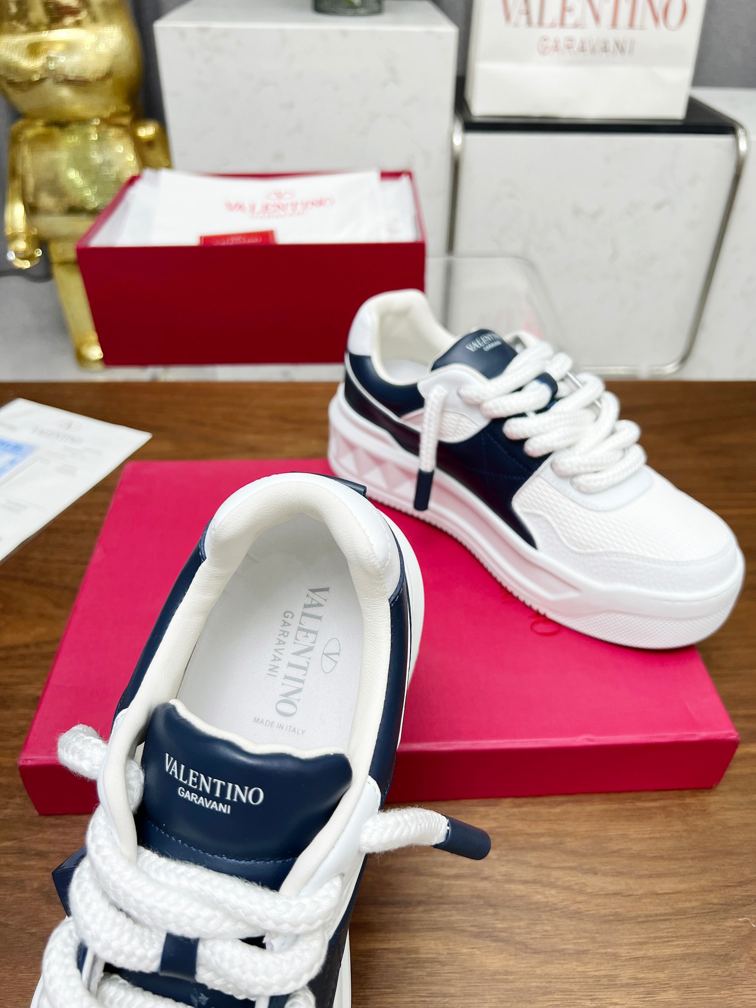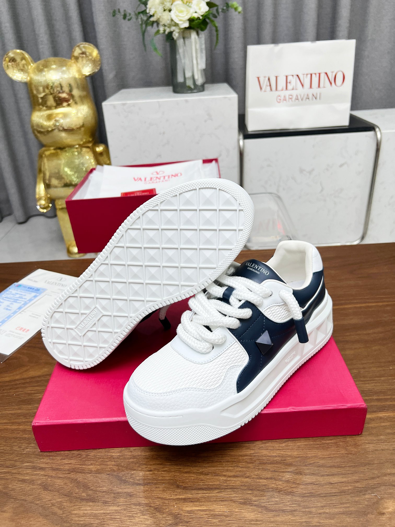 这款鞋子是AAAAA 1:1 质量 (非常棒). 使用了和原版一模一样的材料. 商标部分也保持了和华伦天奴/Valentino一样. 图片拍摄是实物鞋子拍摄, 您所收到的实物保证和我们图片一模一样.