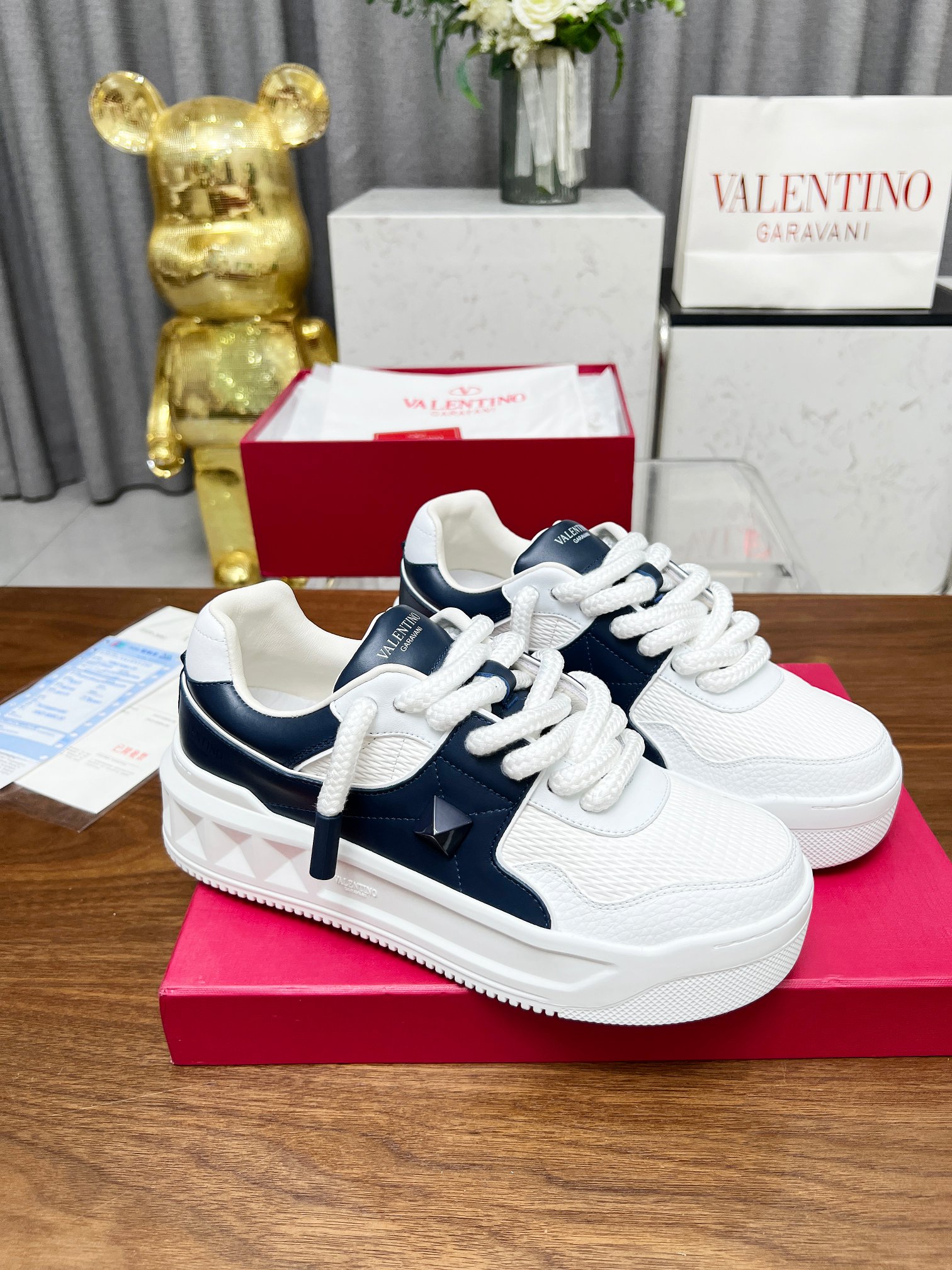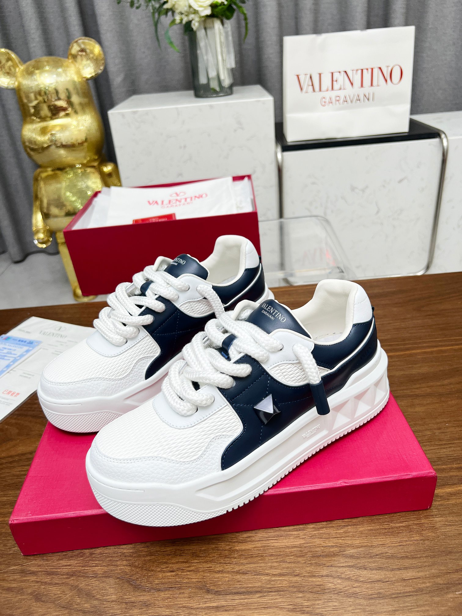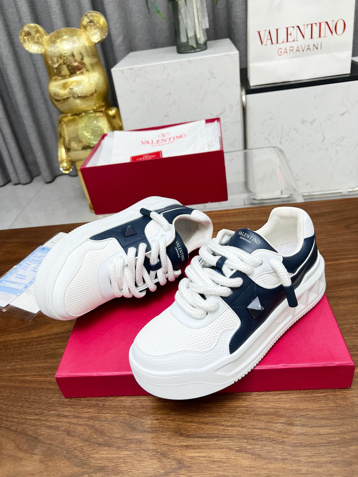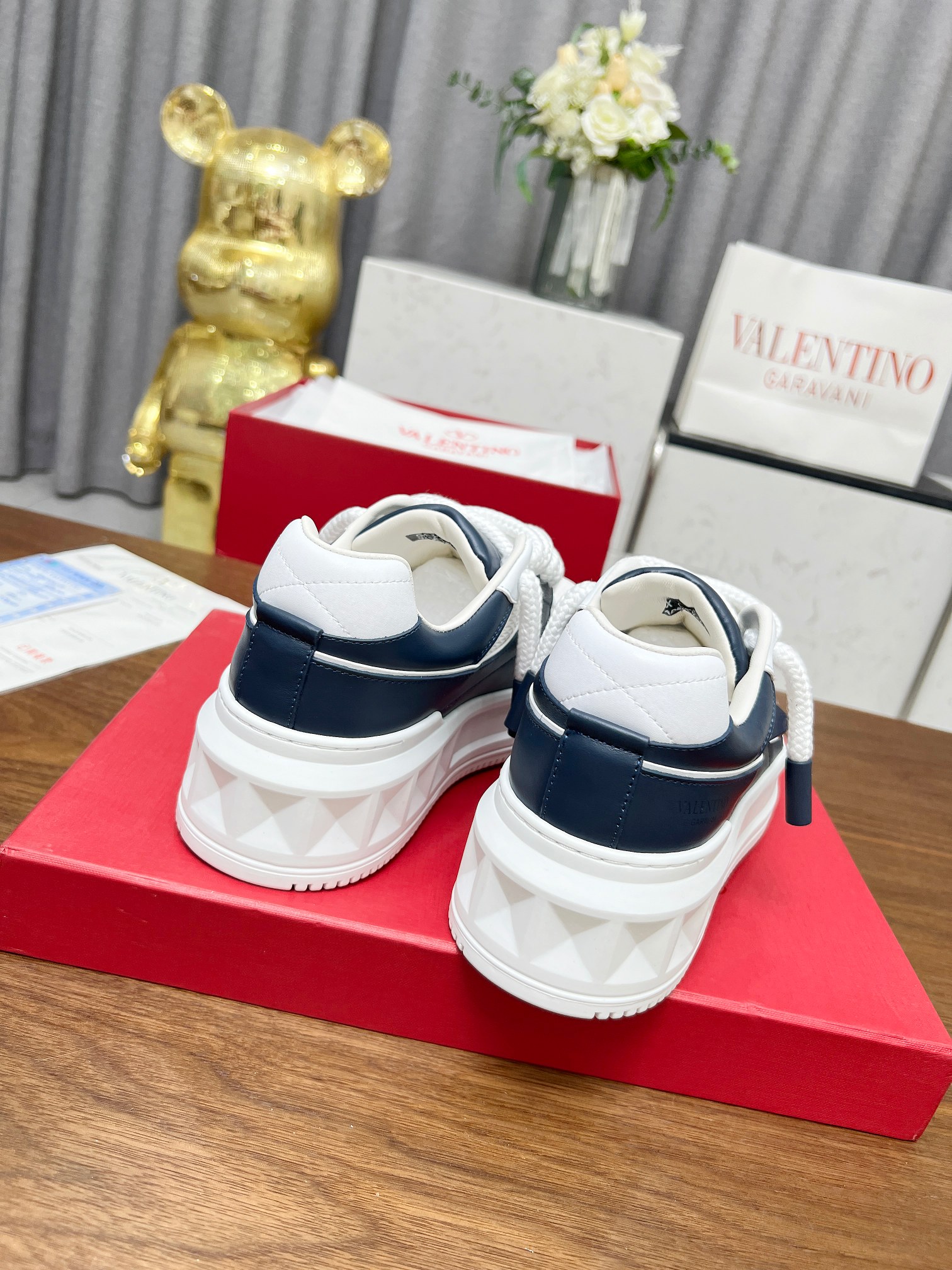 这款鞋子是AAAAA 1:1 质量 (非常棒). 使用了和原版一模一样的材料. 商标部分也保持了和华伦天奴/Valentino一样. 图片拍摄是实物鞋子拍摄, 您所收到的实物保证和我们图片一模一样.